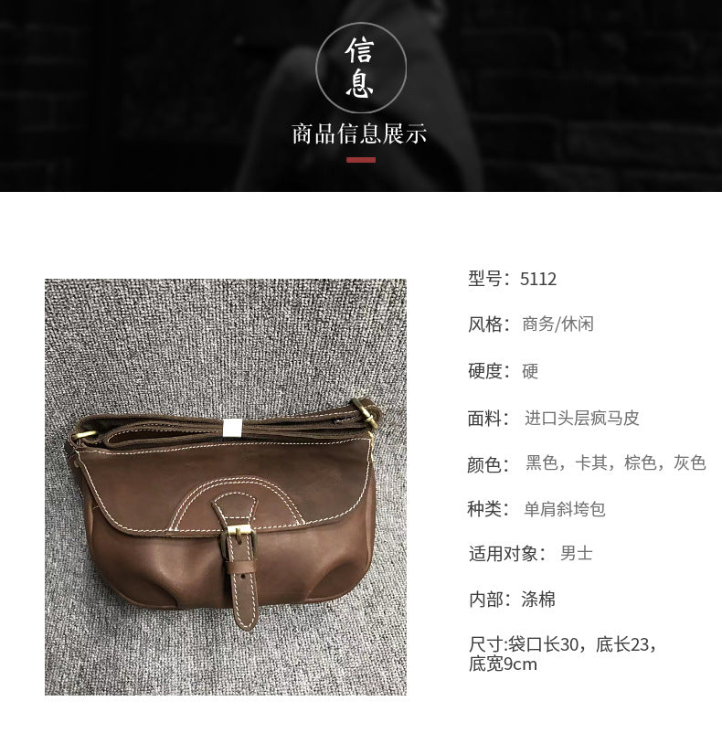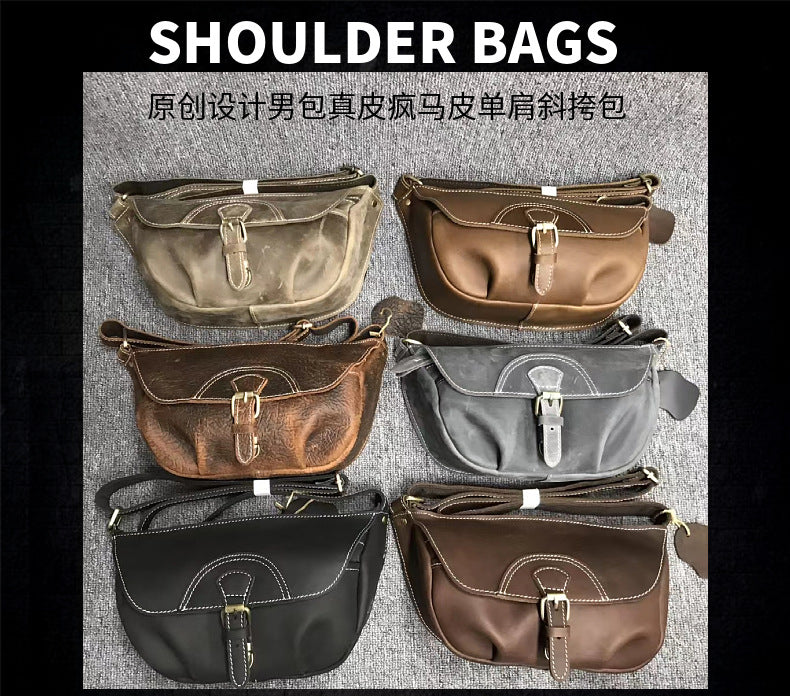 メンズショルダーバッグオリジナルデザイン牛革本革製 クレイジー・ホースファッションカジュアル大容量メッセンジャーバッグ男性用斜めがけバッグ