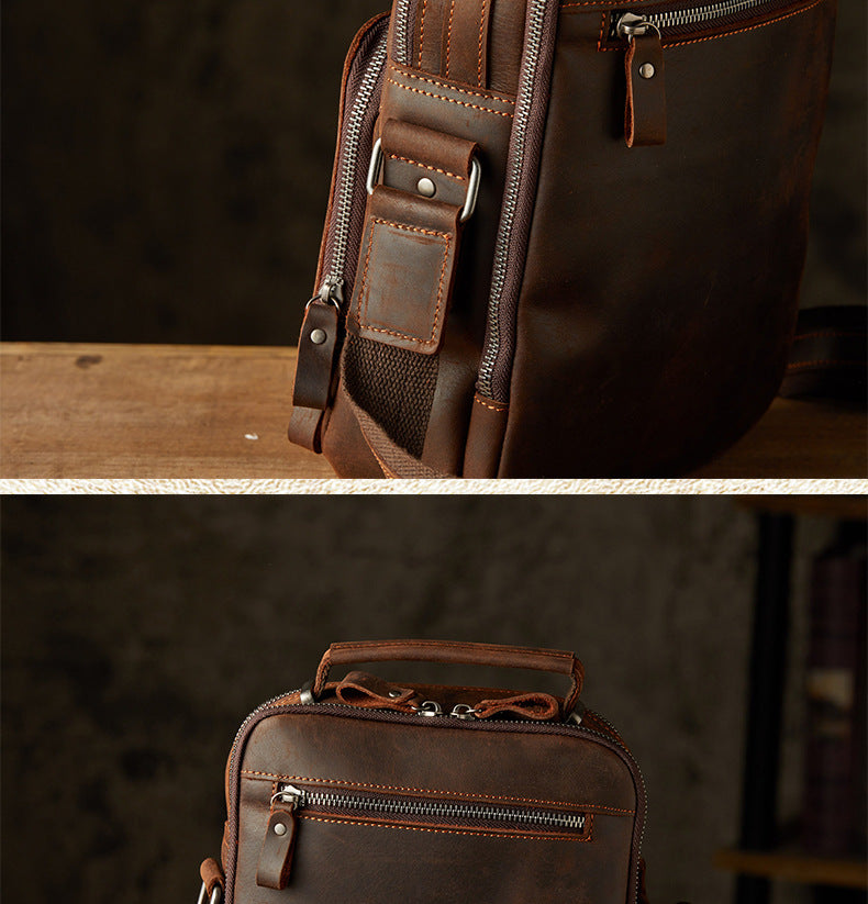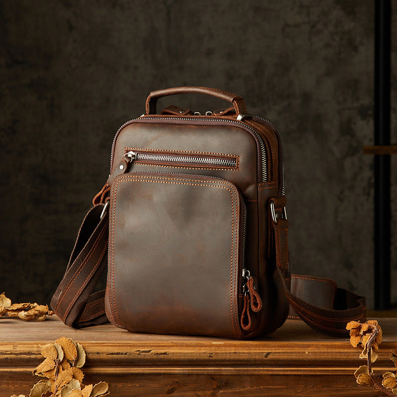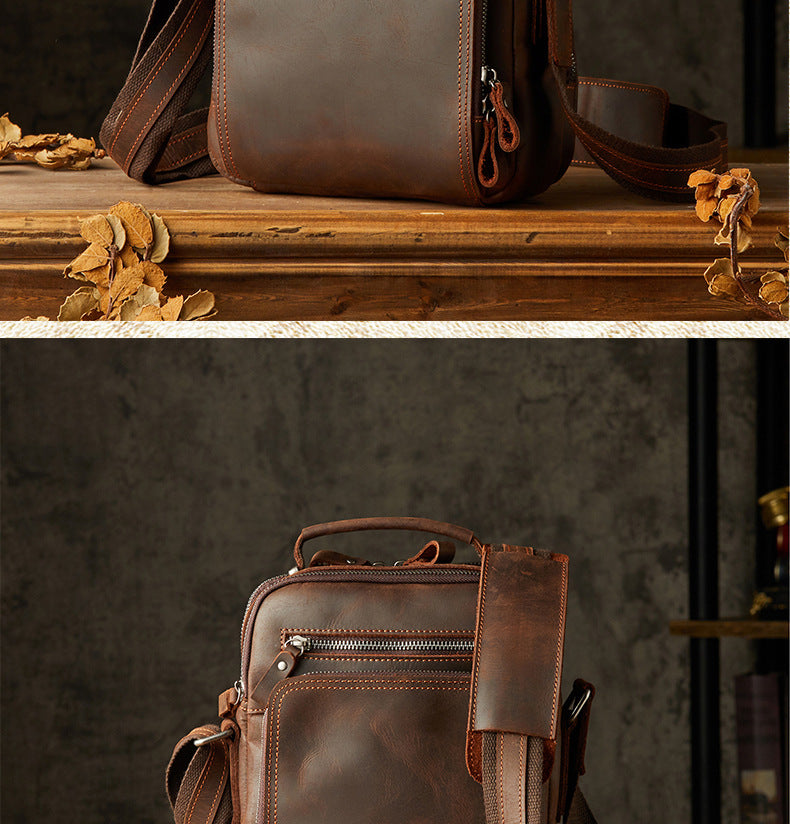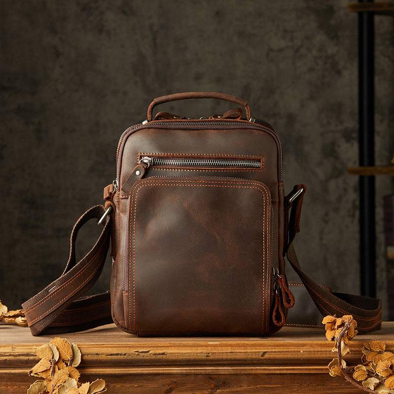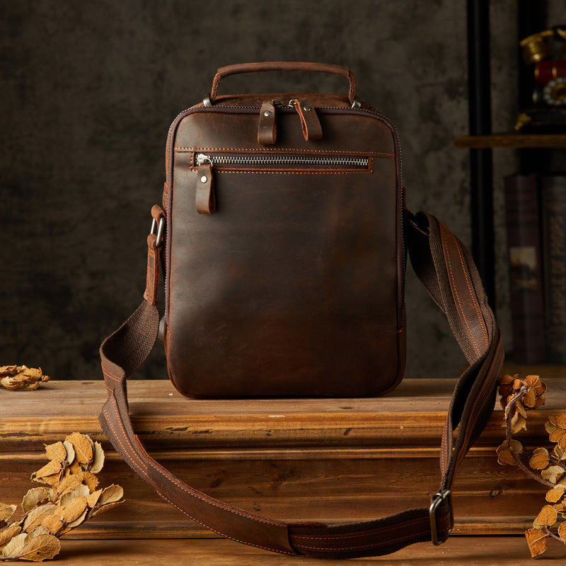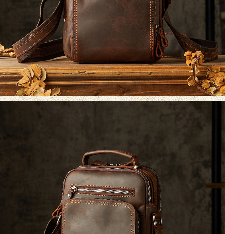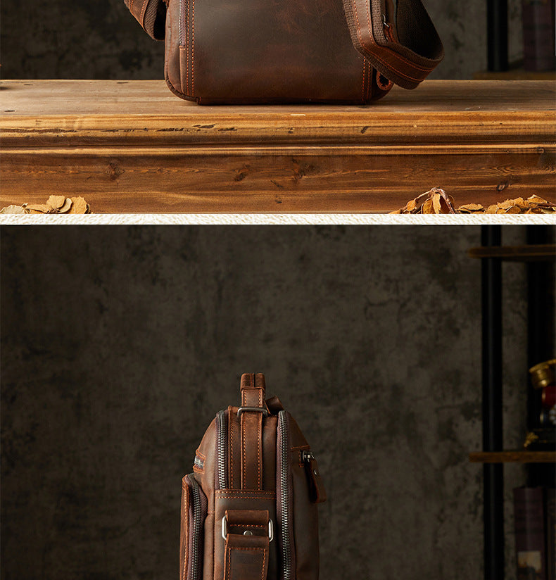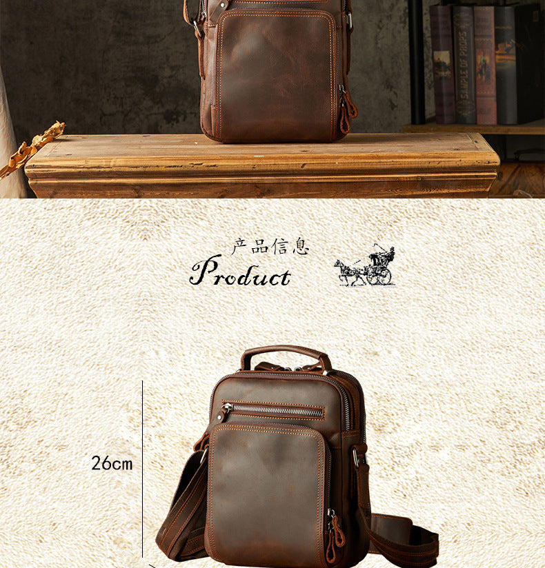 メンズショルダーバッグハンドバッグ牛皮本革製手作業クレイジー・ホースレトロカジュアルファッションビジネス斜めがけバッグ