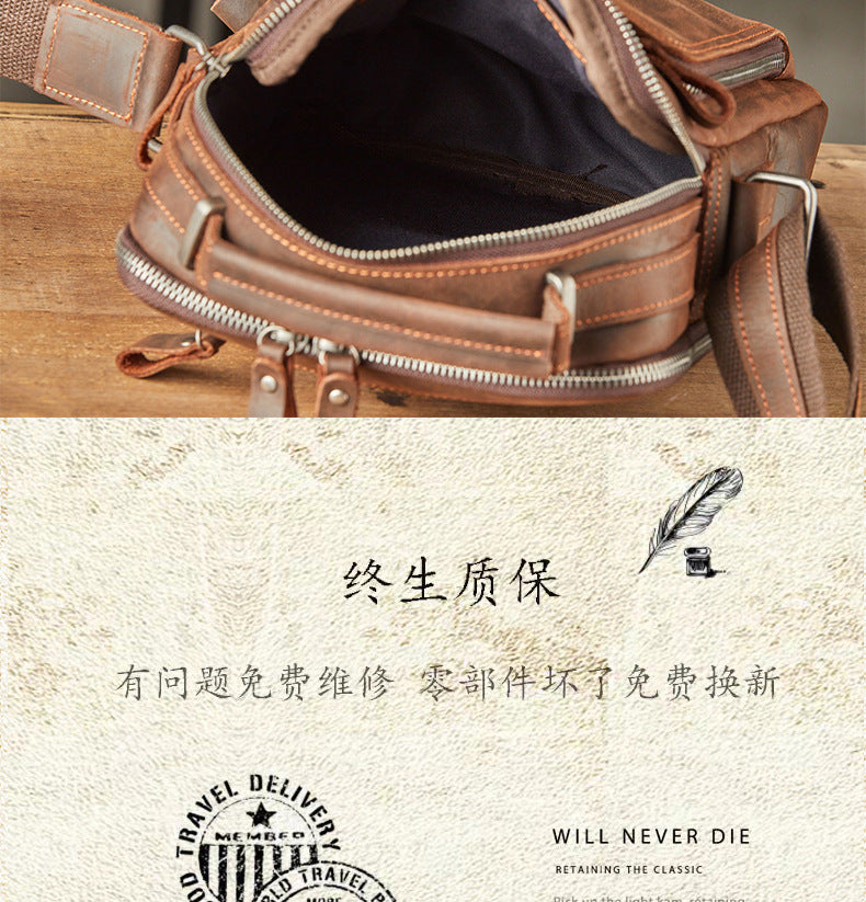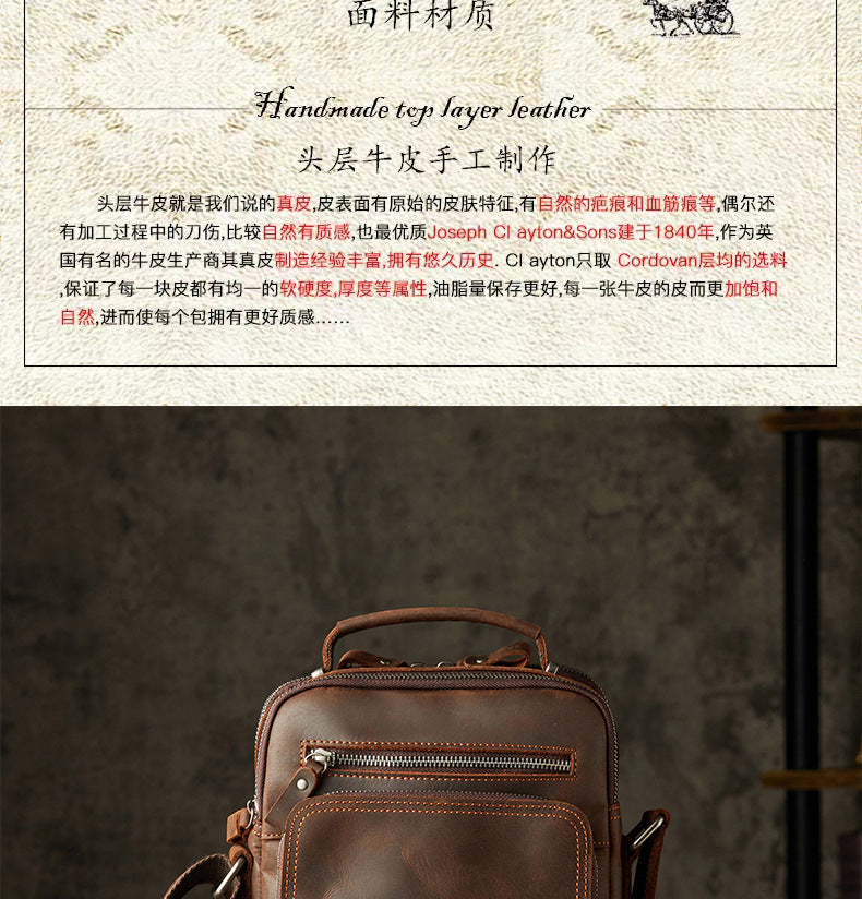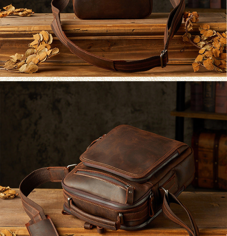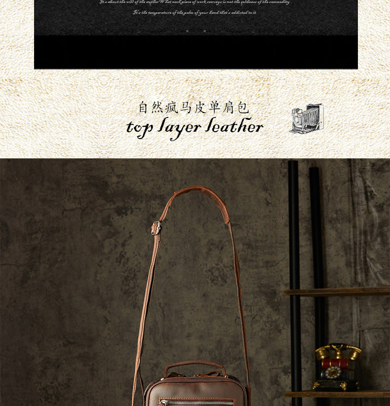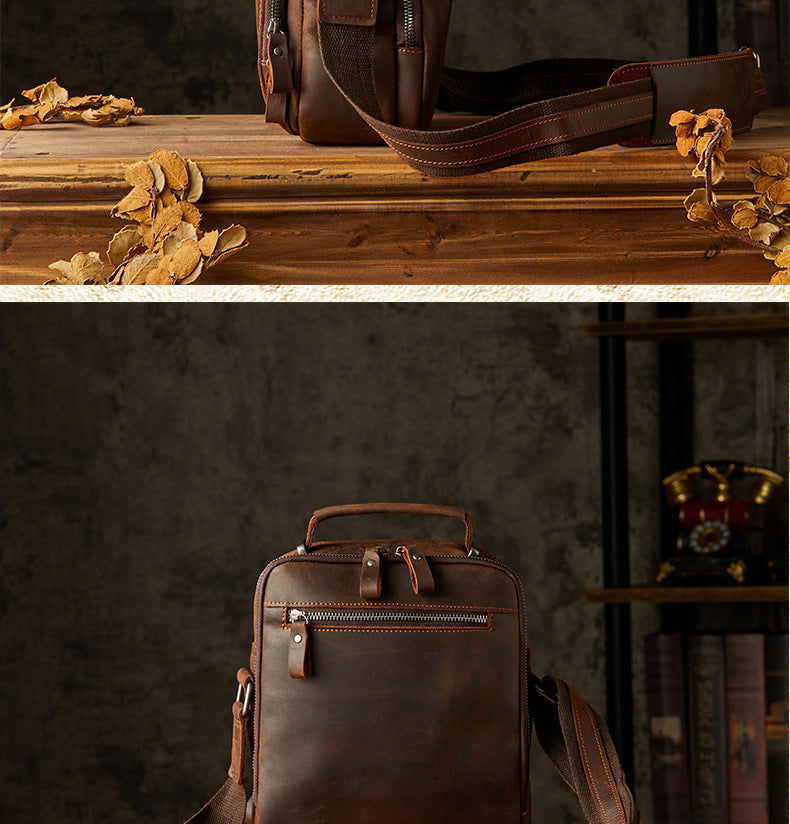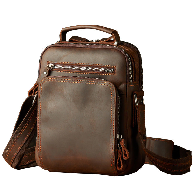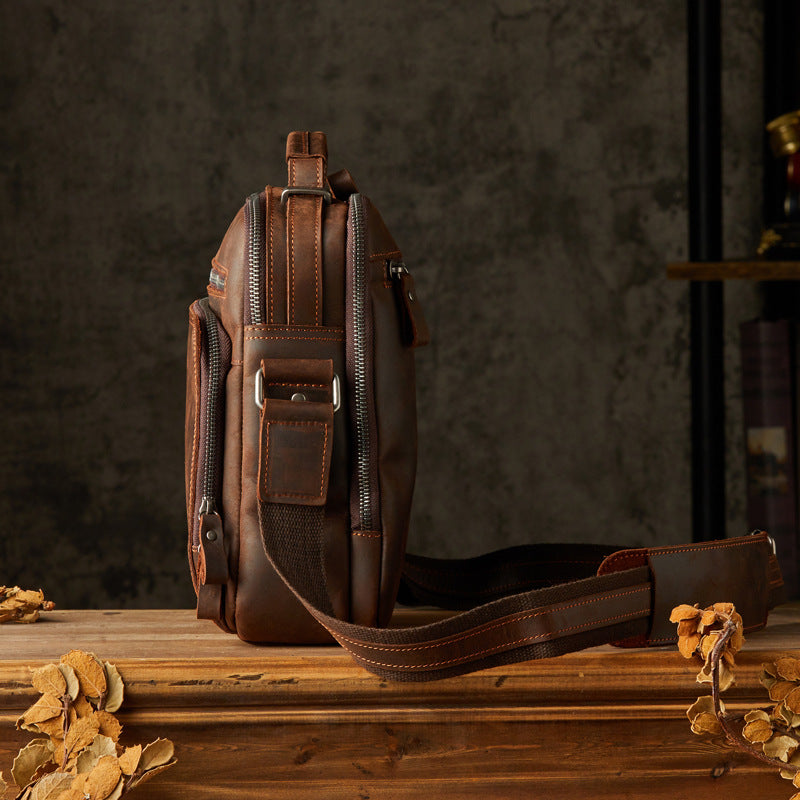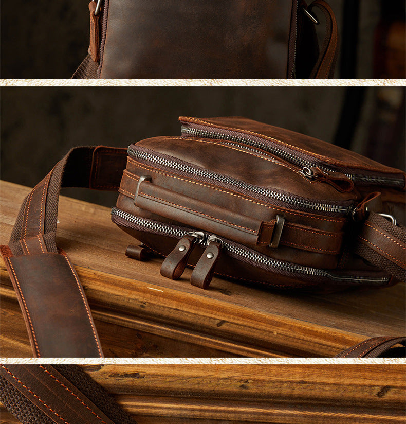 メンズショルダーバッグハンドバッグ牛皮本革製手作業クレイジー・ホースレトロカジュアルファッションビジネス斜めがけバッグ