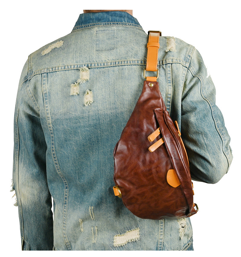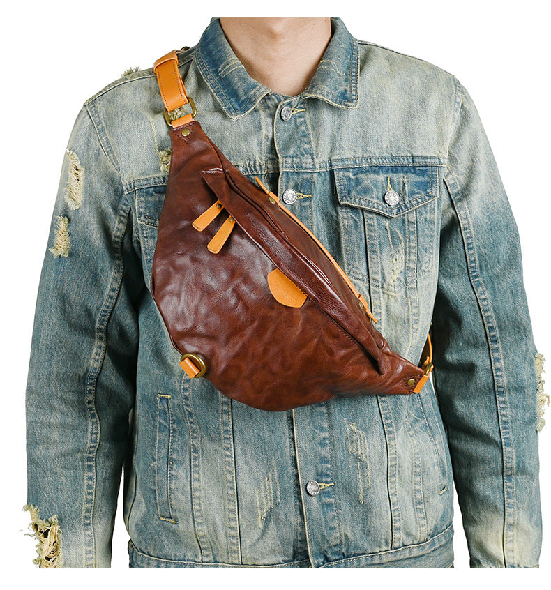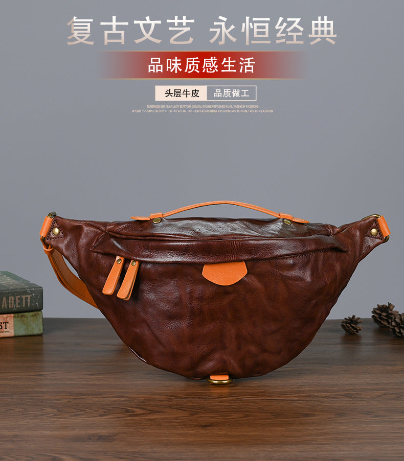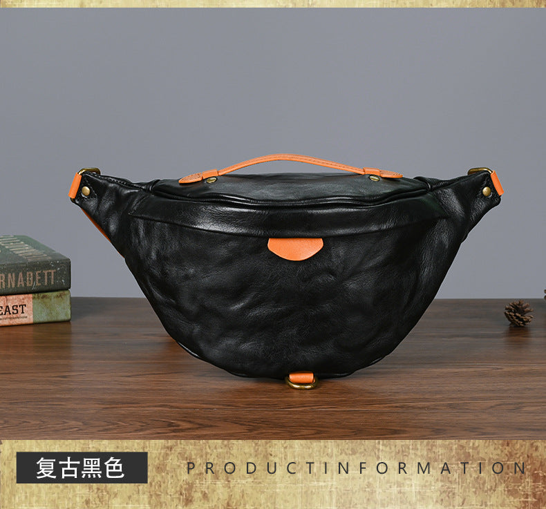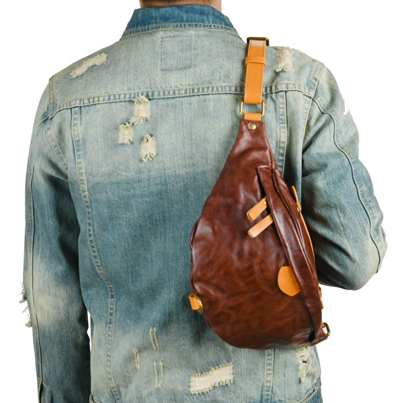 メンズショルダーバッグバストバッグ牛革本革製ファッションカジュアル男性用斜めがけバッグ