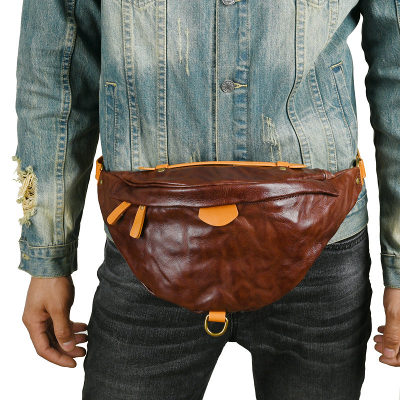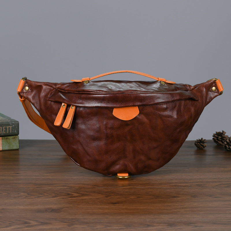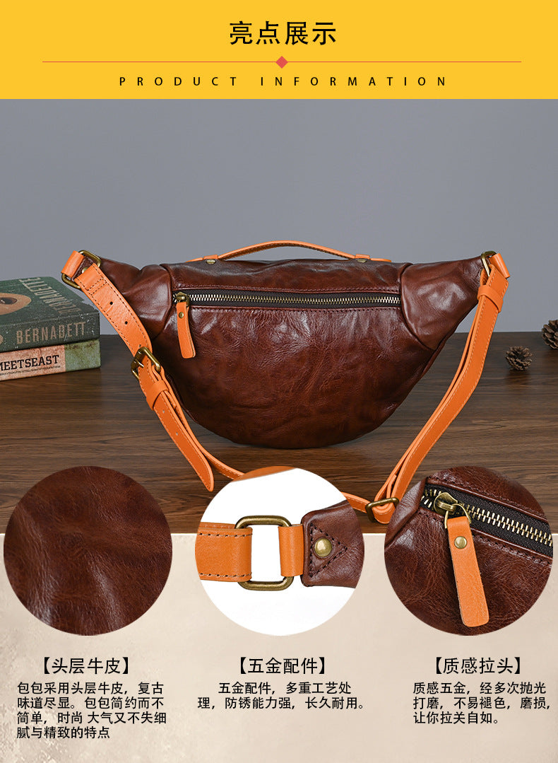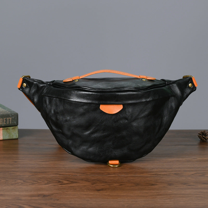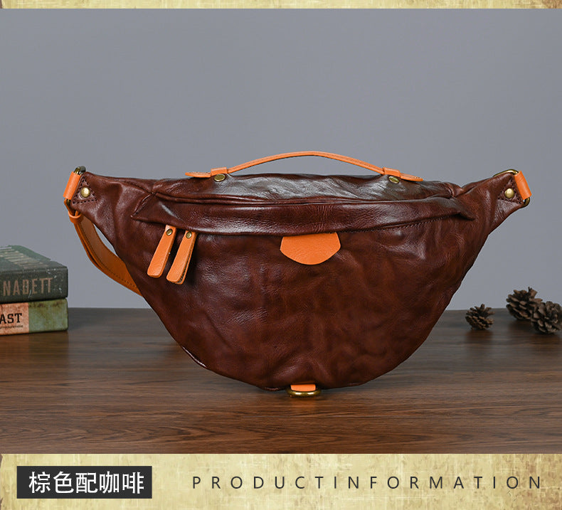 メンズショルダーバッグバストバッグ牛革本革製ファッションカジュアル男性用斜めがけバッグ
