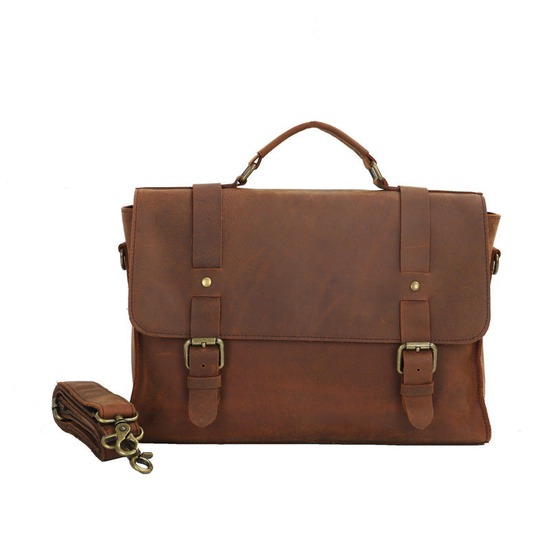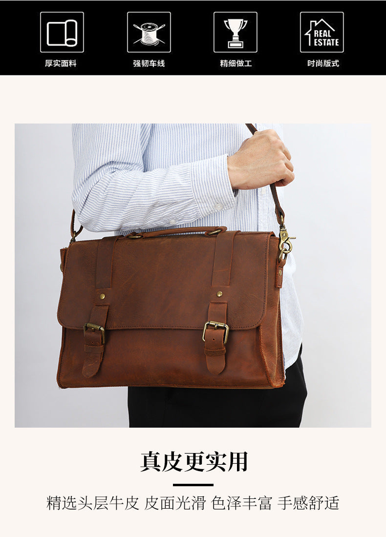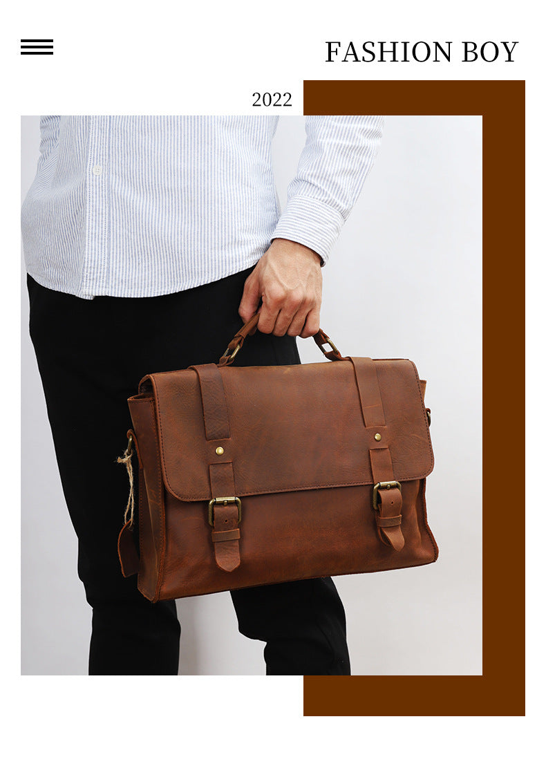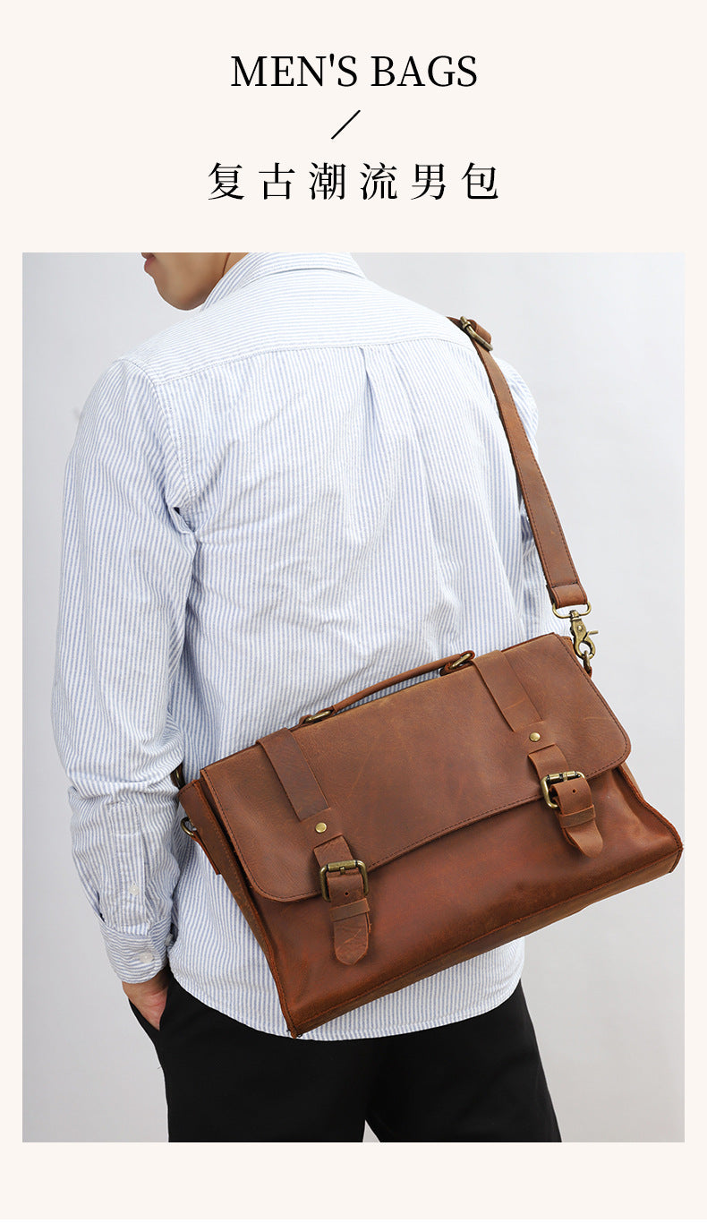 メンズショルダーバッグブリーフケースレトロ牛革 クレイジー・ホース通勤カジュアル男性用斜めがけバッグ パソコンバッグ
