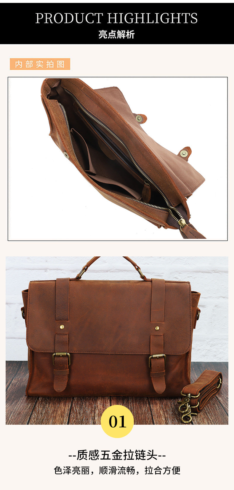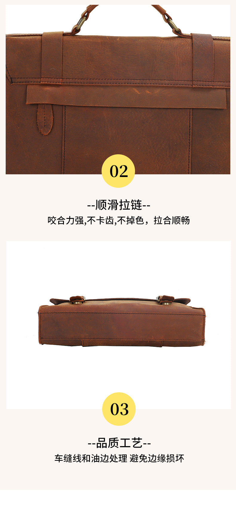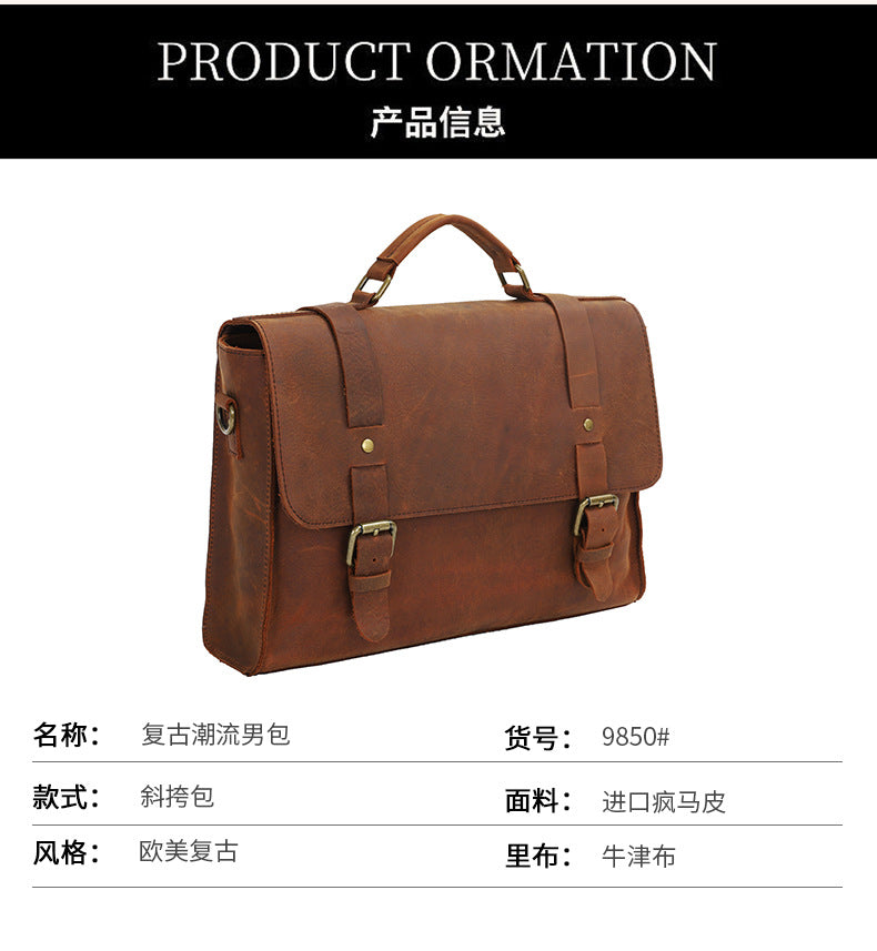 メンズショルダーバッグブリーフケースレトロ牛革 クレイジー・ホース通勤カジュアル男性用斜めがけバッグ パソコンバッグ
