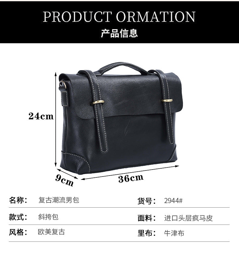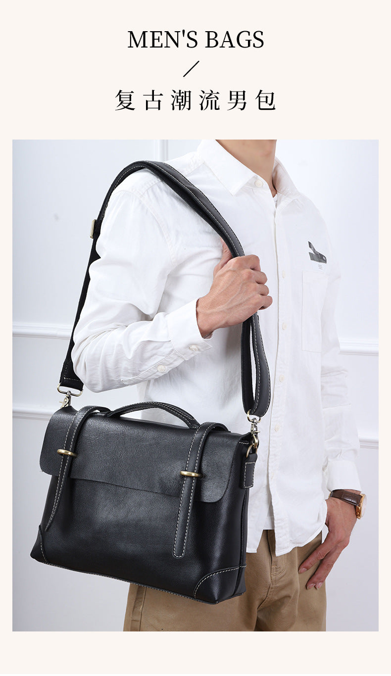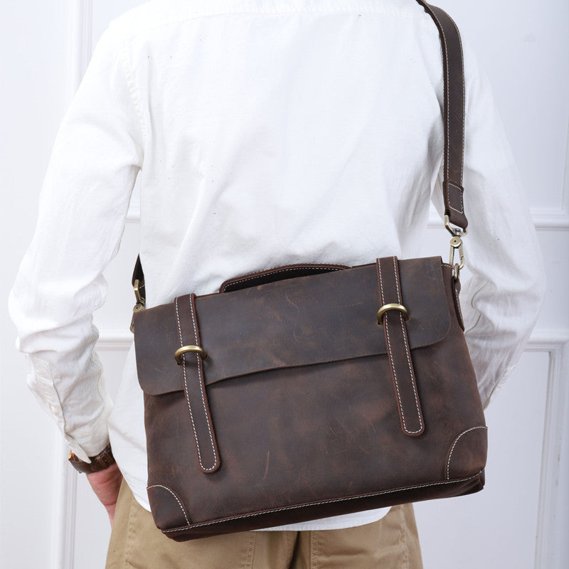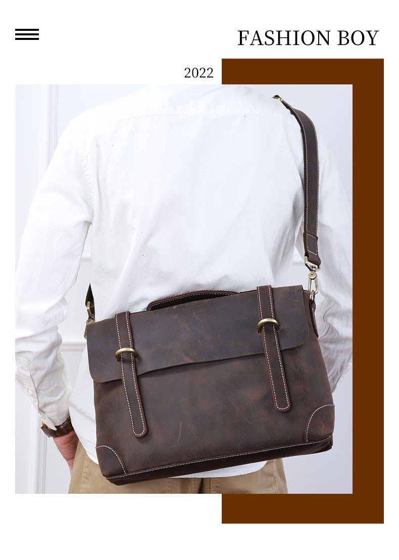 メンズショルダーバッグレトロ牛革クレイジー・ホース メッセンジャーバッグカジュアルファッション大容量男性用斜めがけバッグ パソコンバッグ