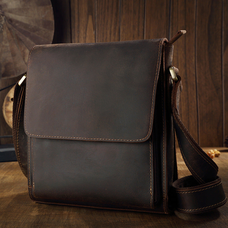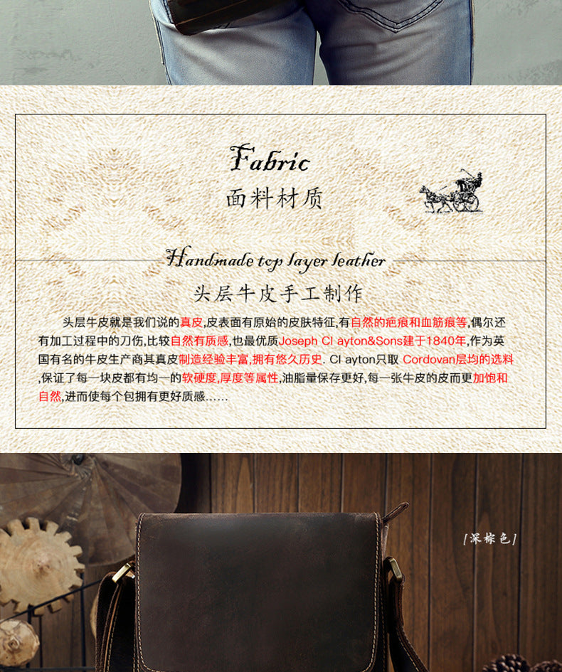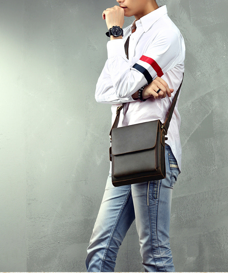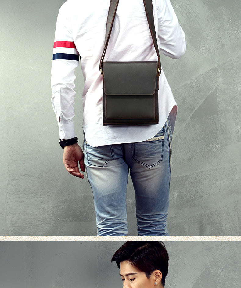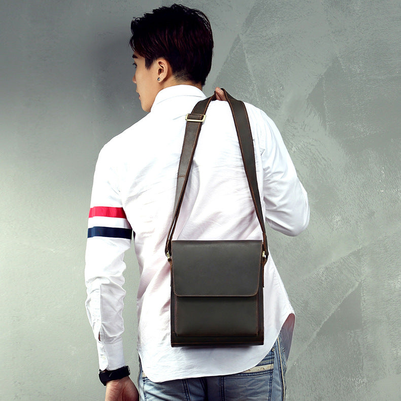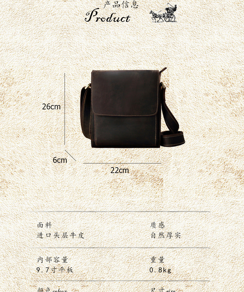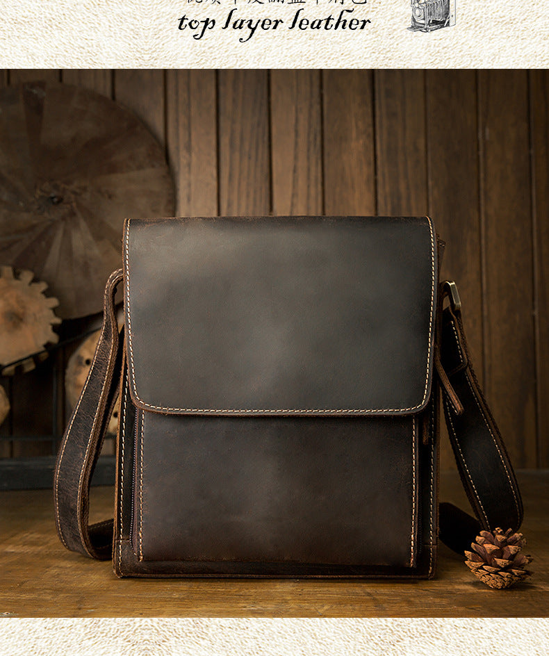 メンズショルダーバッグ牛皮本革製クレイジー・ホースオリジナルシンプルビジネスカジュアルファッション男性用斜めがけバッグ