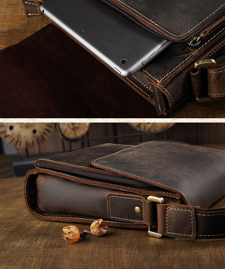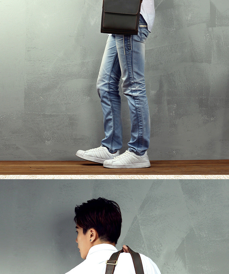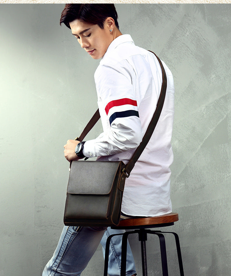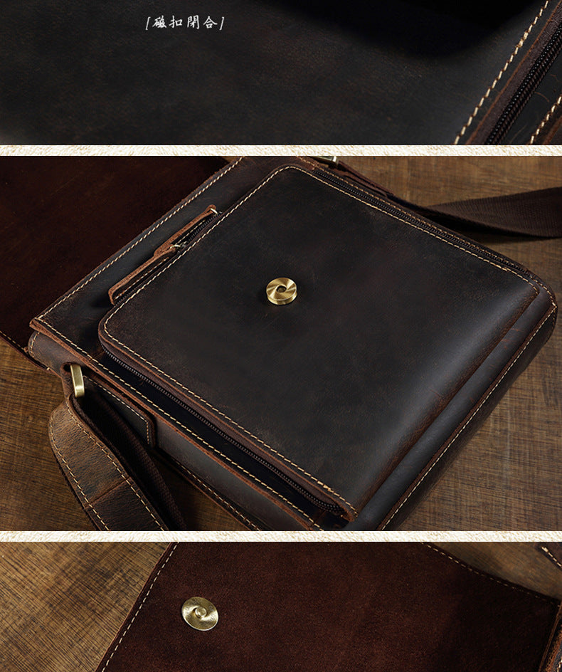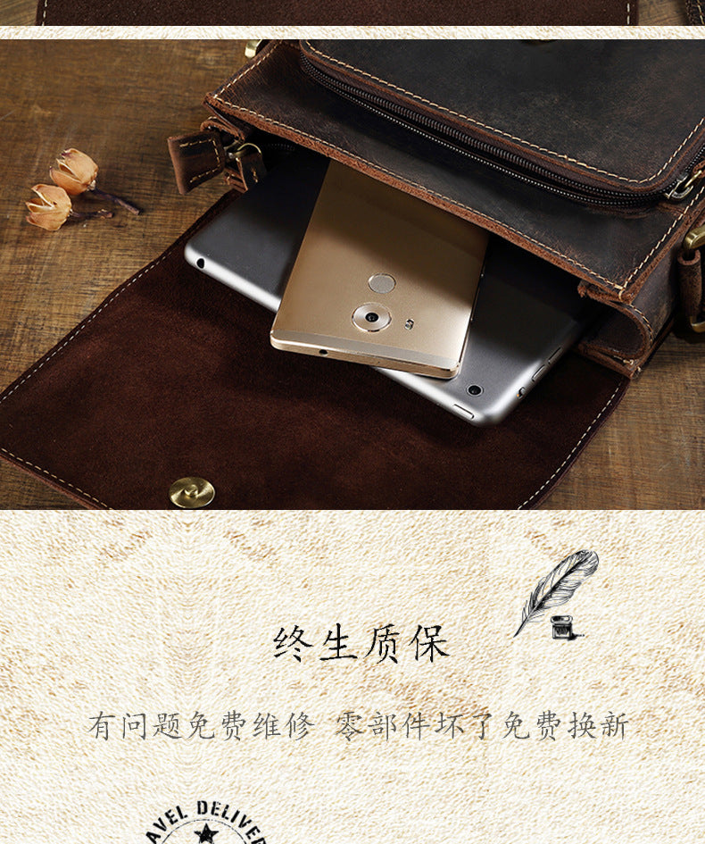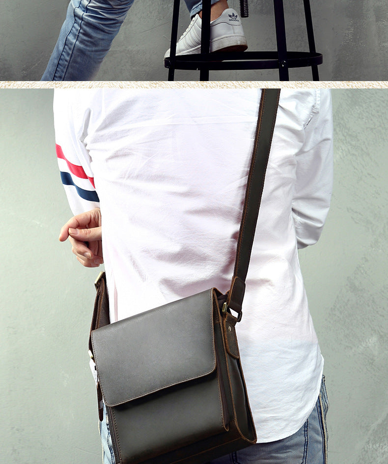 メンズショルダーバッグ牛皮本革製クレイジー・ホースオリジナルシンプルビジネスカジュアルファッション男性用斜めがけバッグ