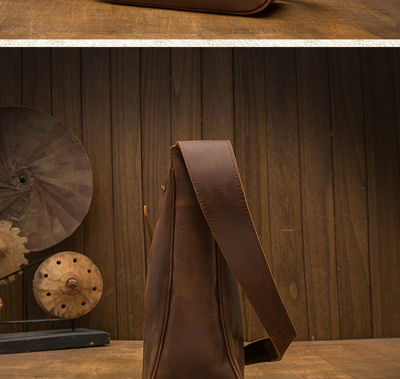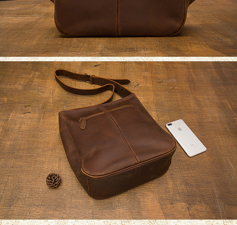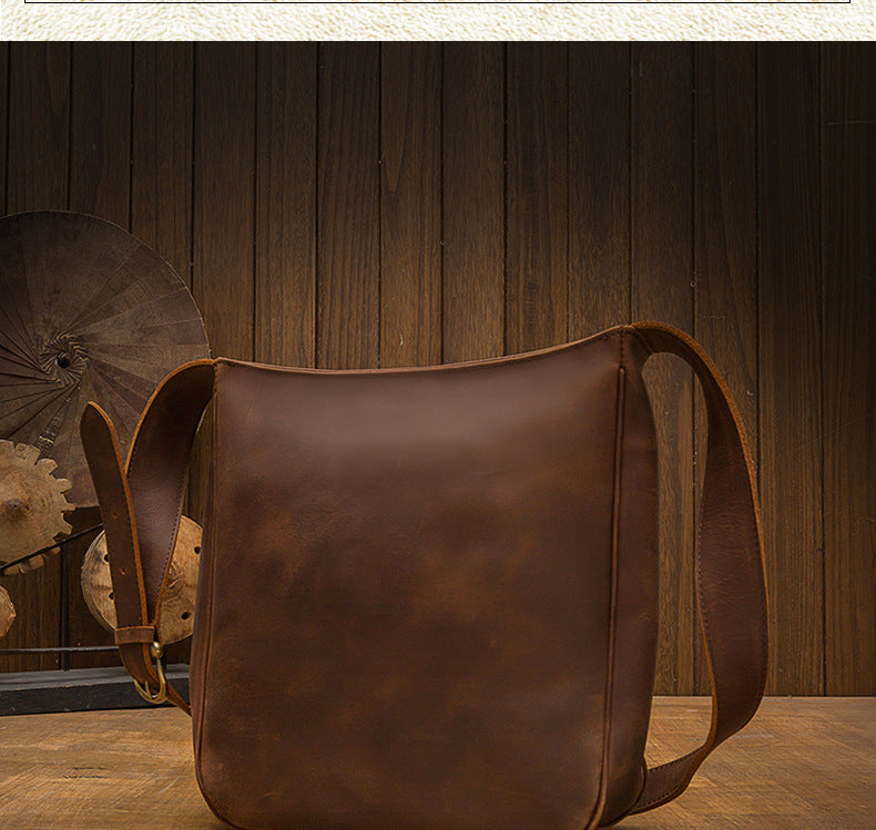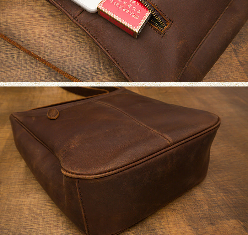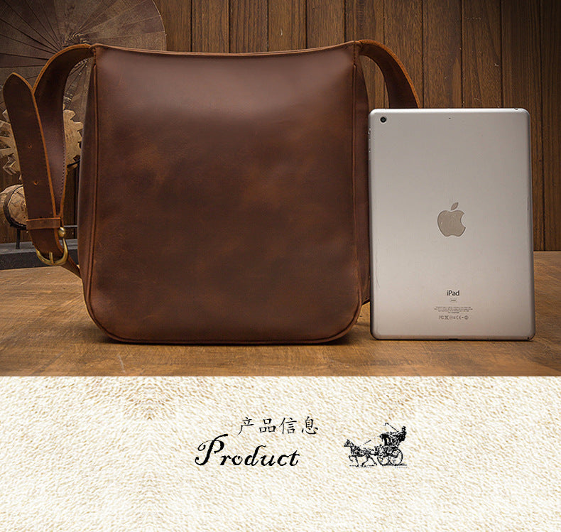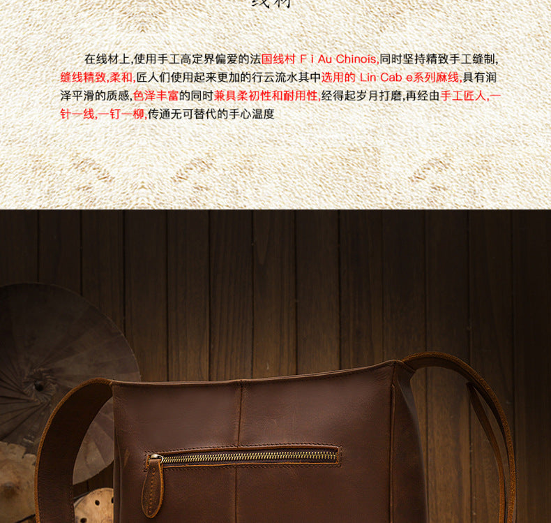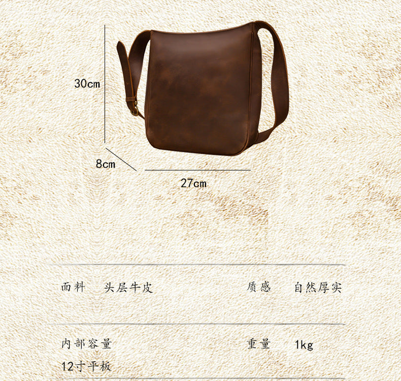 メンズショルダーバッグ牛皮本革製クレイジー・ホース手作り 個性韩国ファッションカジュアル斜めがけバッグ