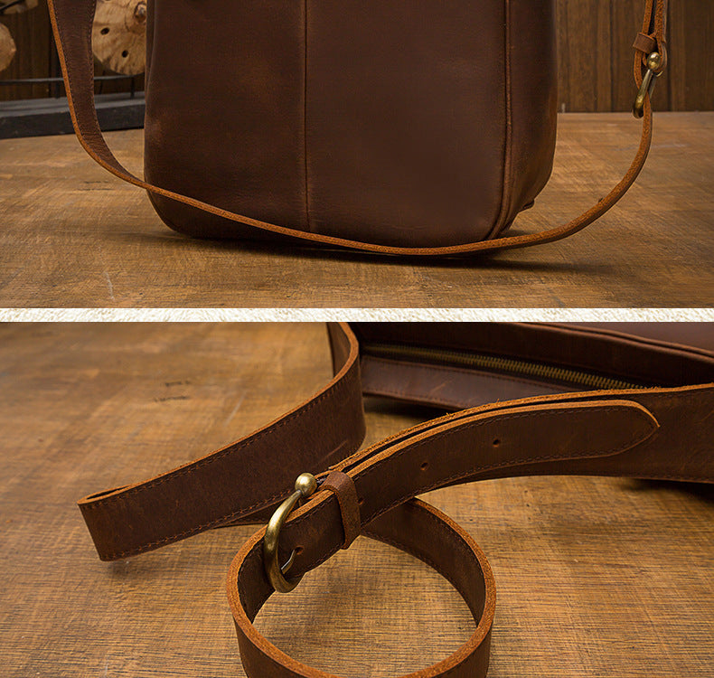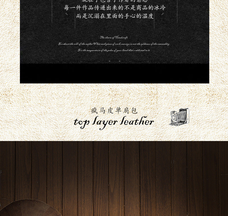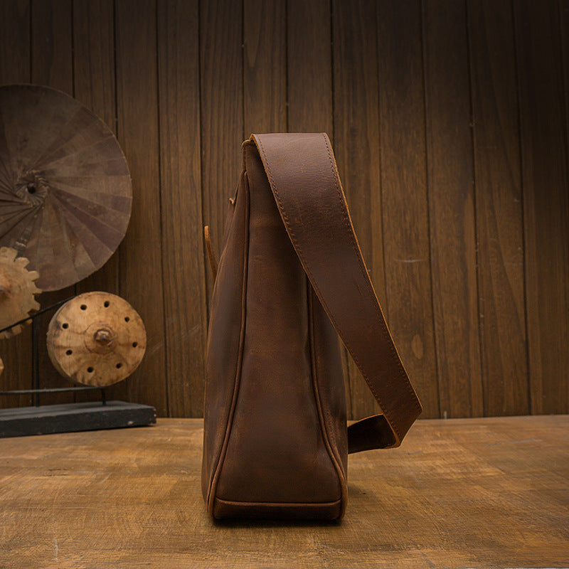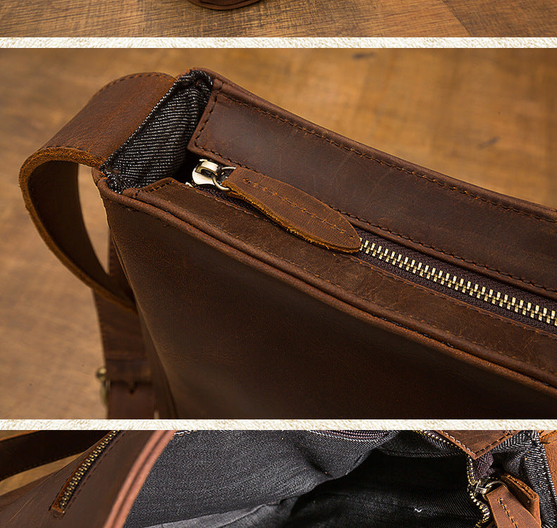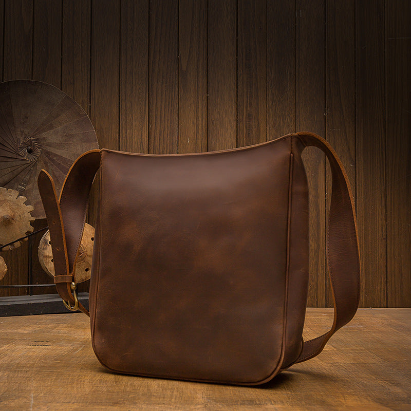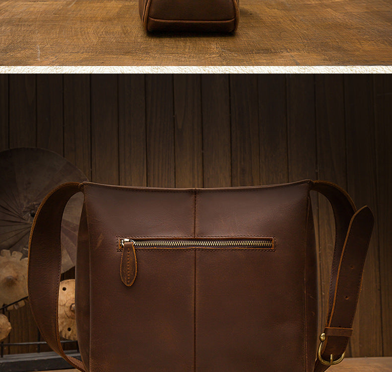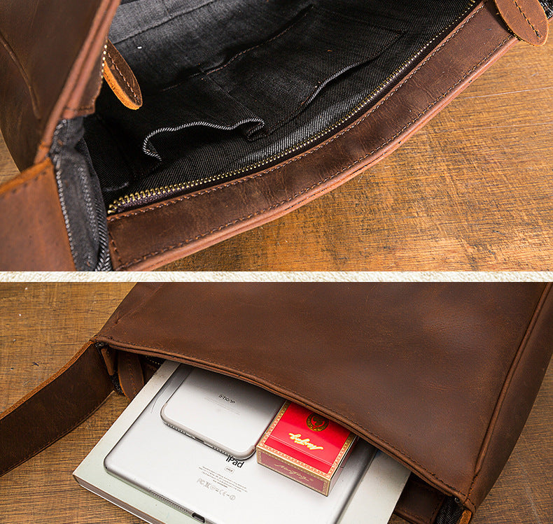 メンズショルダーバッグ牛皮本革製クレイジー・ホース手作り 個性韩国ファッションカジュアル斜めがけバッグ