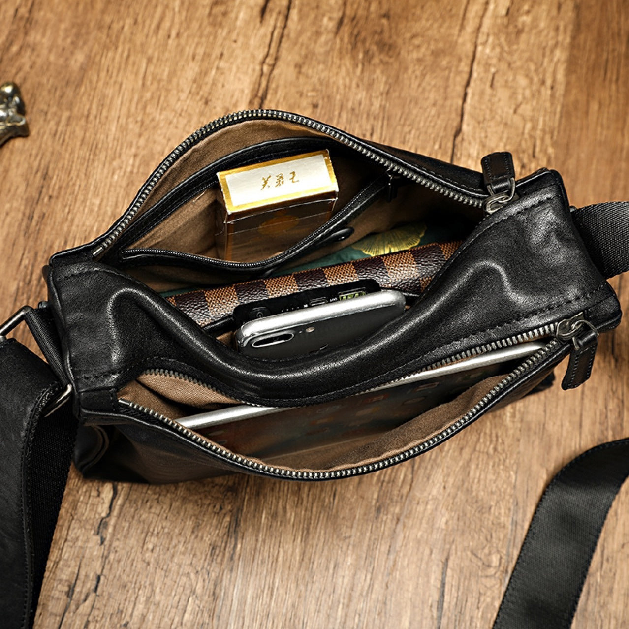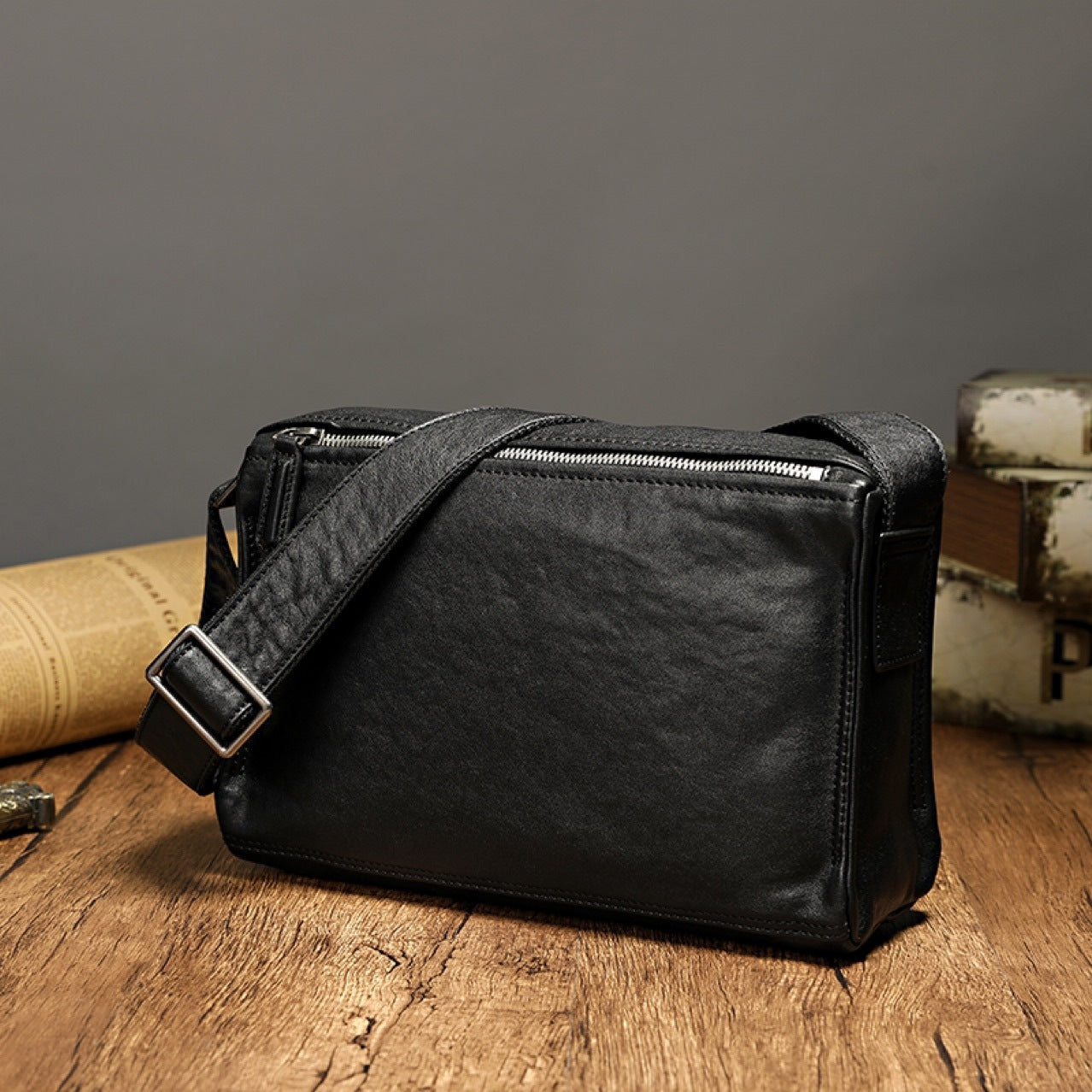 メンズショルダーバッグ牛革本革製カジュアルバッグ男性用斜めがけバッグ