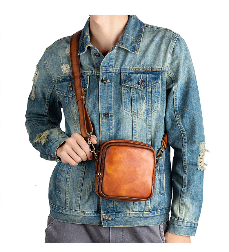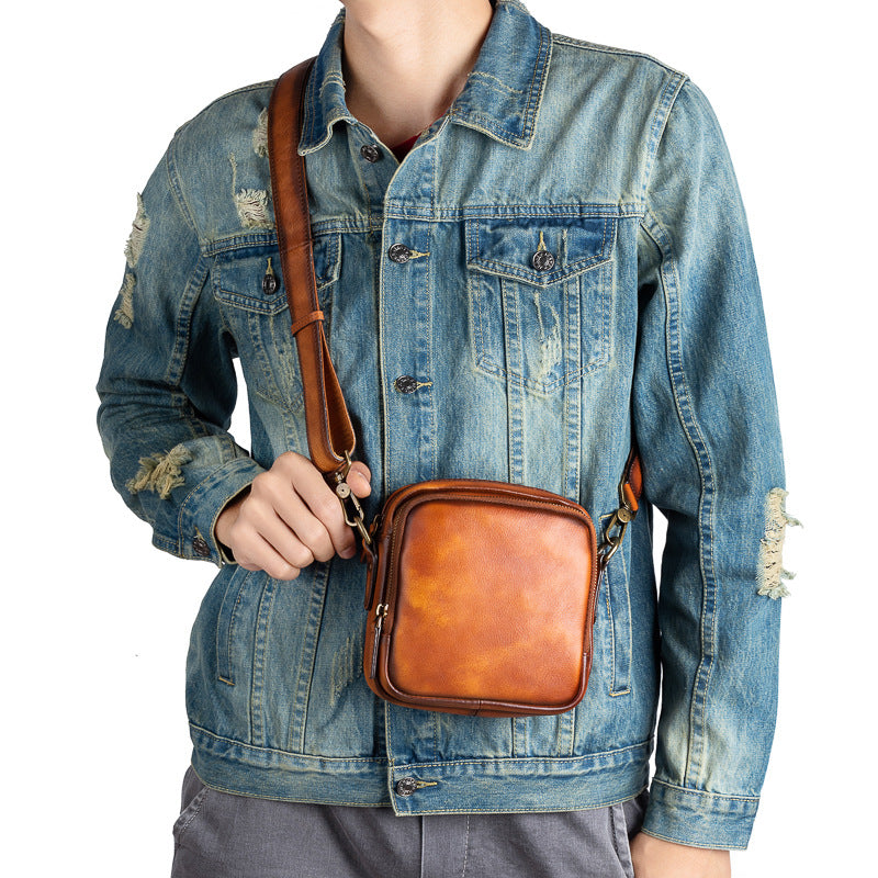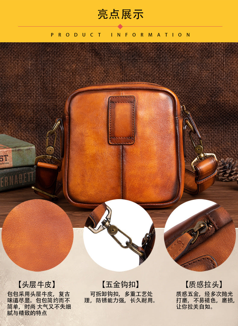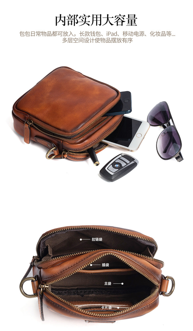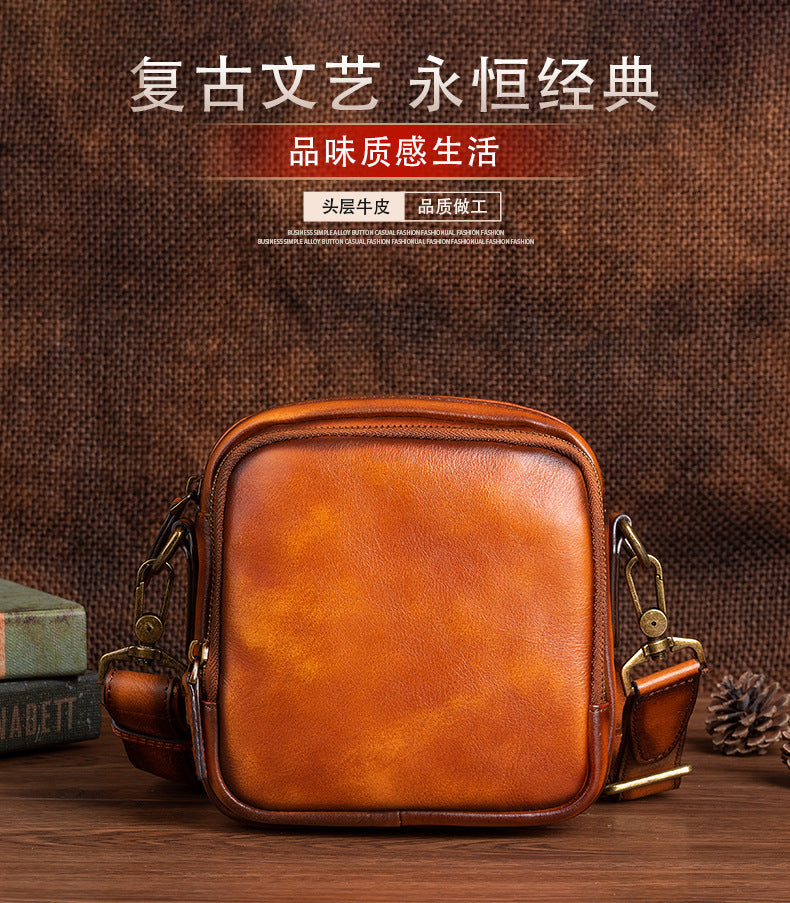 メンズショルダーバッグ牛革本革製ビジネス男性用斜めがけバッグ