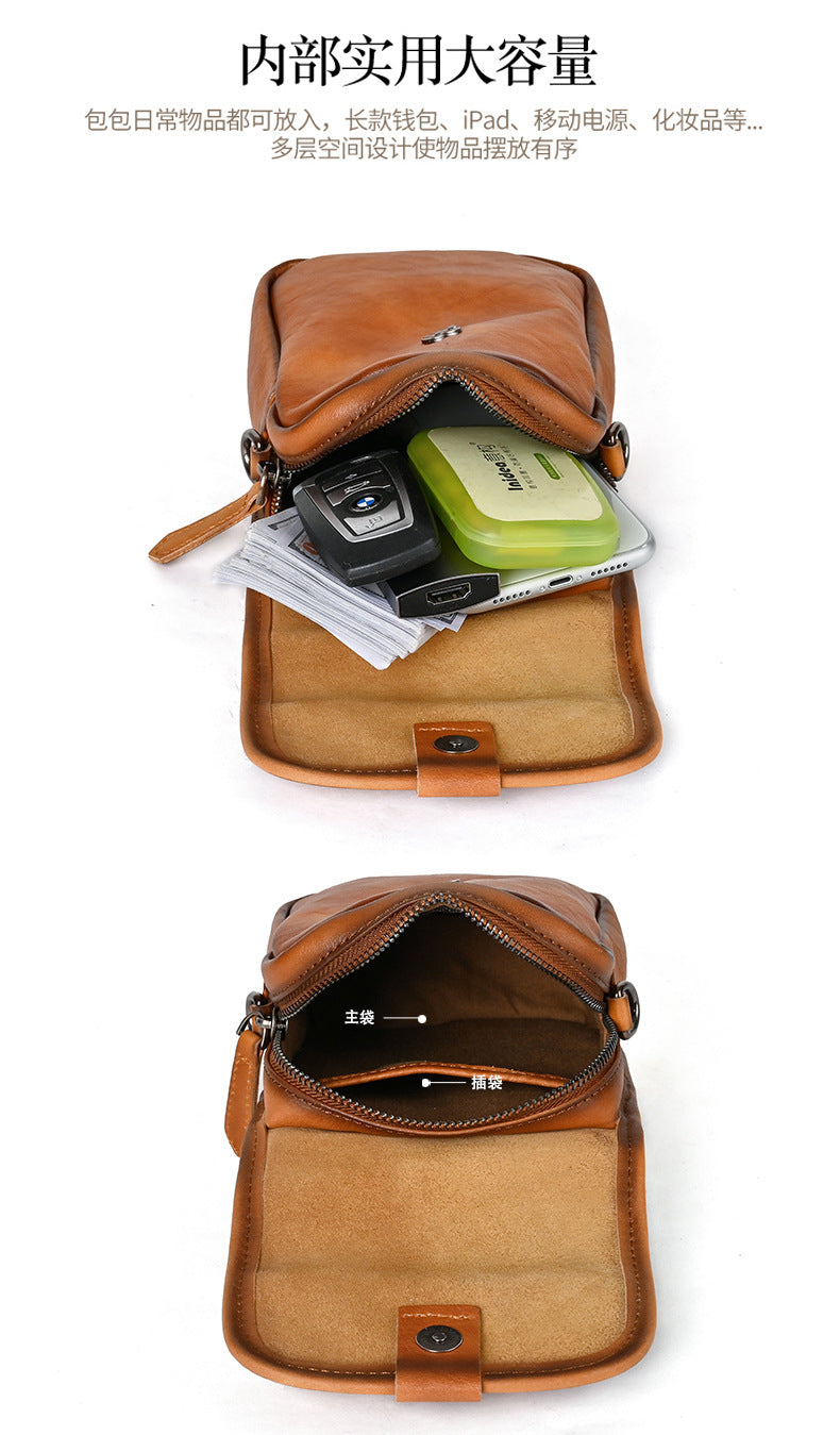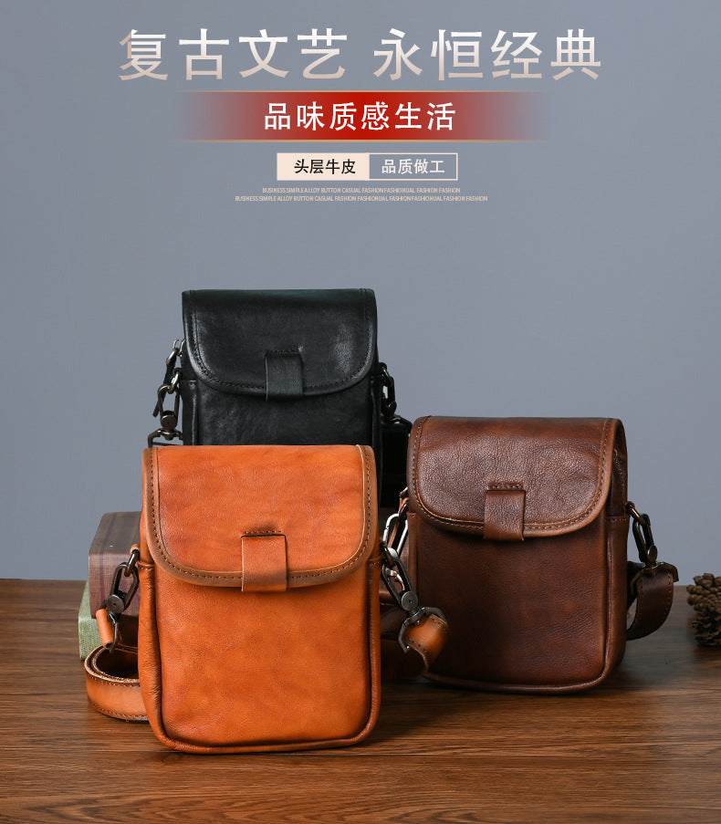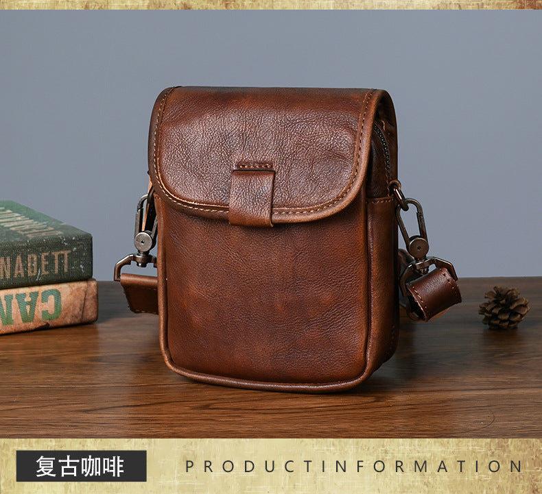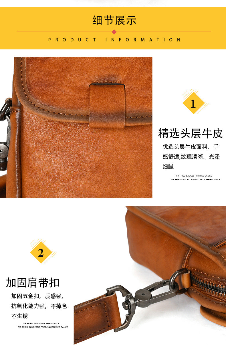 メンズショルダーバッグ牛革本革製レトロカジュアル旅行バッグ男性斜めがけバッグスマホポーチ