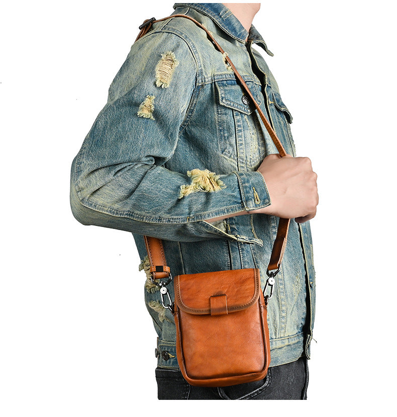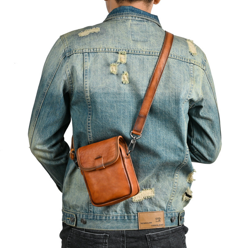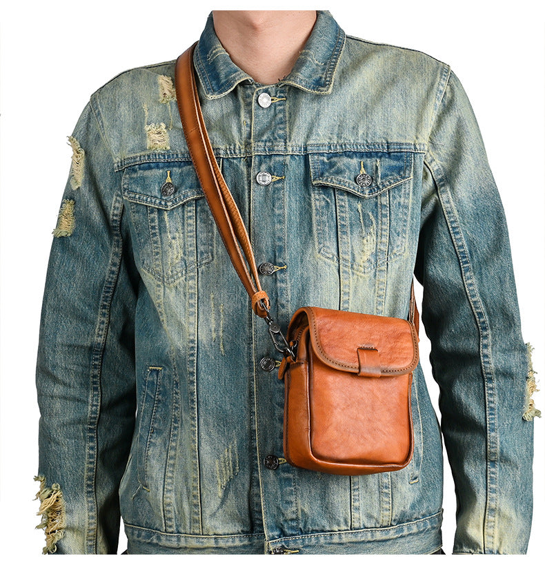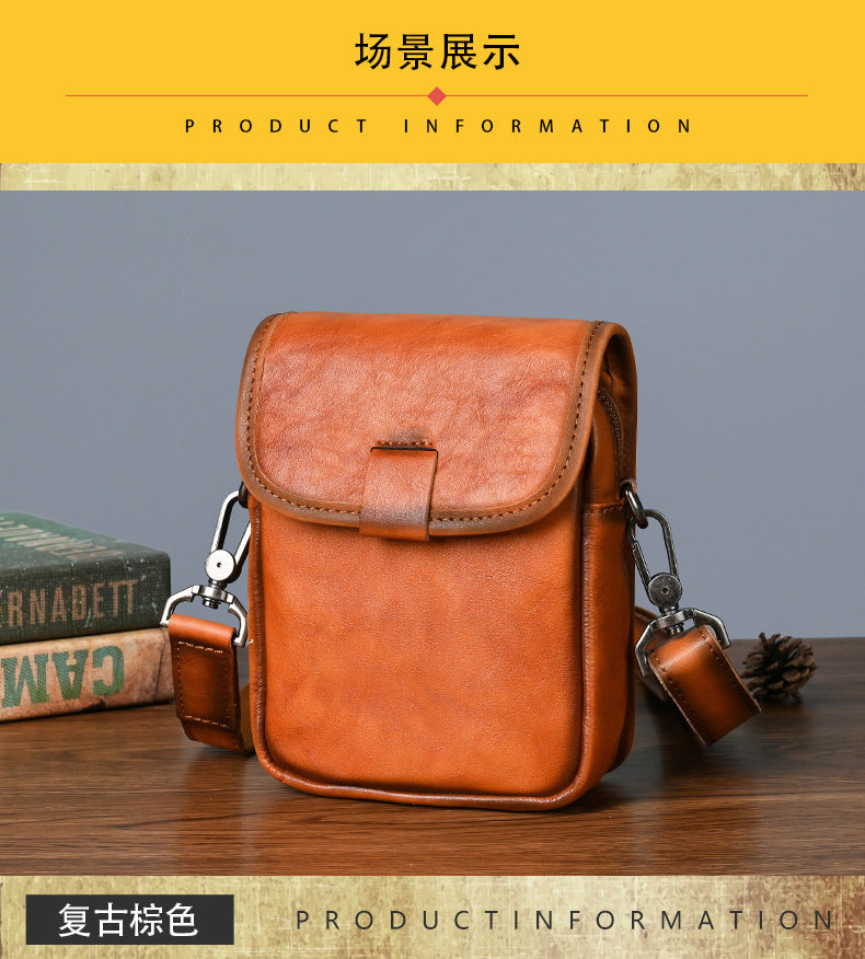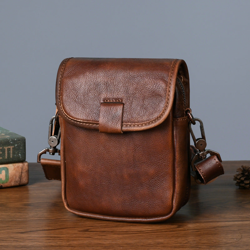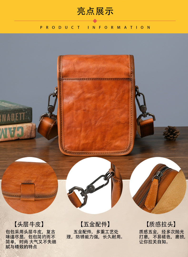 メンズショルダーバッグ牛革本革製レトロカジュアル旅行バッグ男性斜めがけバッグスマホポーチ