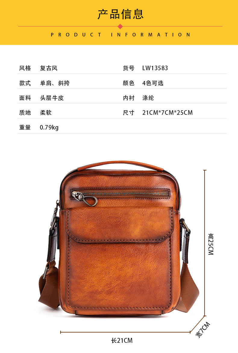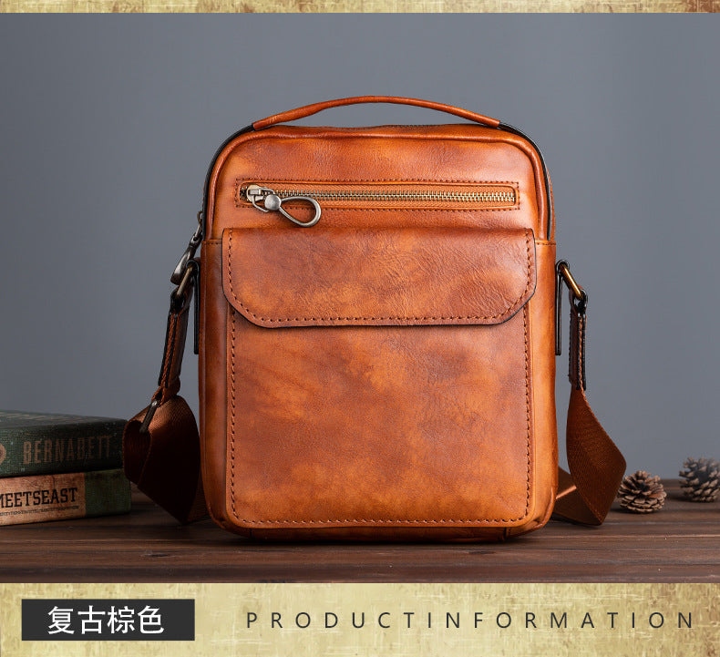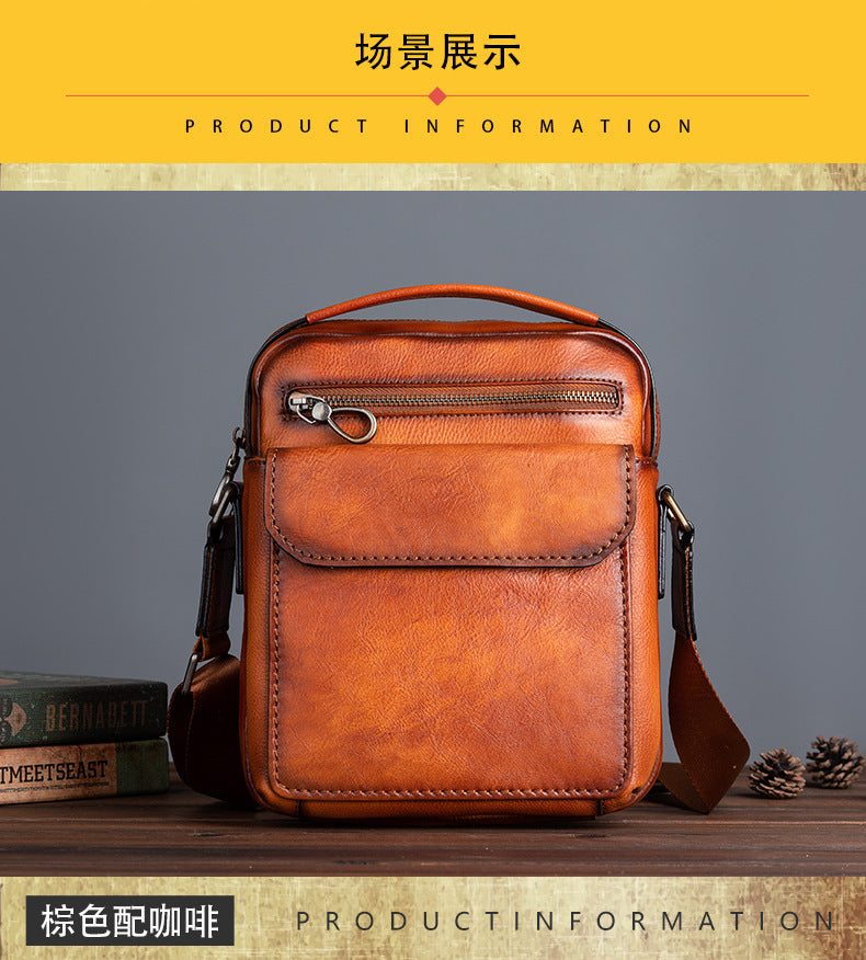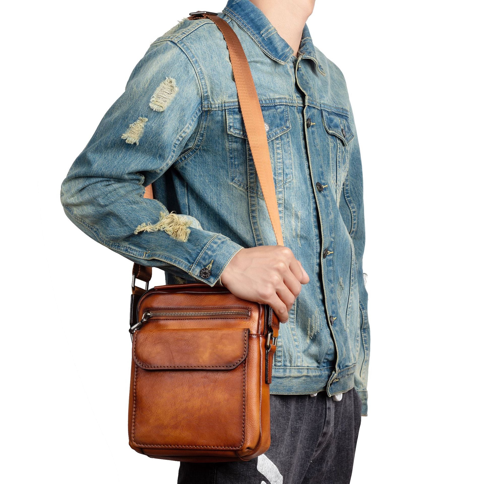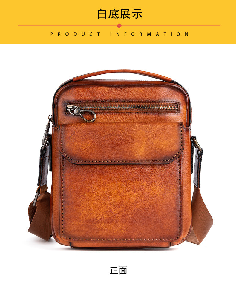 メンズショルダーバッグ牛革本革製レトロカジュアル男性用斜めがけバッグハンドバッグ