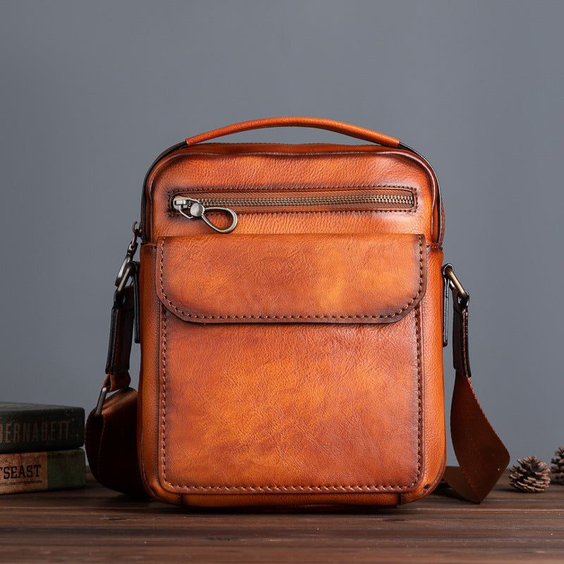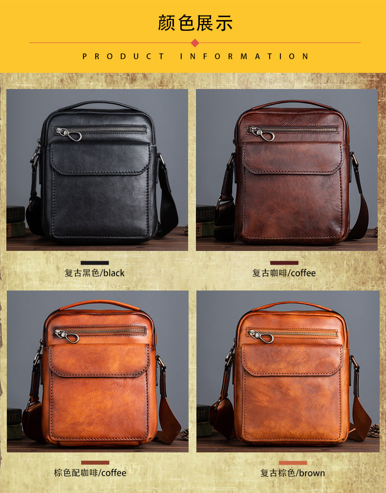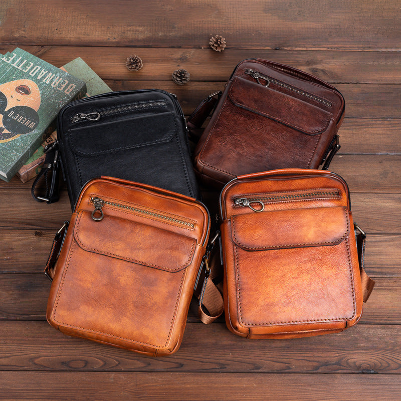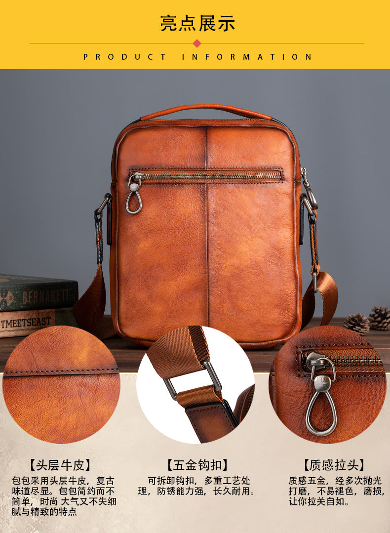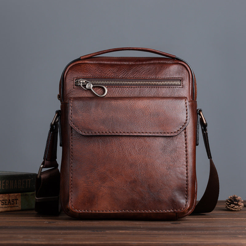 メンズショルダーバッグ牛革本革製レトロカジュアル男性用斜めがけバッグハンドバッグ