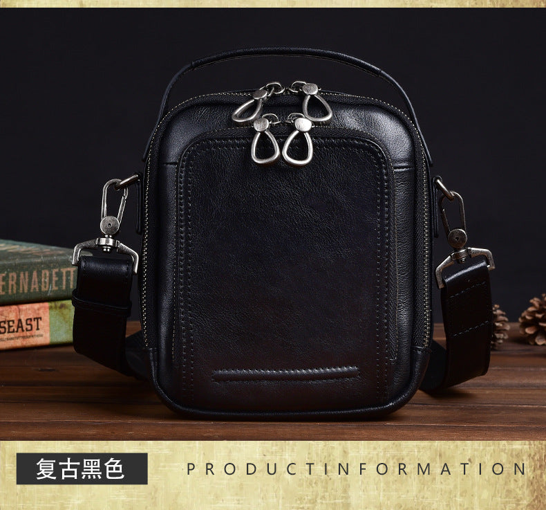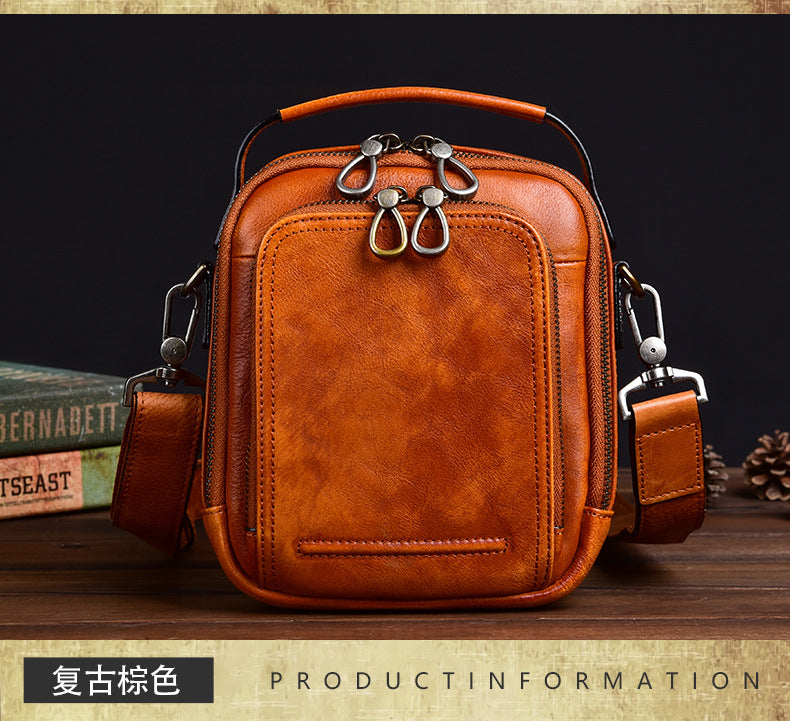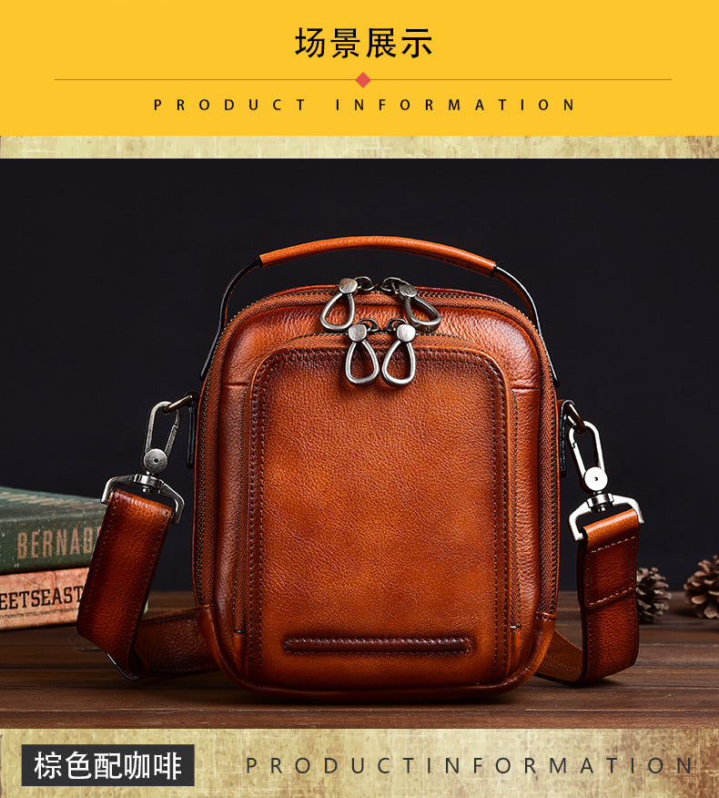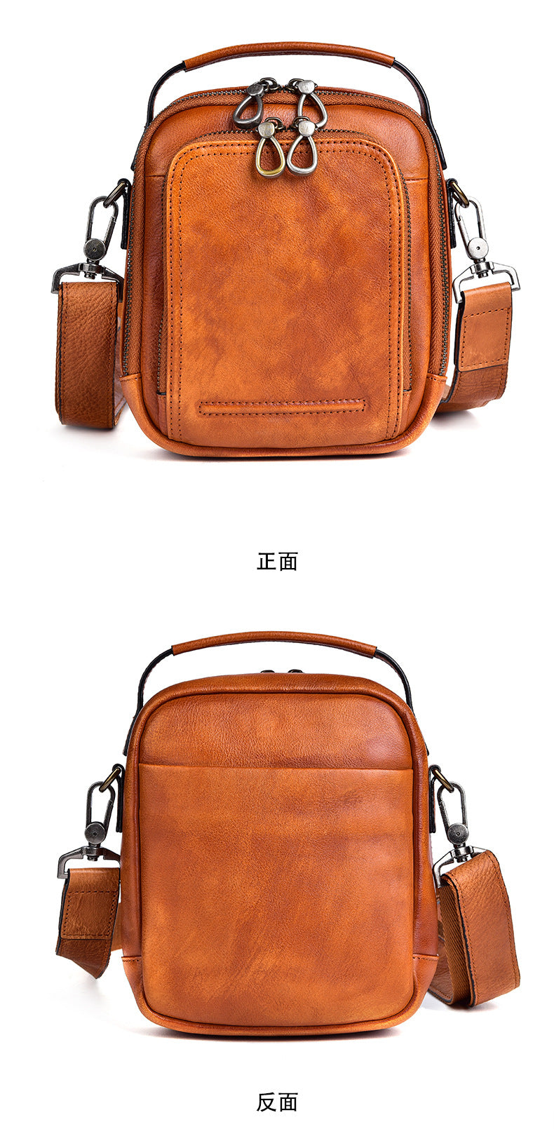 メンズショルダーバッグ牛革本革製レトロカジュアル男性用斜めがけバッグ