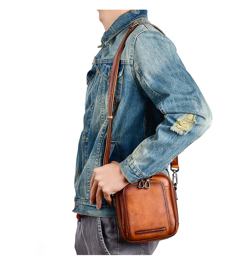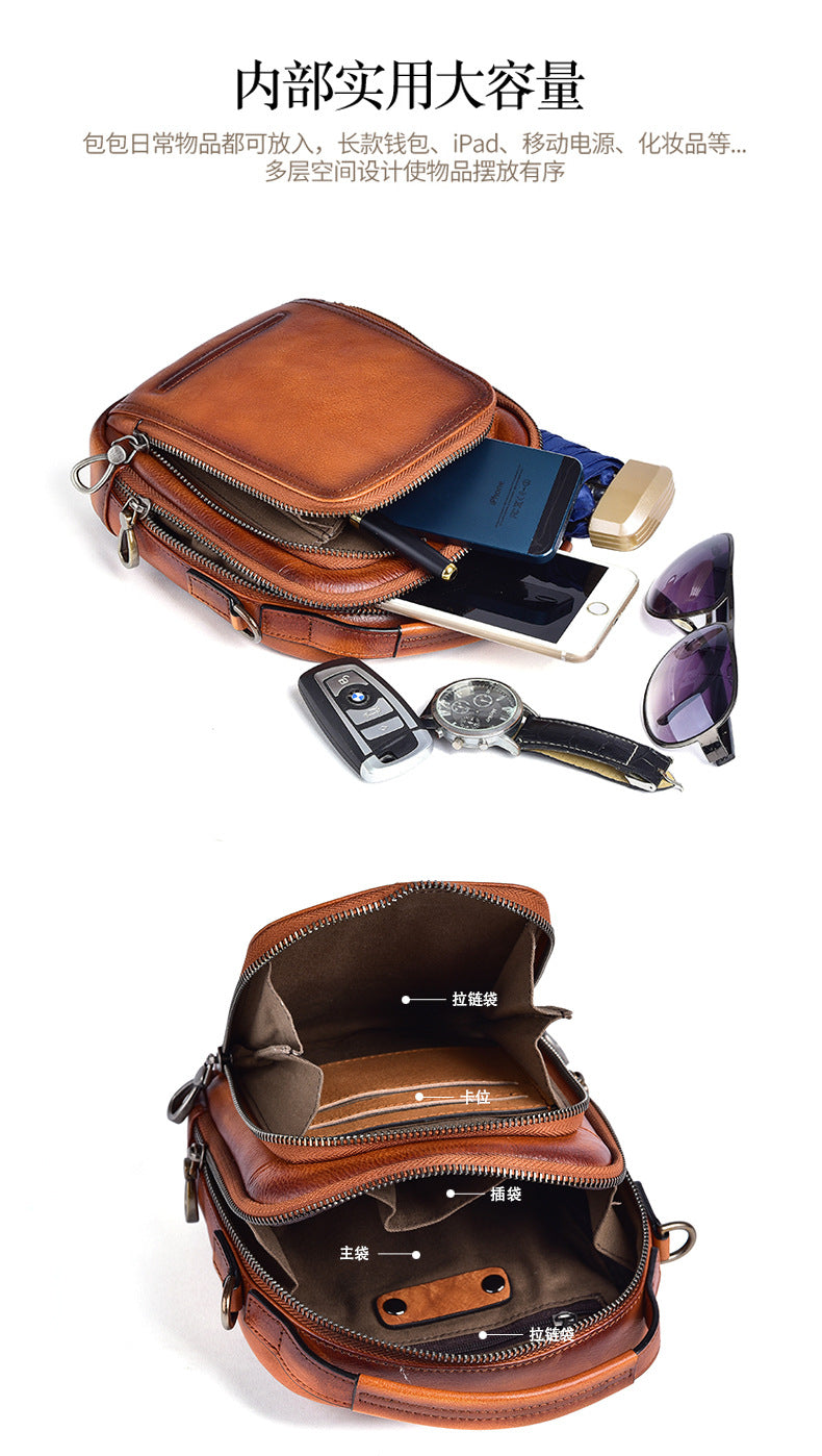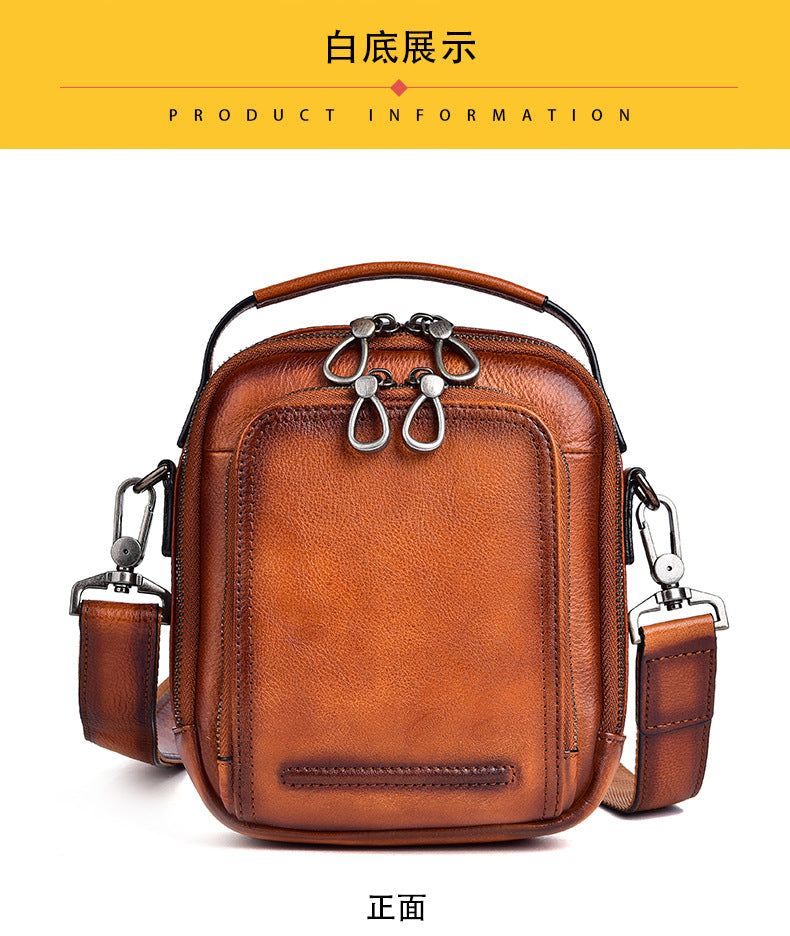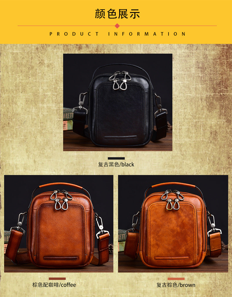 メンズショルダーバッグ牛革本革製レトロカジュアル男性用斜めがけバッグ