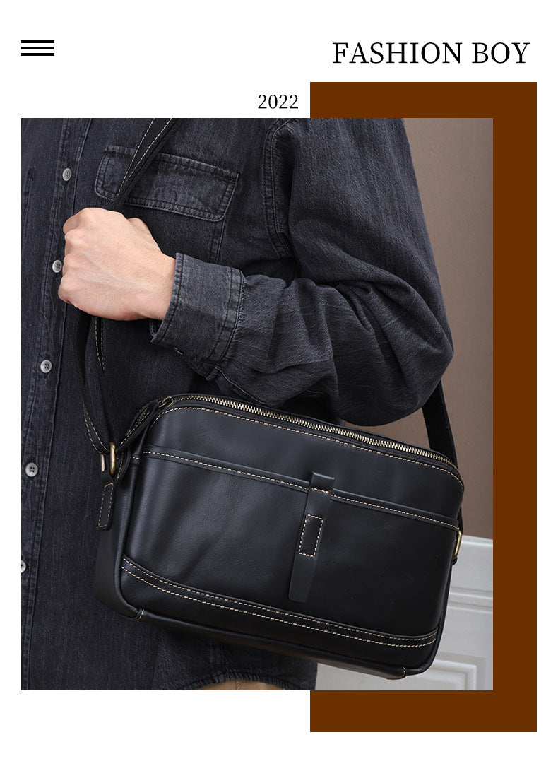 メンズショルダーバッグ牛革本革製レトロファッション通勤 男性用斜めがけバッグ
