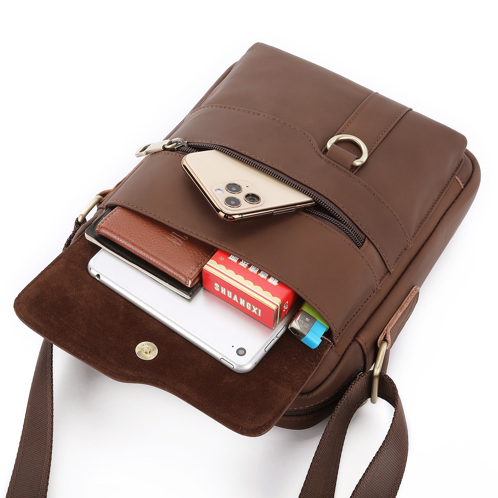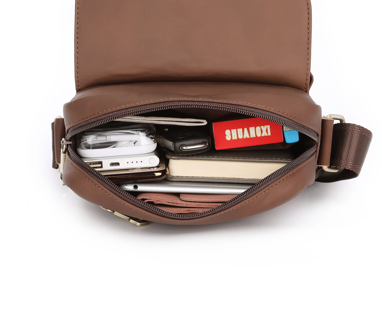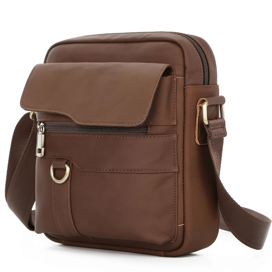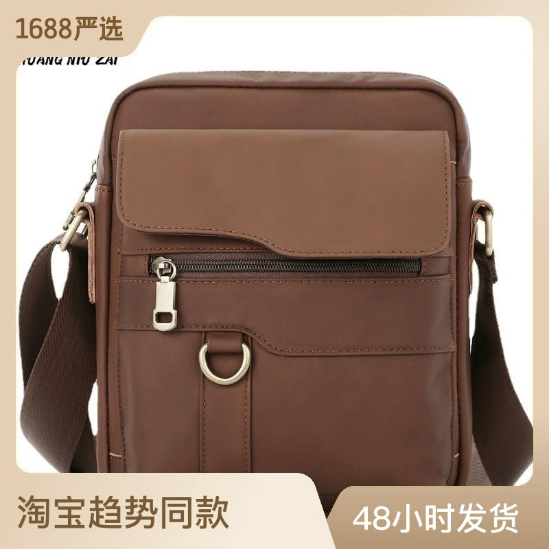 メンズショルダーバッグ牛革本革製レトロ大容量男性用斜めがけバッグ