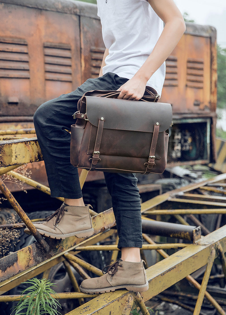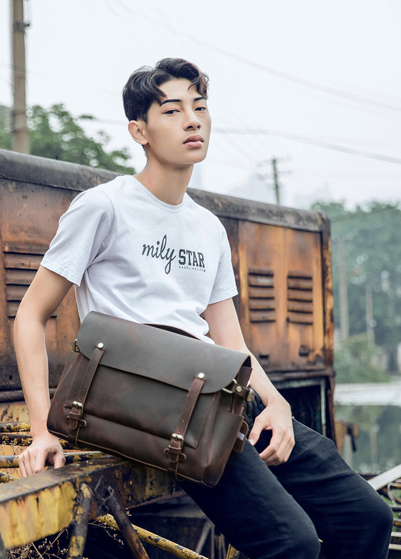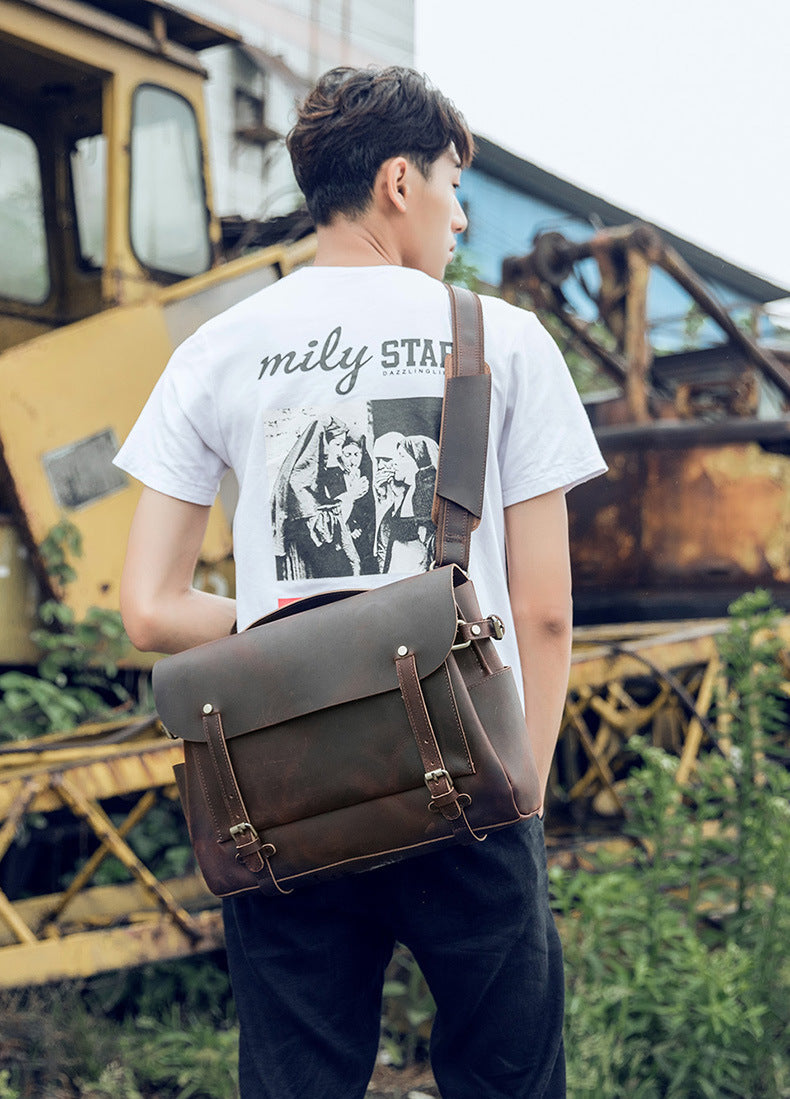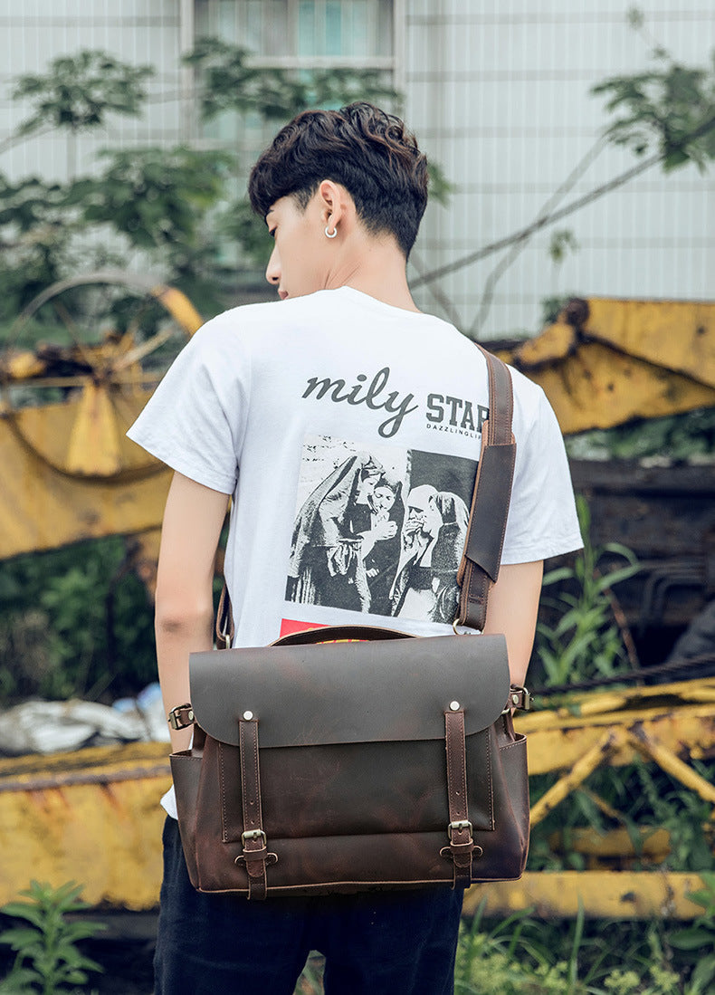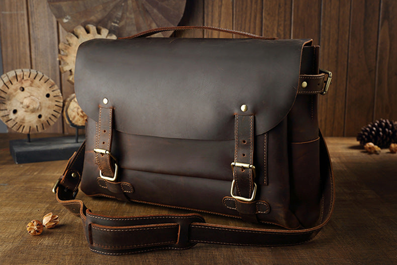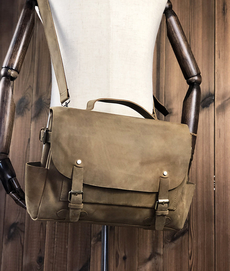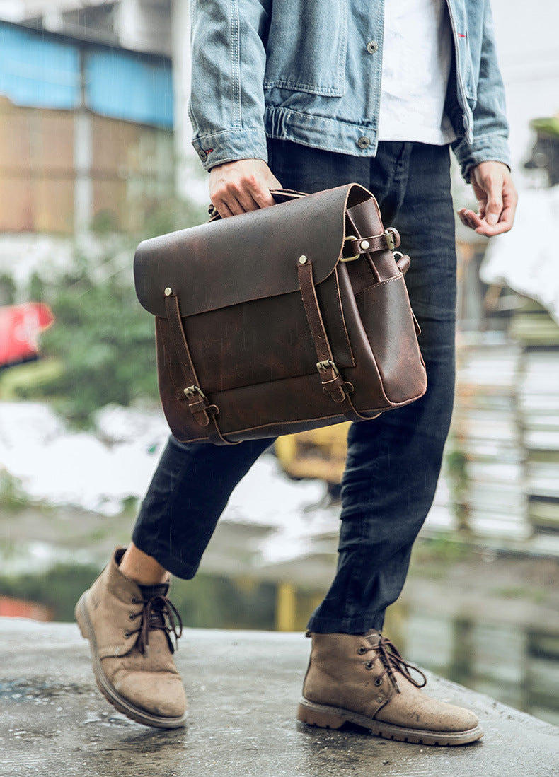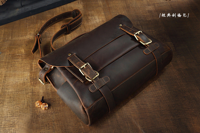 メンズショルダーバッグ ケンブリッジバッグ 手作り 牛革本革製 レトロハンドバッグ 個性男性用斜めがけバッグメッセンジャーバッグ