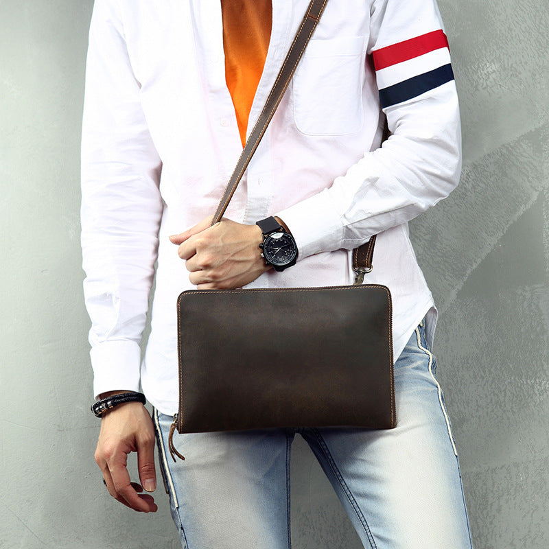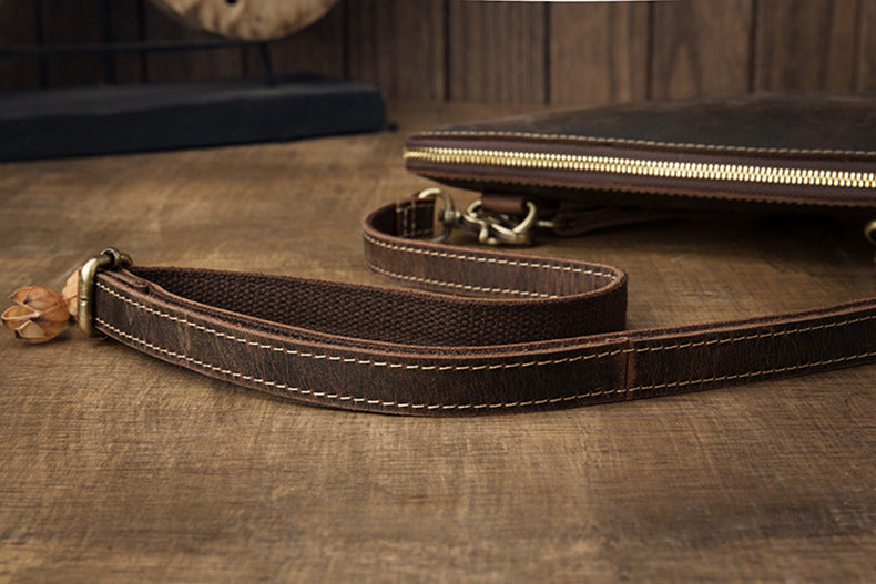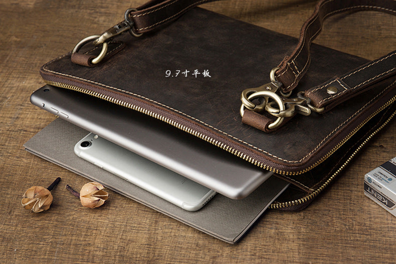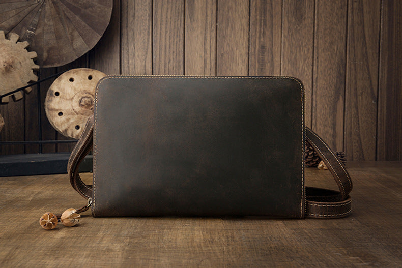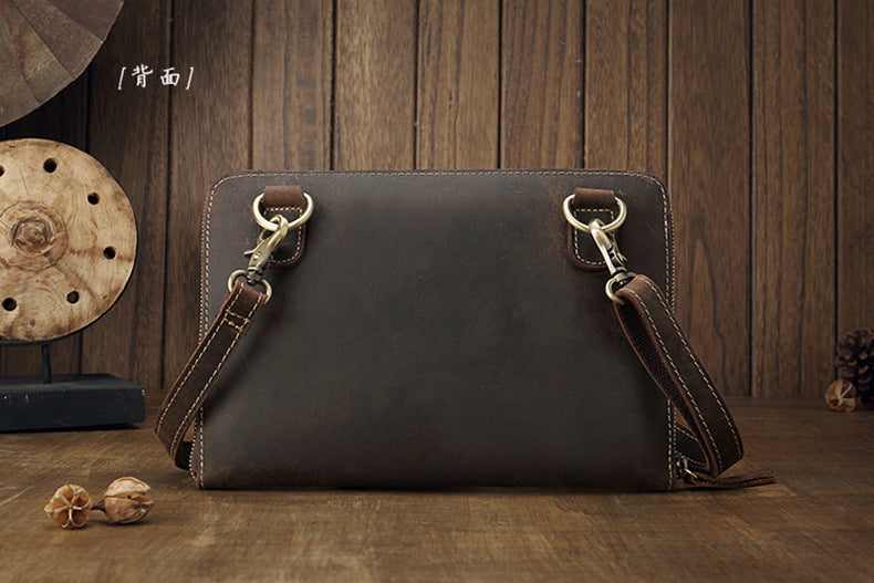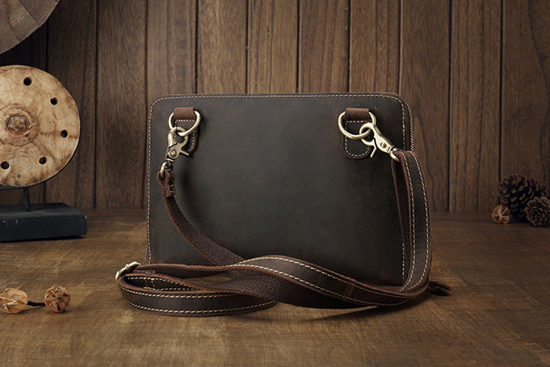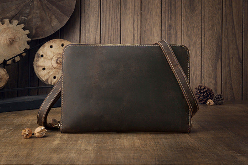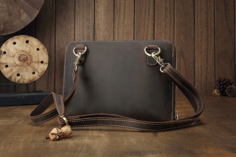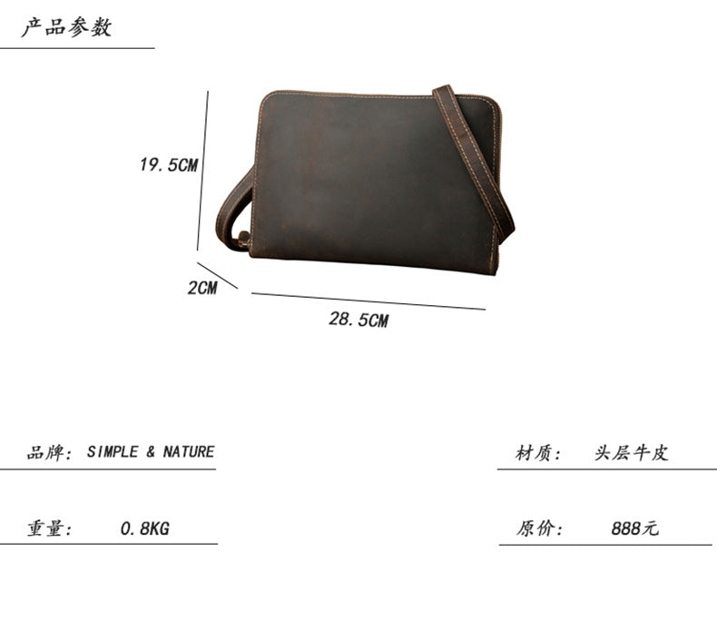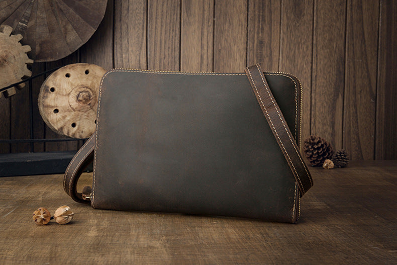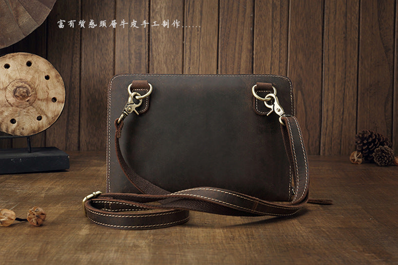 メンズショルダーバッグ ファッション牛皮本革製 クレイジー・ホース レトロ カジュアル シンプル 斜めがけバッグ