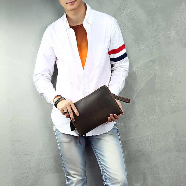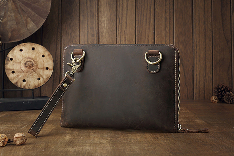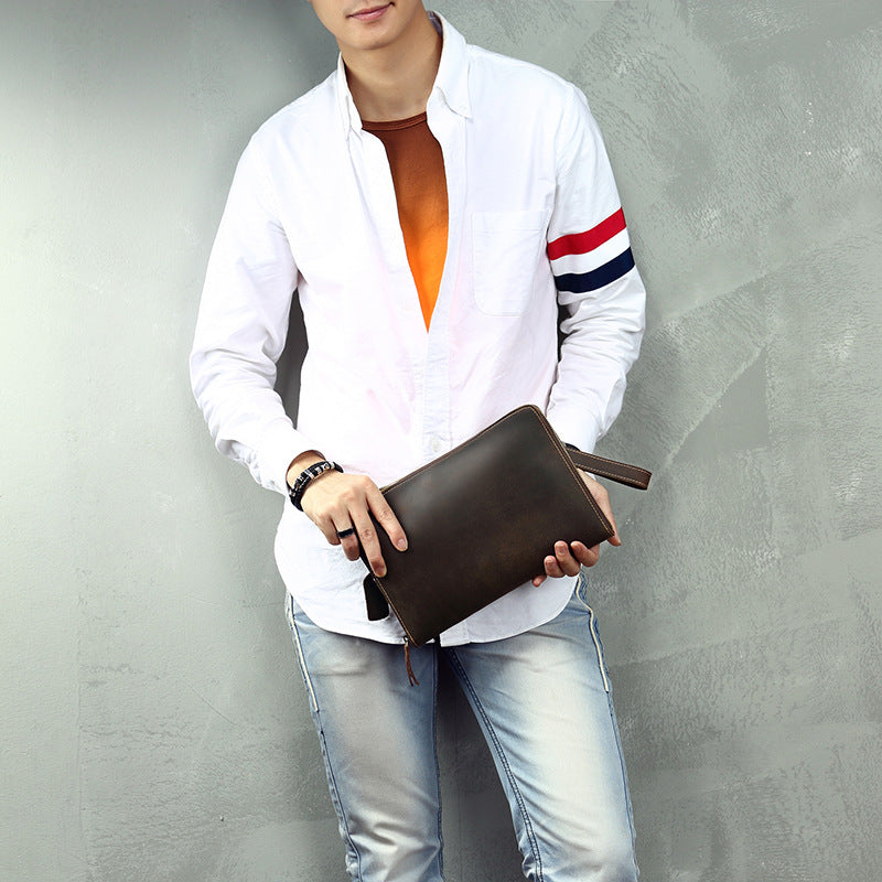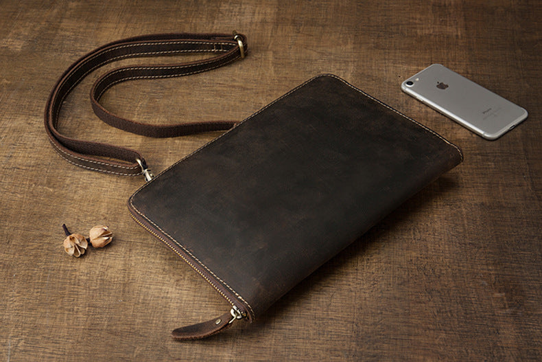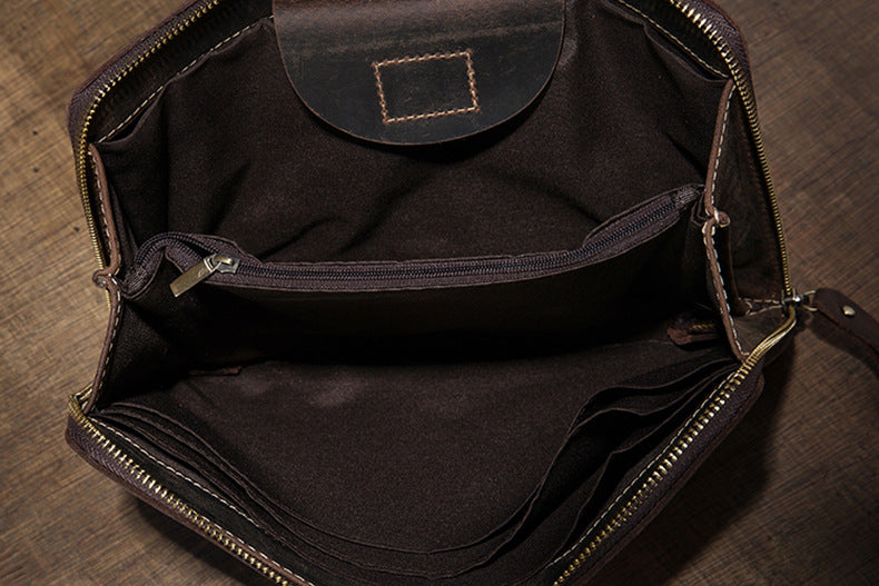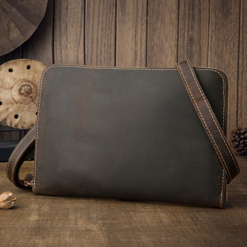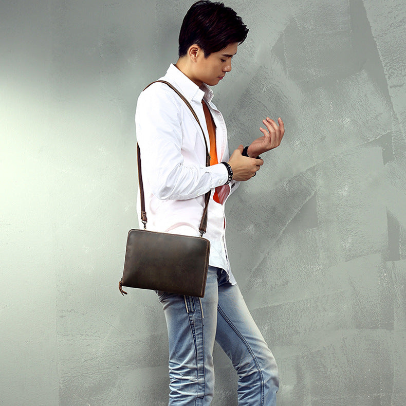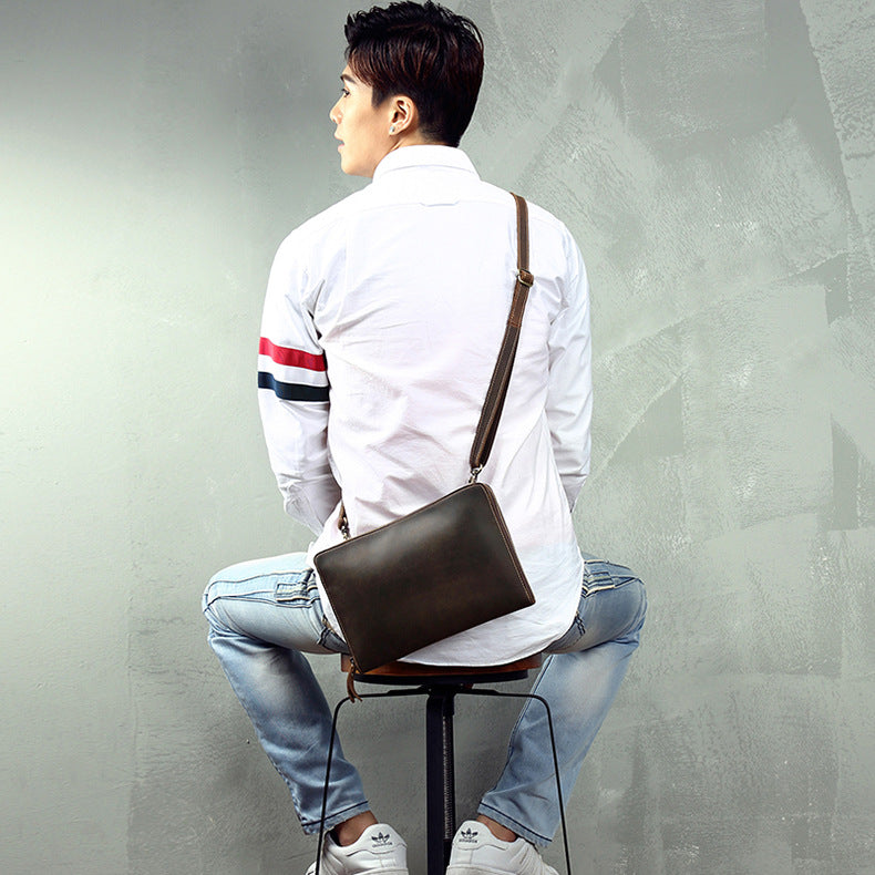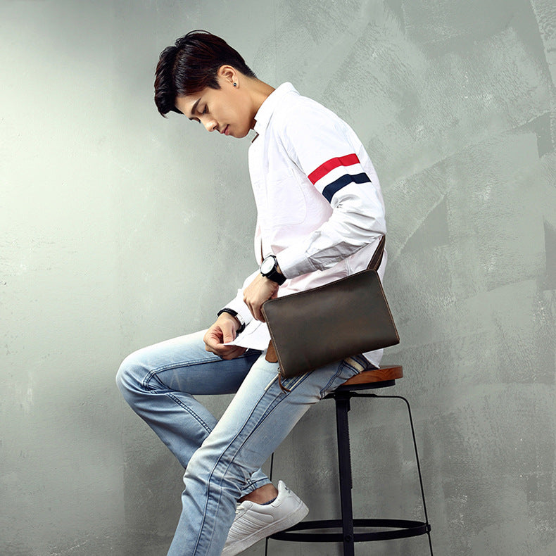 メンズショルダーバッグ ファッション牛皮本革製 クレイジー・ホース レトロ カジュアル シンプル 斜めがけバッグ