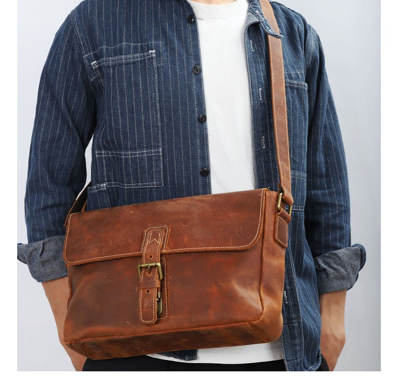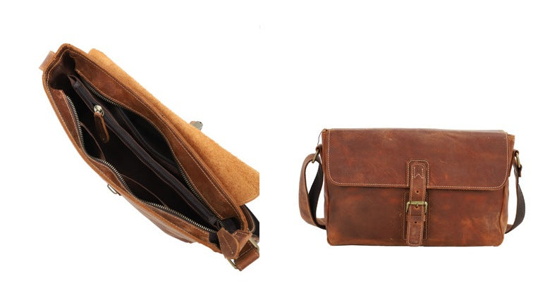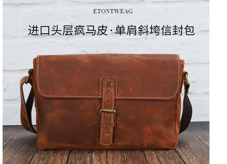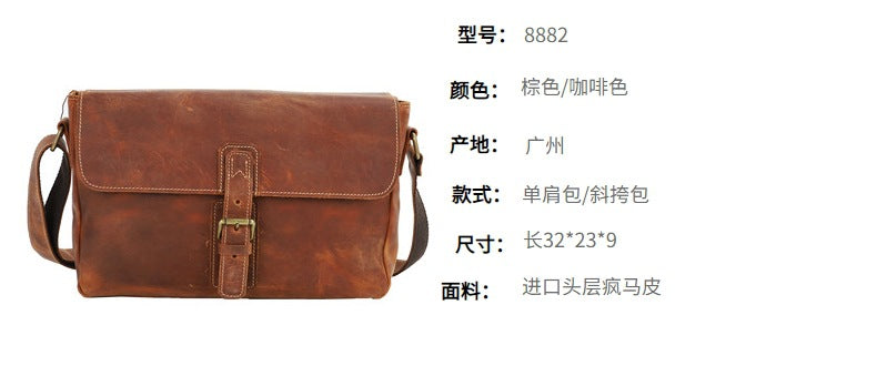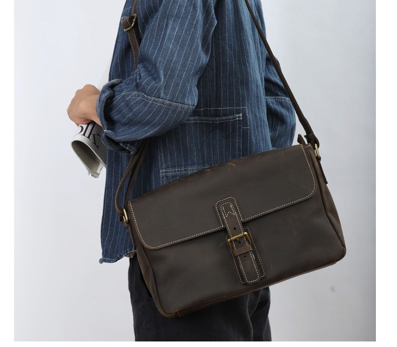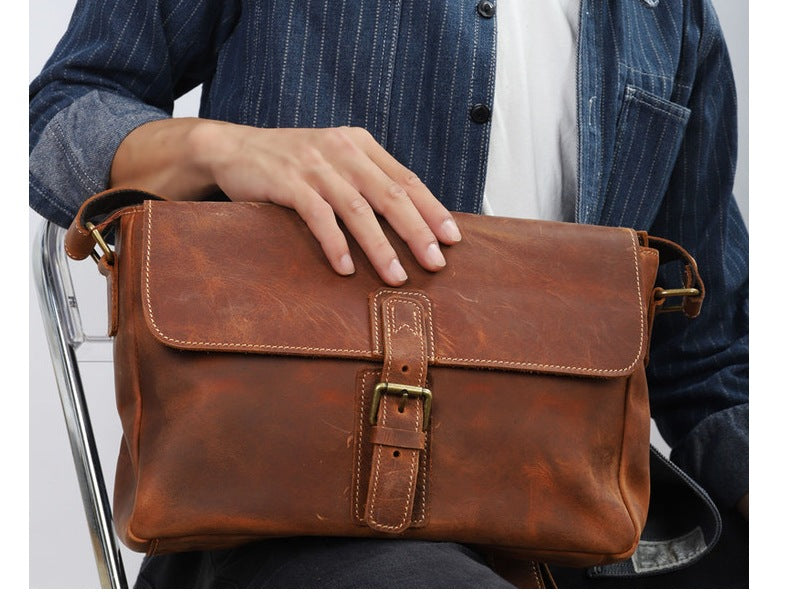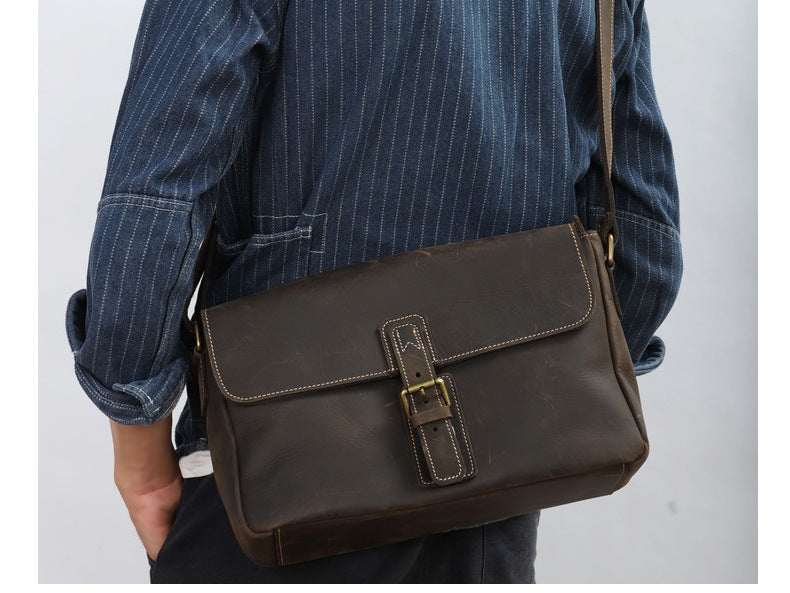 メンズショルダーバッグ 手作り オリジナル牛革カジュアル メッセンジャーバッグ男性用斜めがけバッグ
