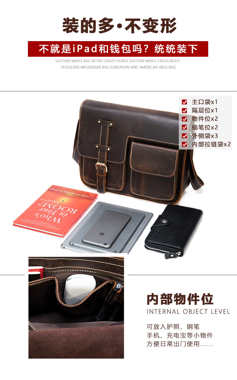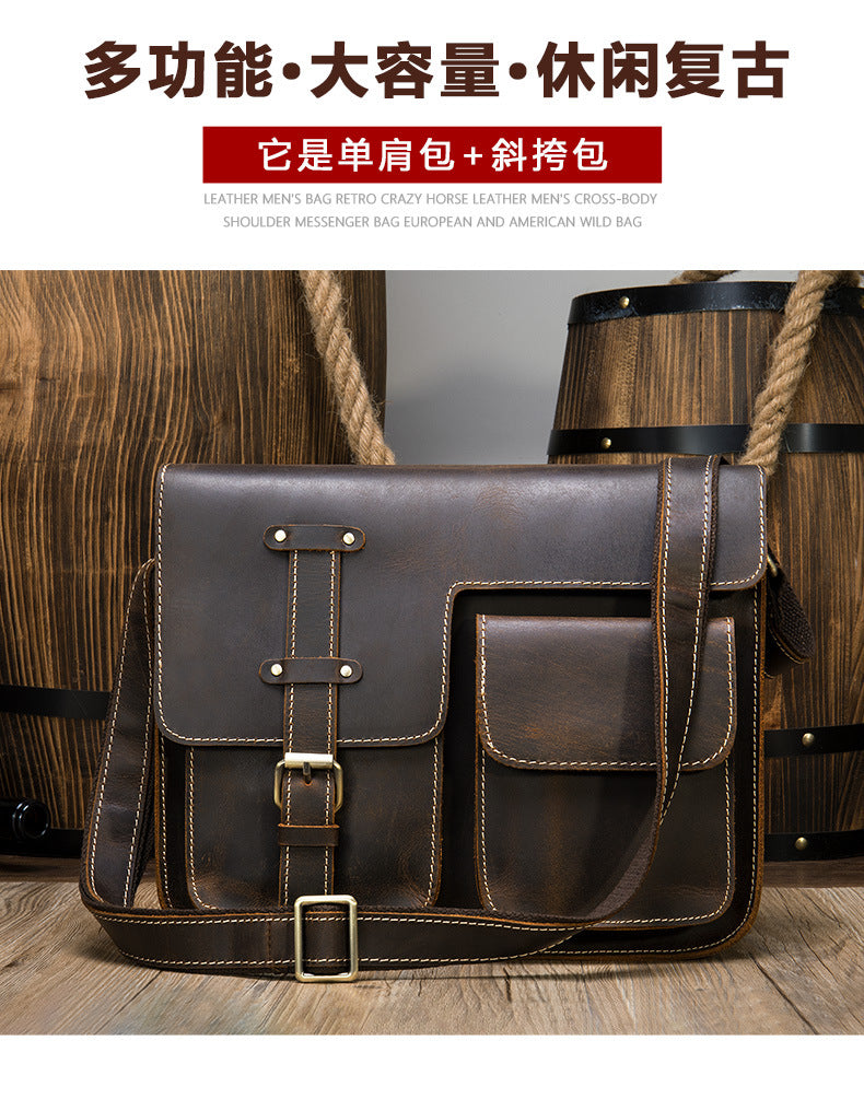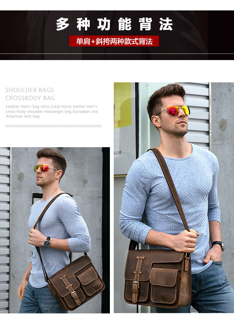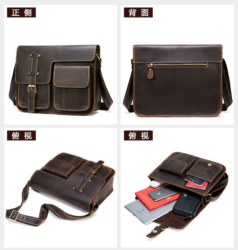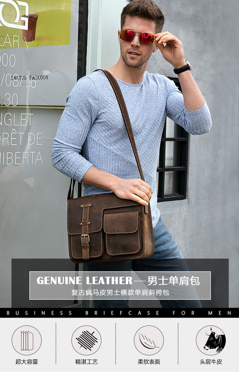 メンズショルダーバッグ 牛皮本革製 高品質 ヴィンテージ 大容量 男性斜めがけバッグ ブリーフケース
