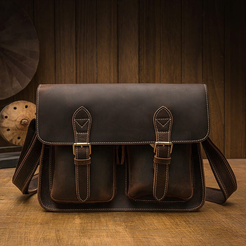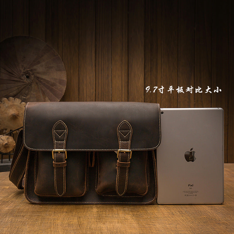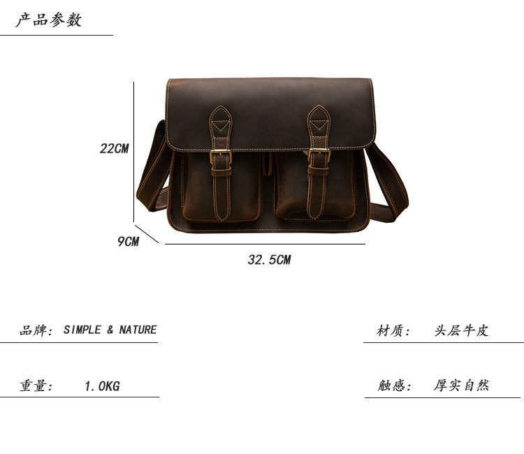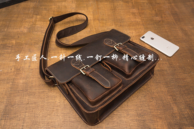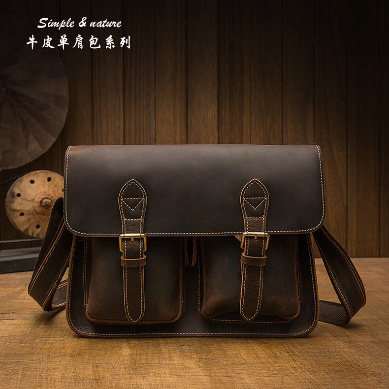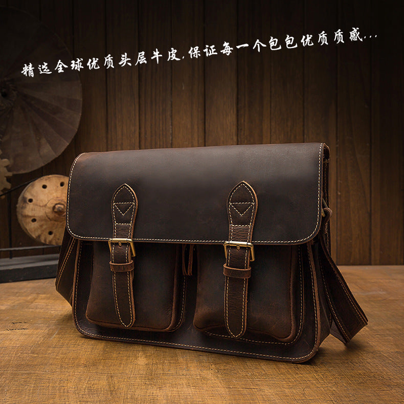 メンズショルダーバッグ 牛皮 クレイジー・ホース 手作業 レトロ ファッション斜めがけバッグ
