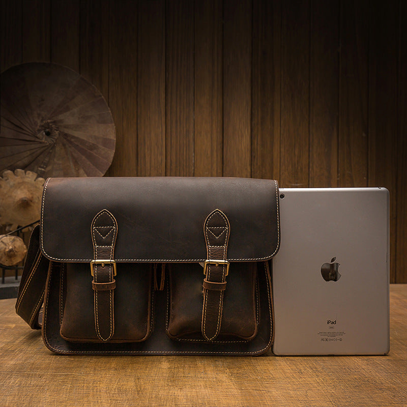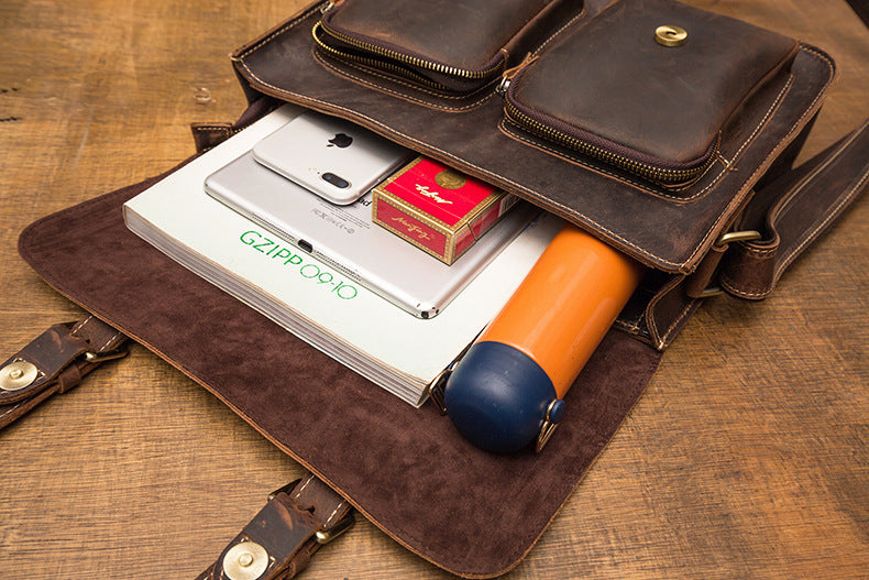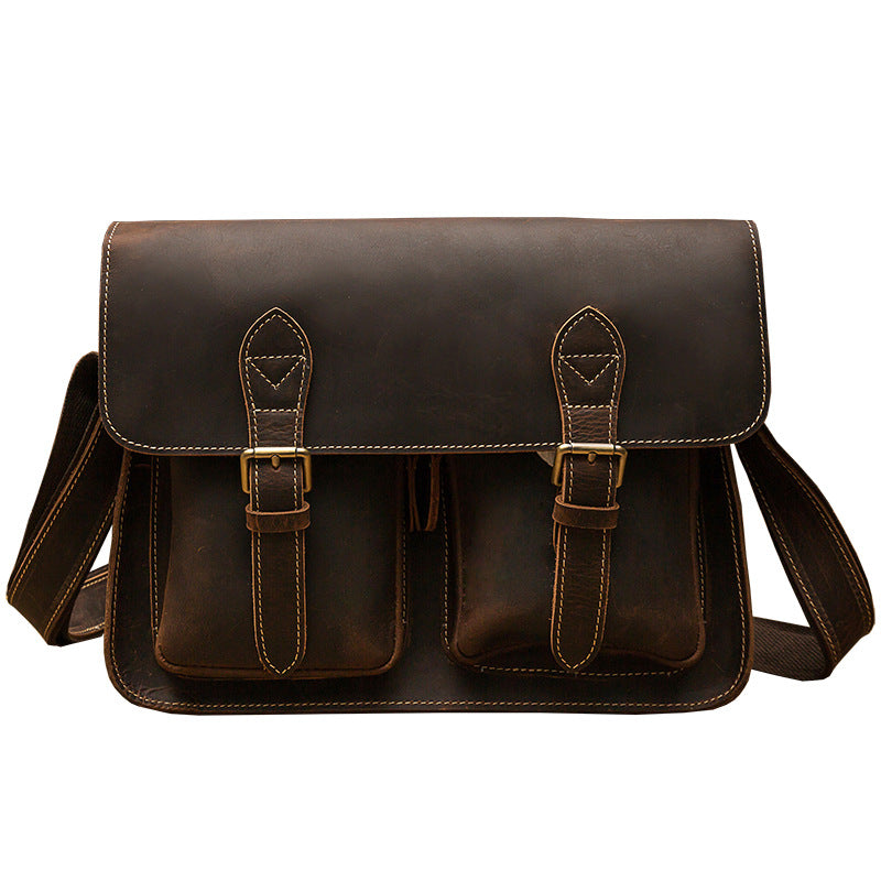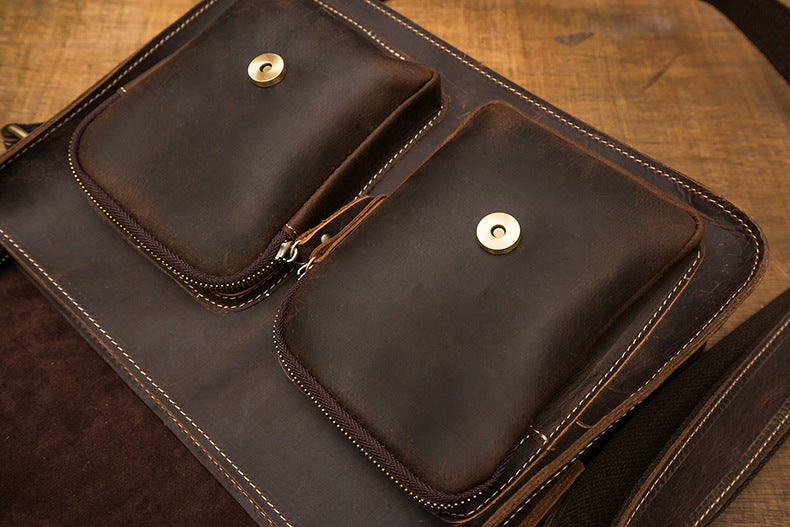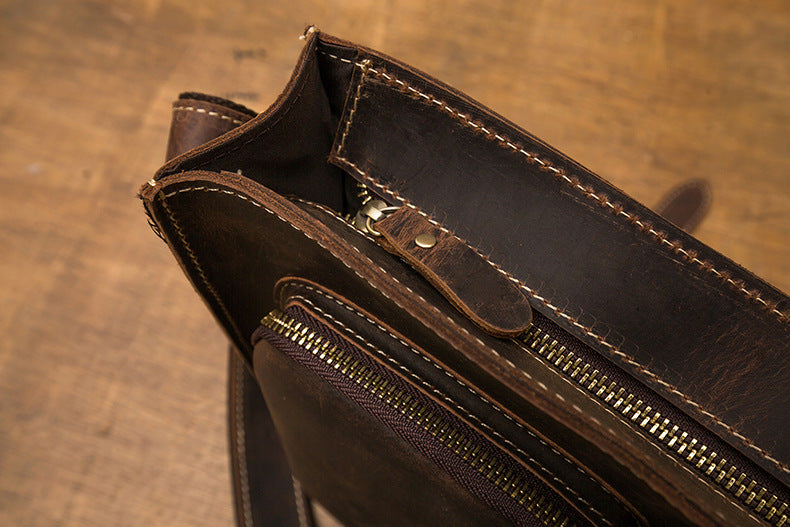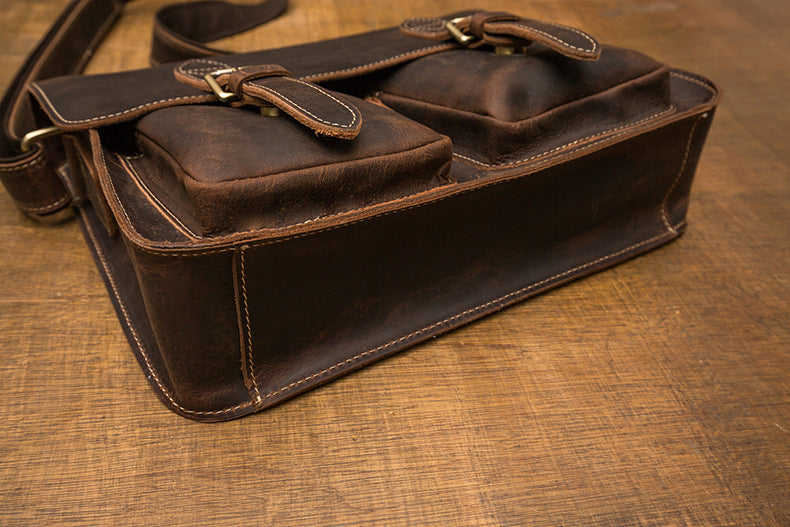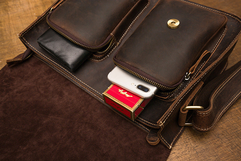 メンズショルダーバッグ 牛皮 クレイジー・ホース 手作業 レトロ ファッション斜めがけバッグ