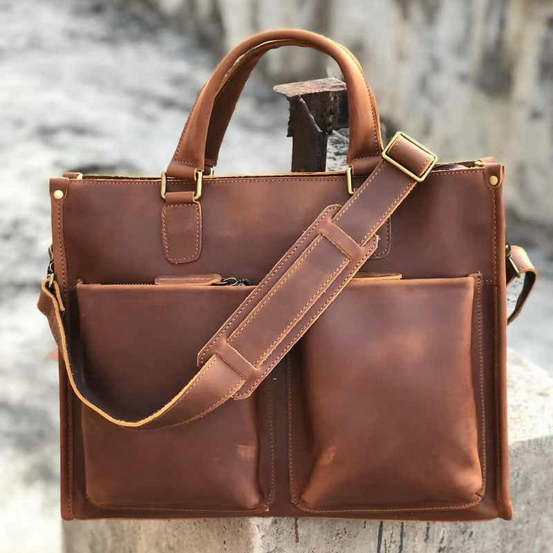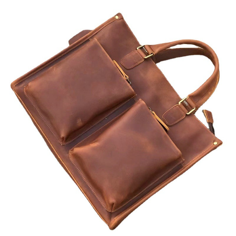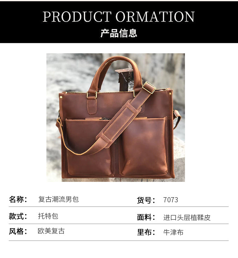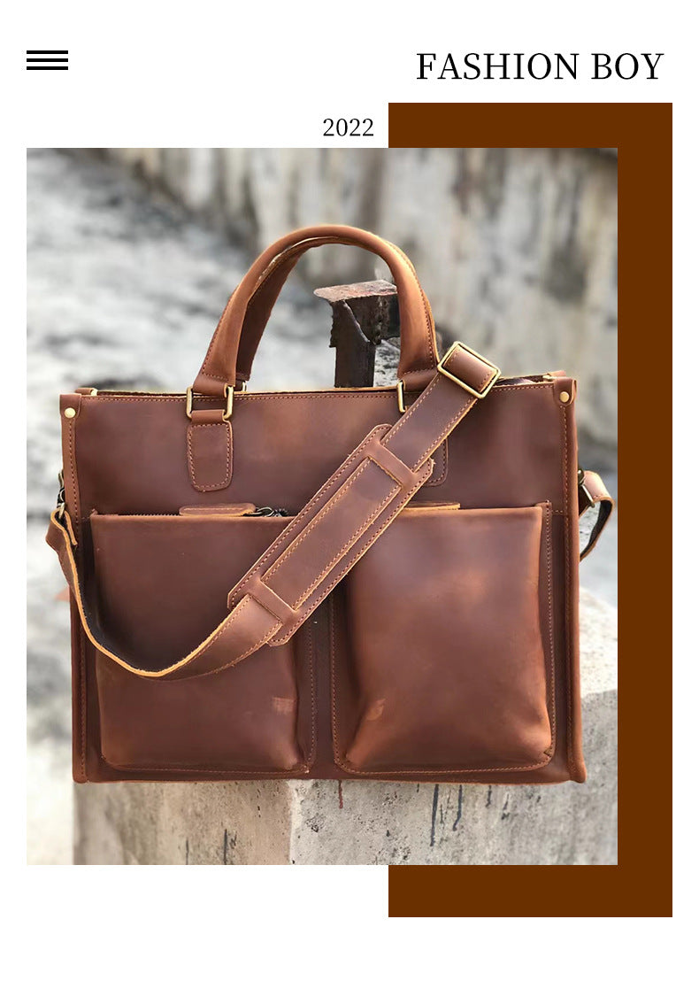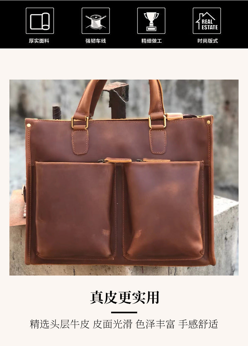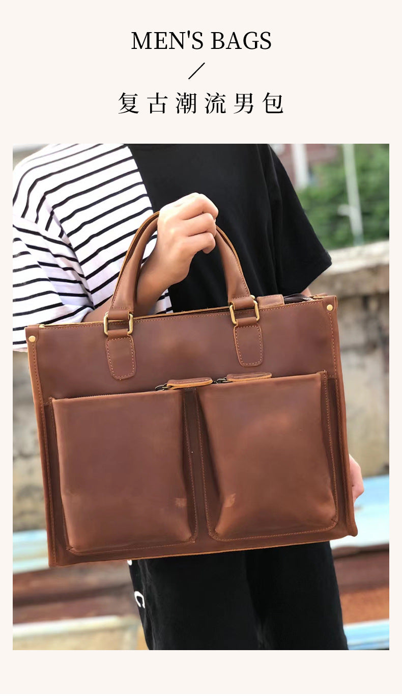 メンズハンドバッグブリーフケース牛革クレイジー・ホースショルダーバッグビジネス通勤男性用斜めがけバッグパソコンバッグ