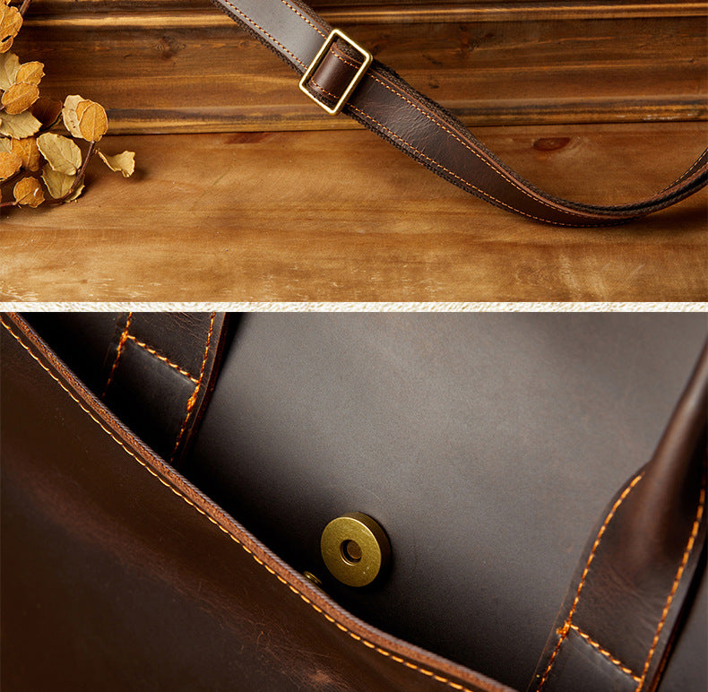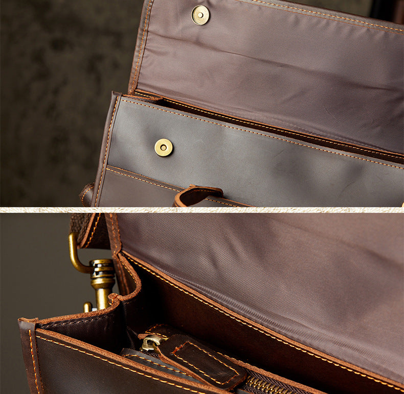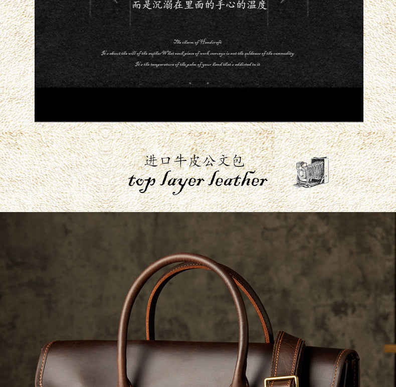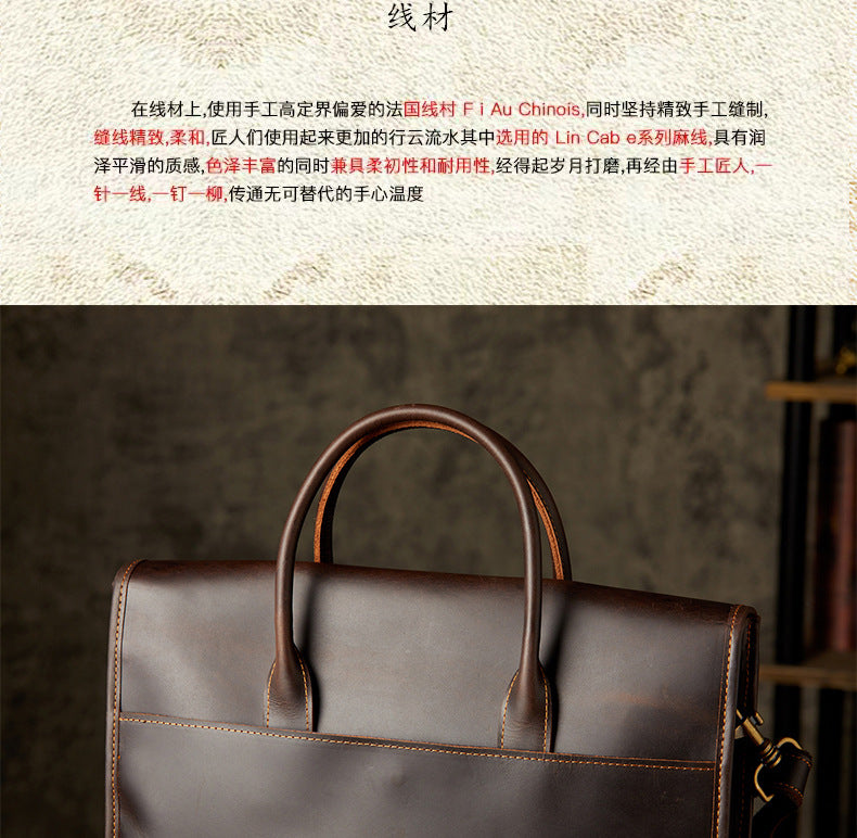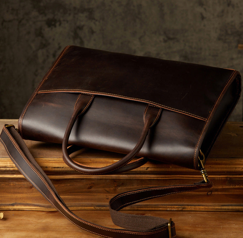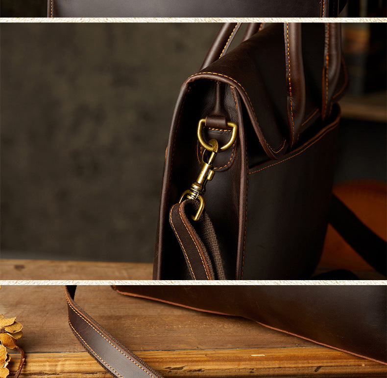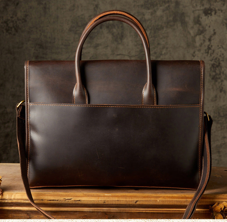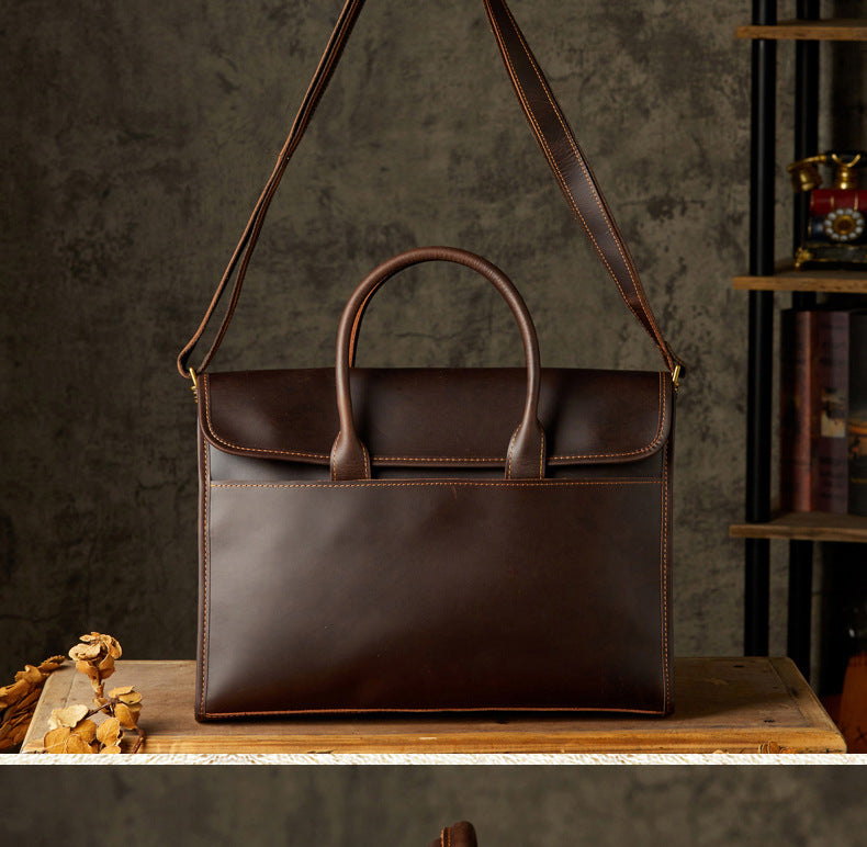 メンズハンドバッグ手提げかばん手作業牛皮本革製クレイジー・ホース斜めがけショルダーバッグ男性用OLビジネスカジュアルブリーフケースパソコンバッグ