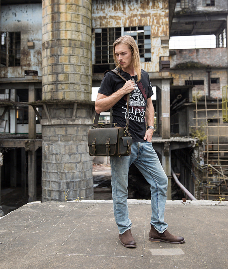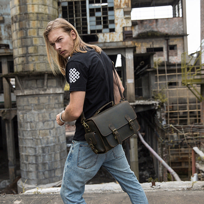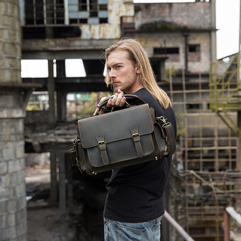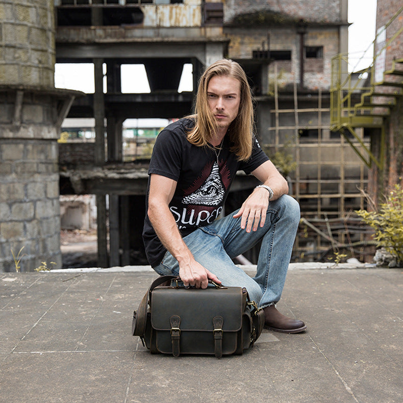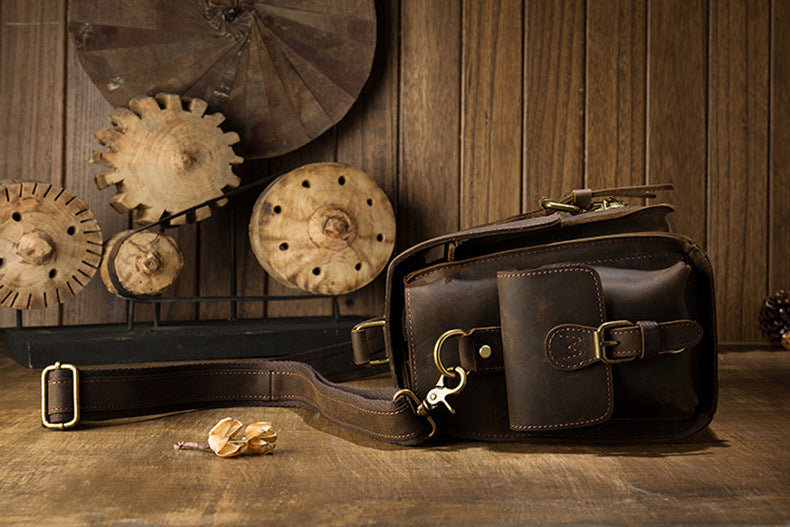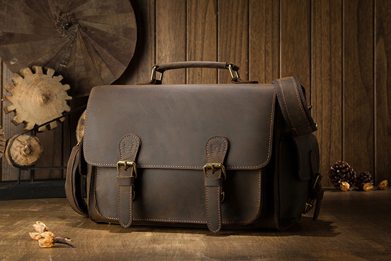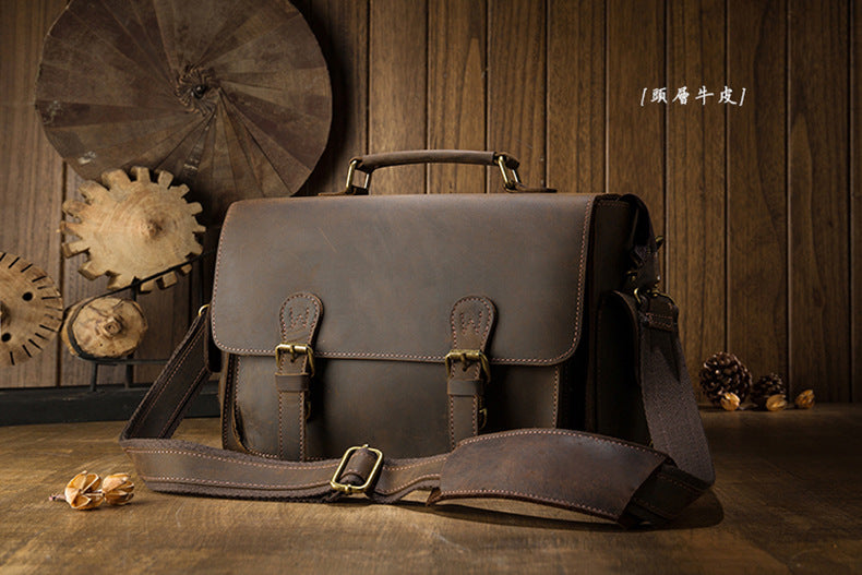 メンズハンドバッグ手提げかばん牛皮本革製手作業メッセンジャーバッグクレイジー・ホースレトロ斜めがけショルダーバッグカメラバッグ