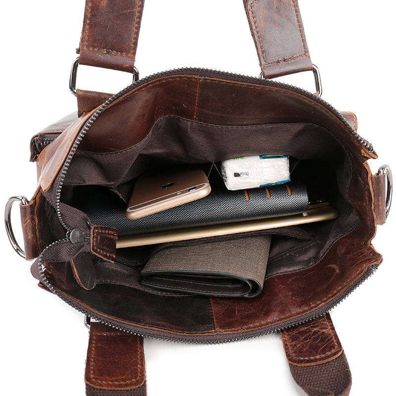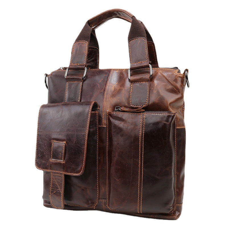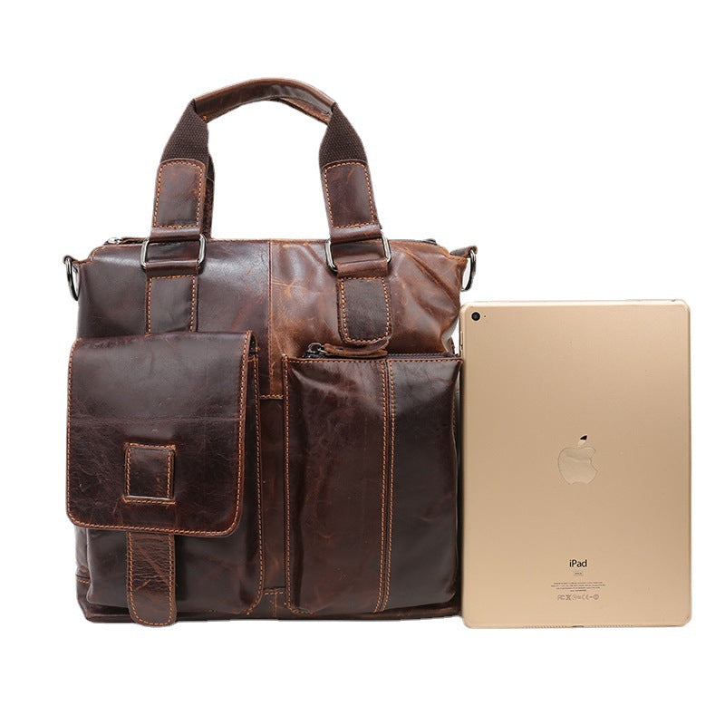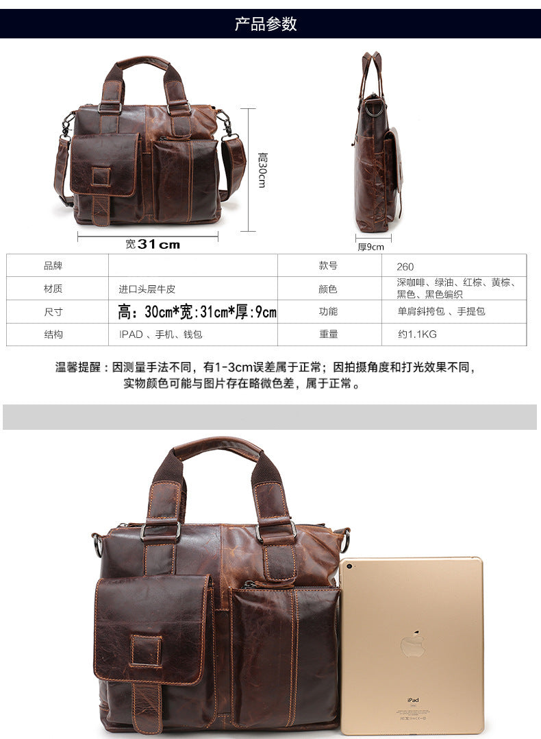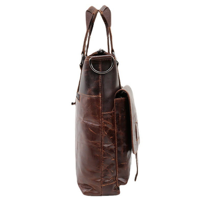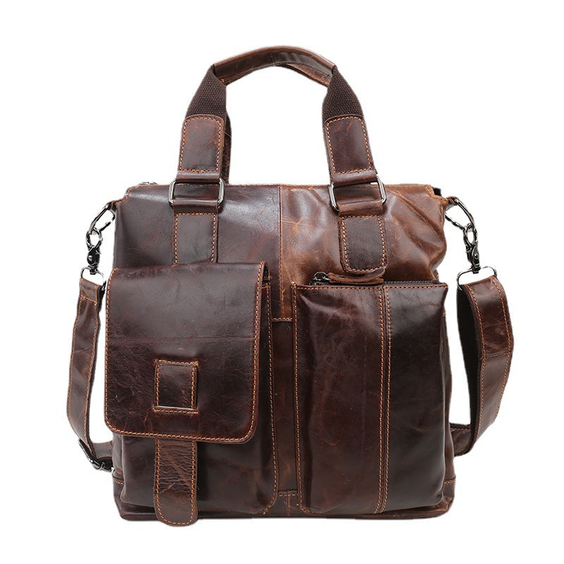 メンズハンドバッグ 牛革本革製 レトロ カジュアルビジネスブリーフケース男性ショルダーバッグ斜めがけバッグ