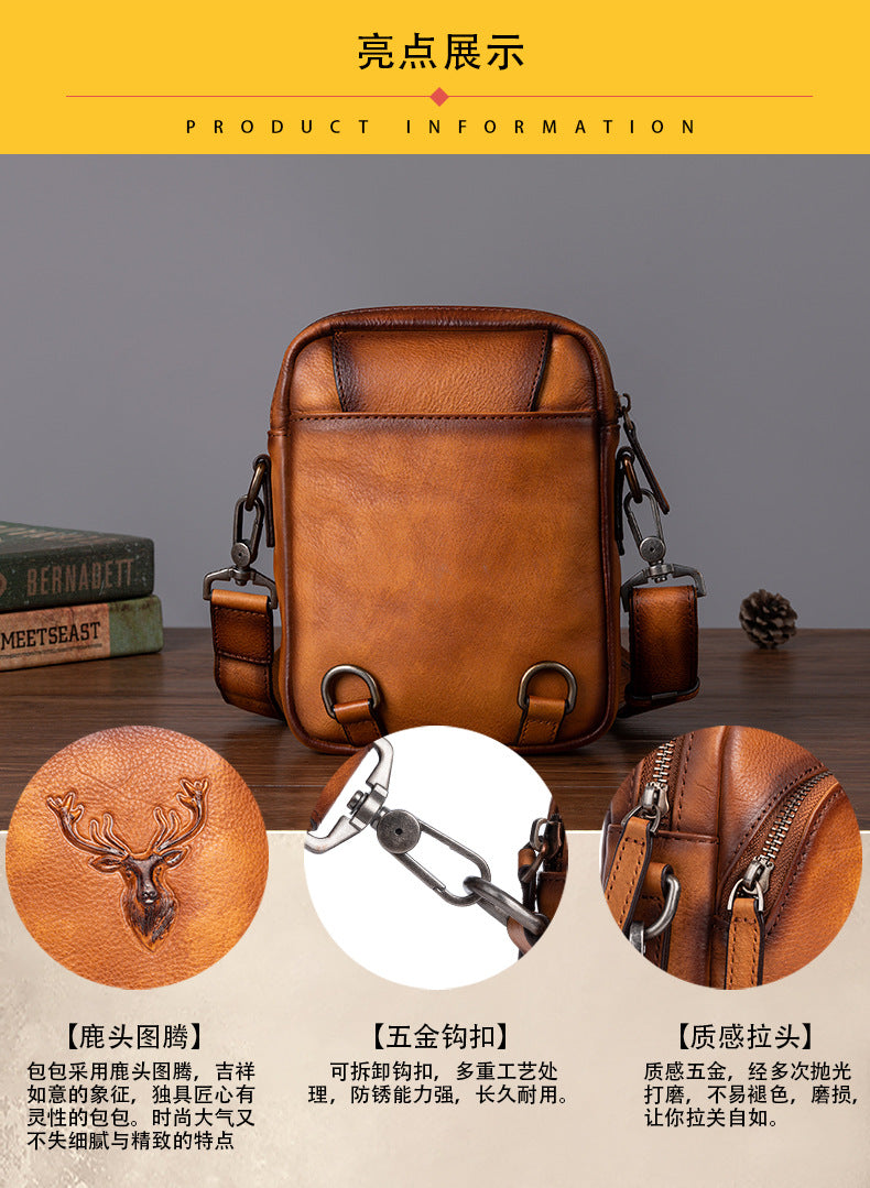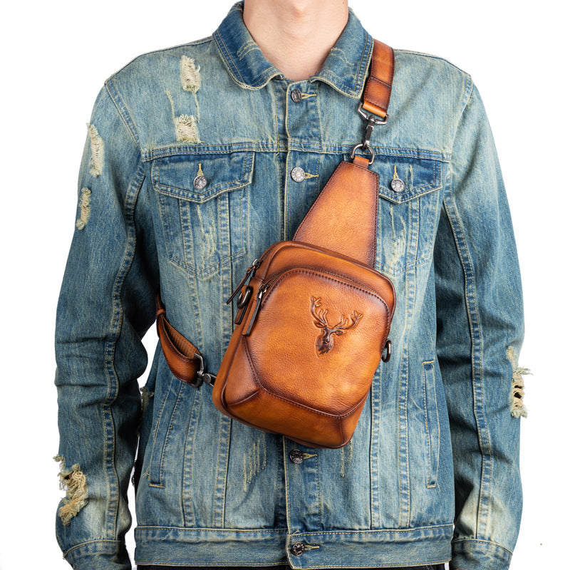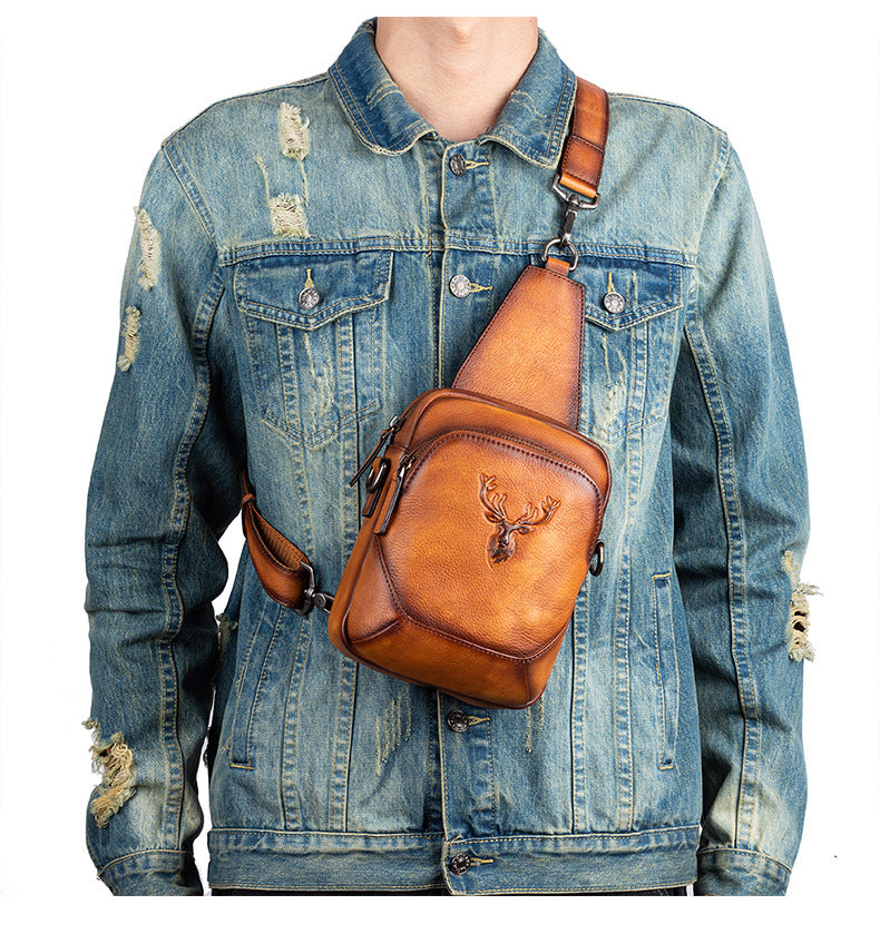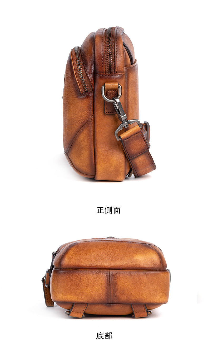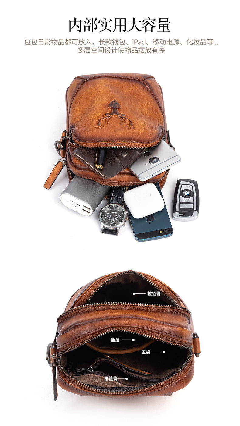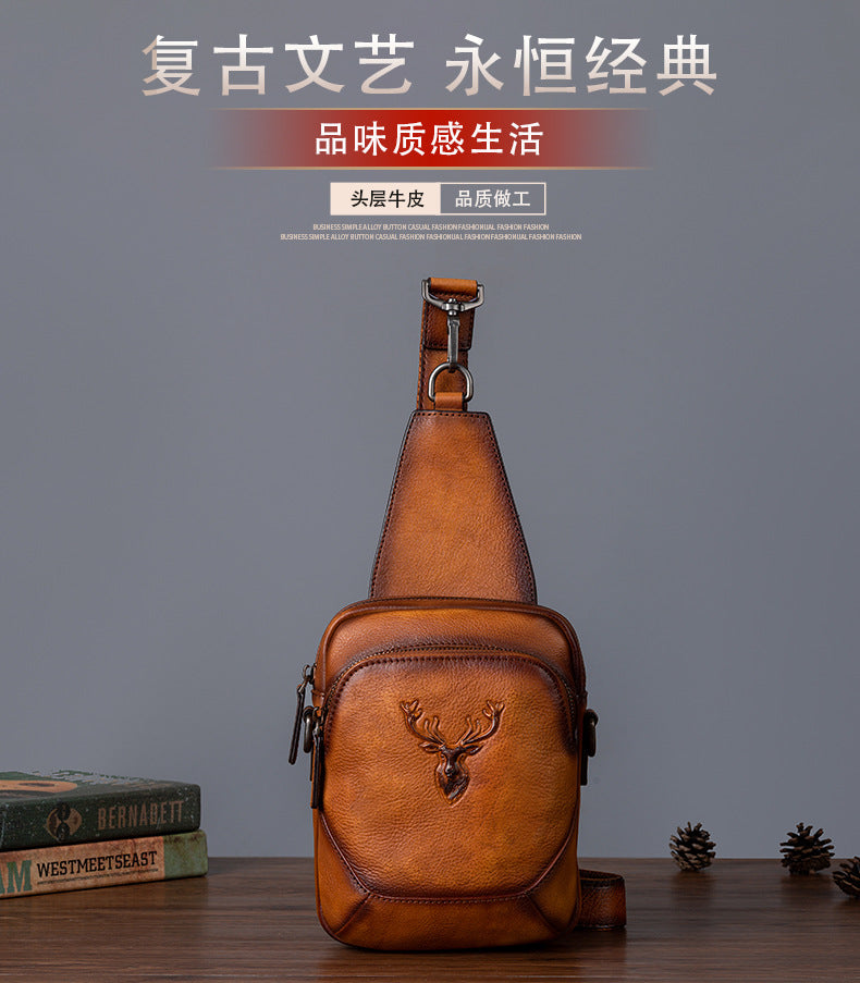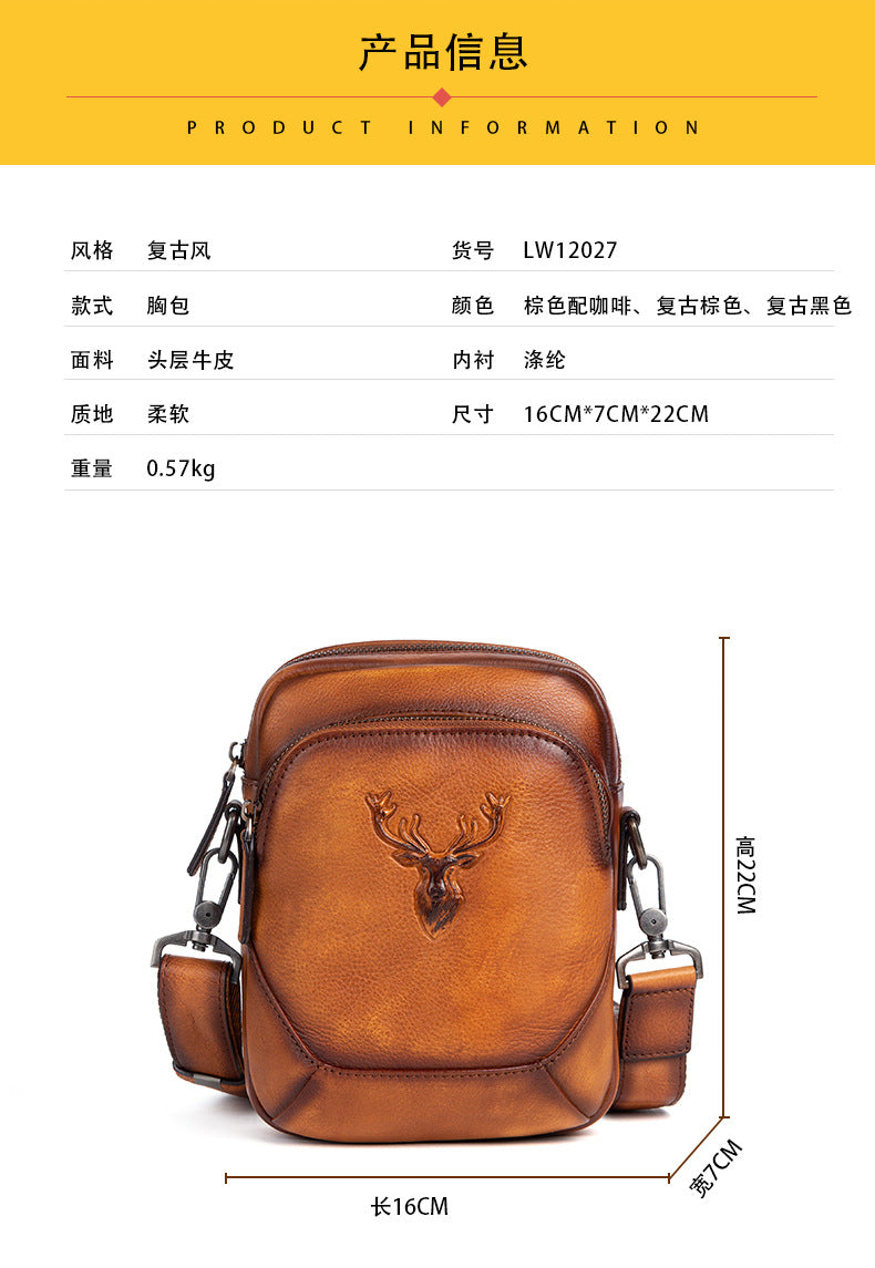 メンズバストバッグ多用途牛革本革製レトロカジュアル男性用斜めがけバッグ