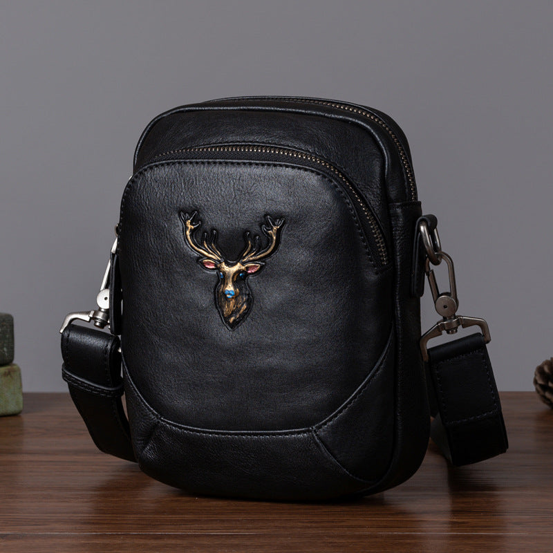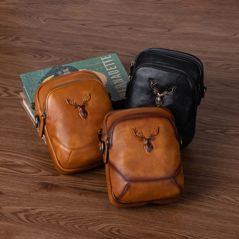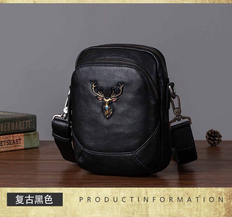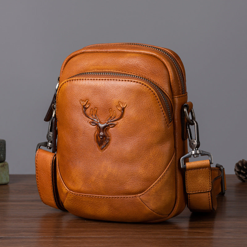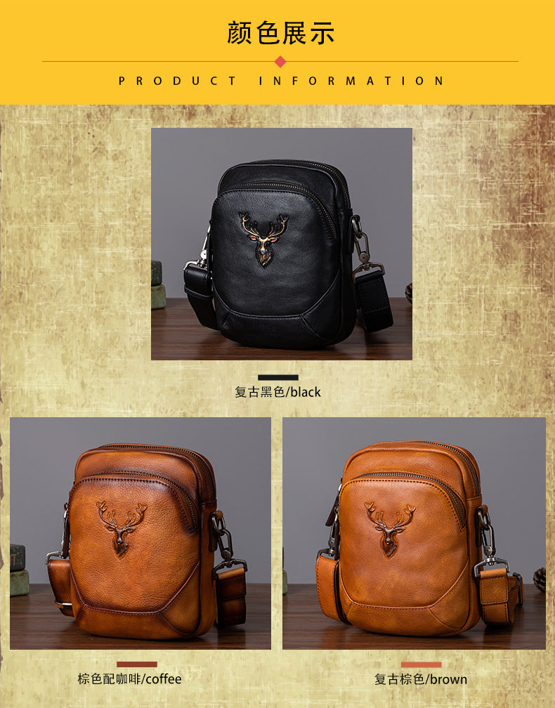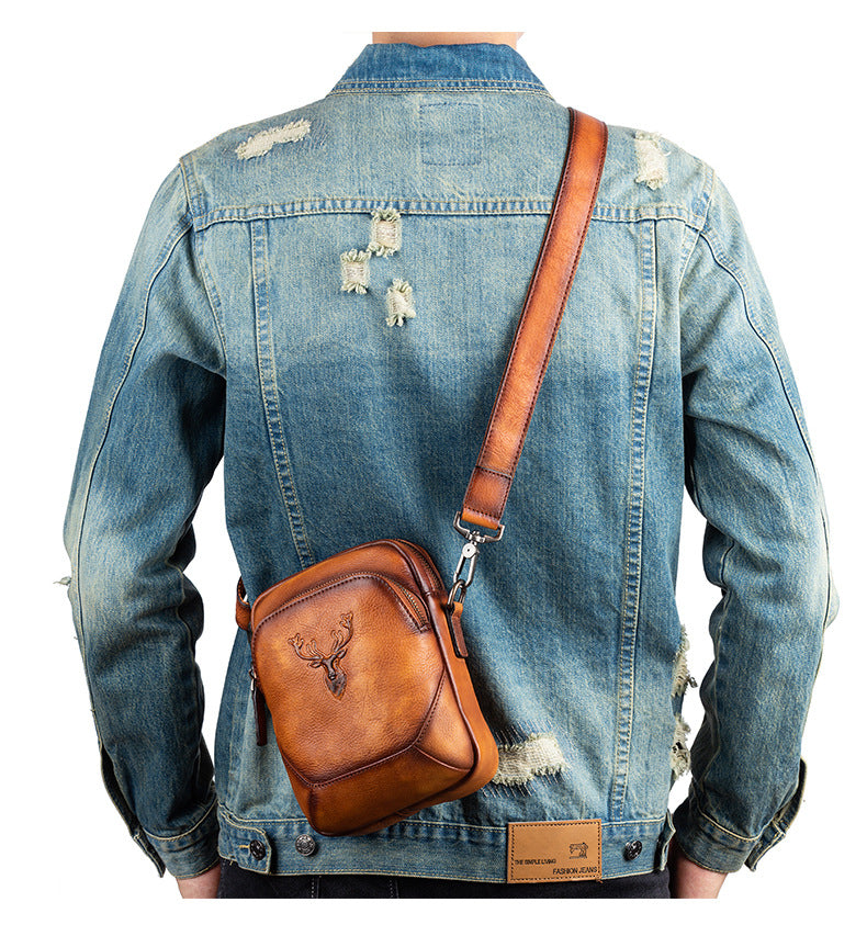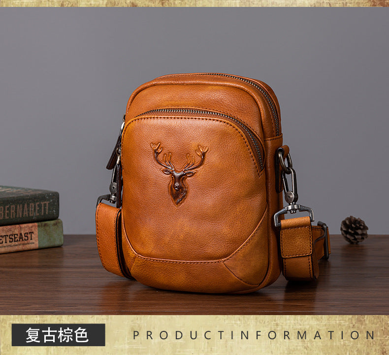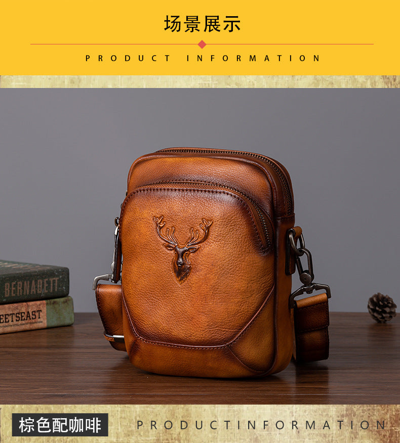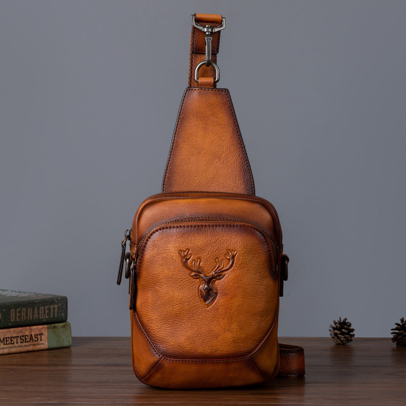 メンズバストバッグ多用途牛革本革製レトロカジュアル男性用斜めがけバッグ
