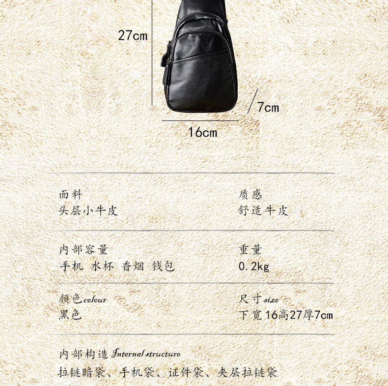 メンズバストバッグ手作り牛革本革製 ファッション通勤男性斜めがけバッグ