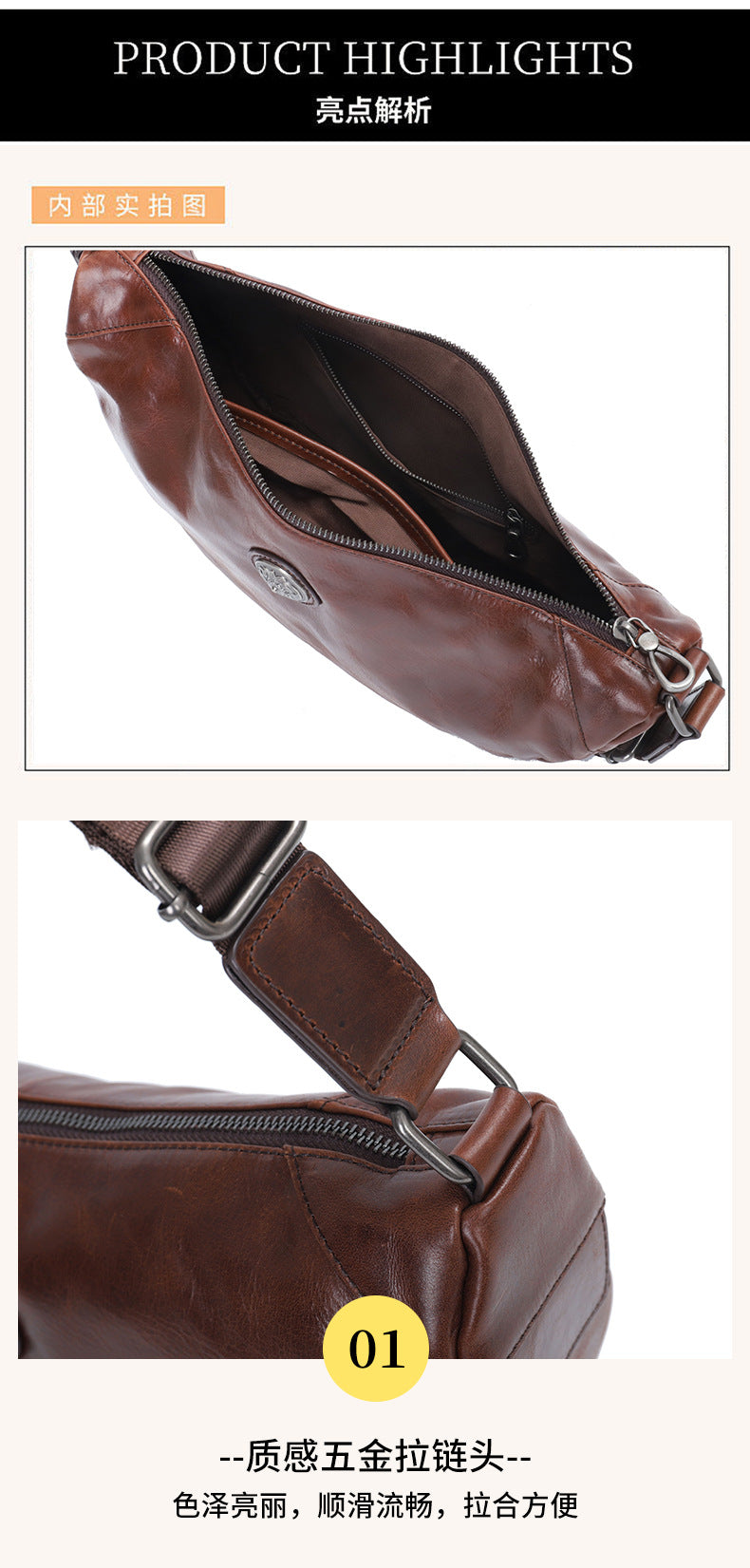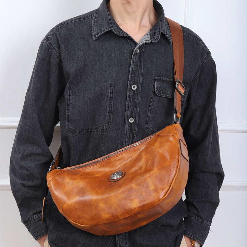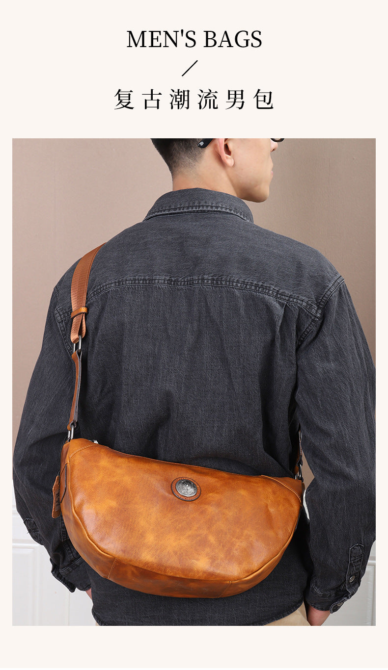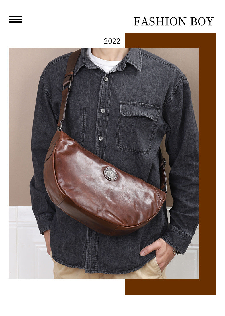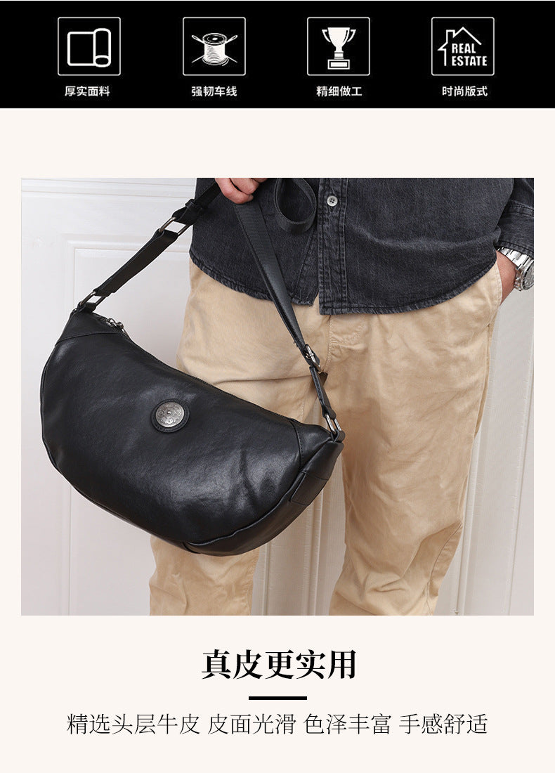 メンズバストバッグ斜めがけバッグ牛革本革製大容量カジュアルファッション 男性用ショルダーバッグ
