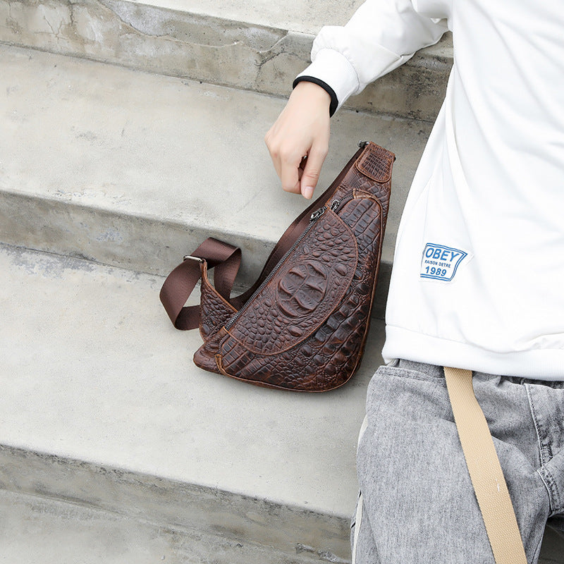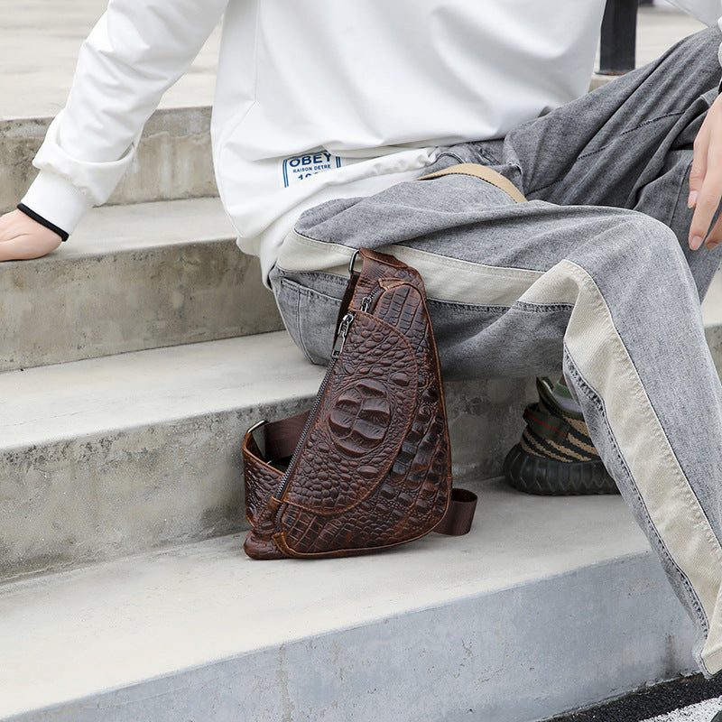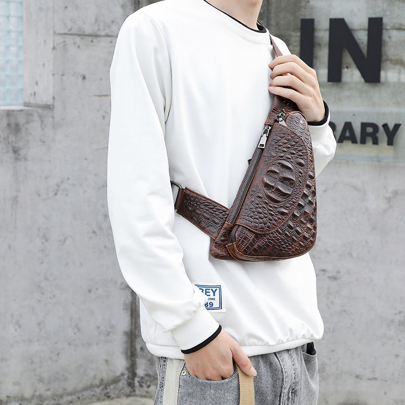 メンズバストバッグ牛革カジュアルファッション斜めがけバッグ男性用ショルダーバッグ