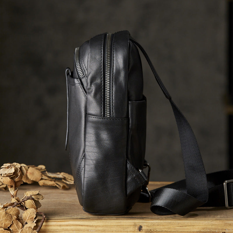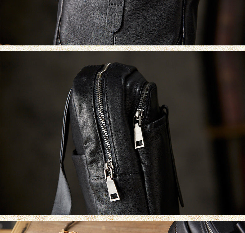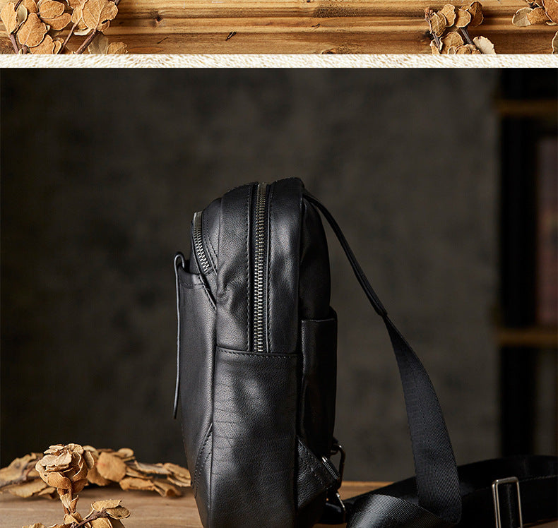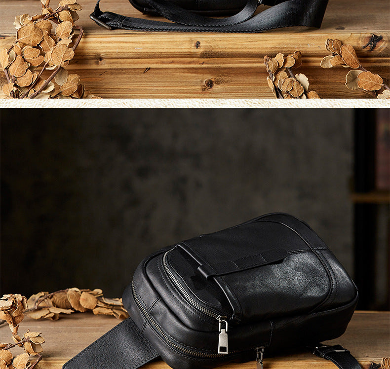 メンズバストバッグ牛革本革製アウトドアカジュアルファッション男性用斜めがけバッグショルダーバッグ