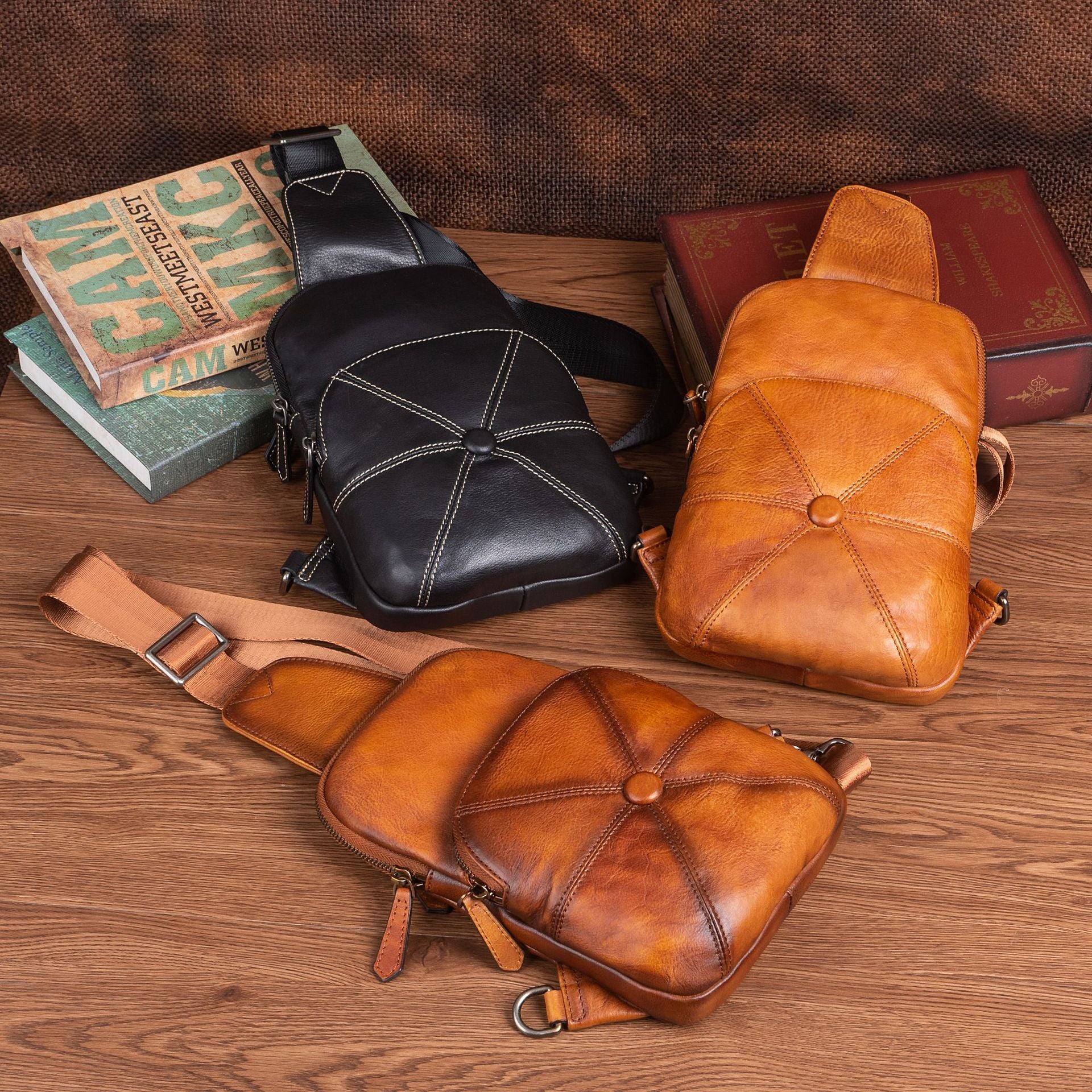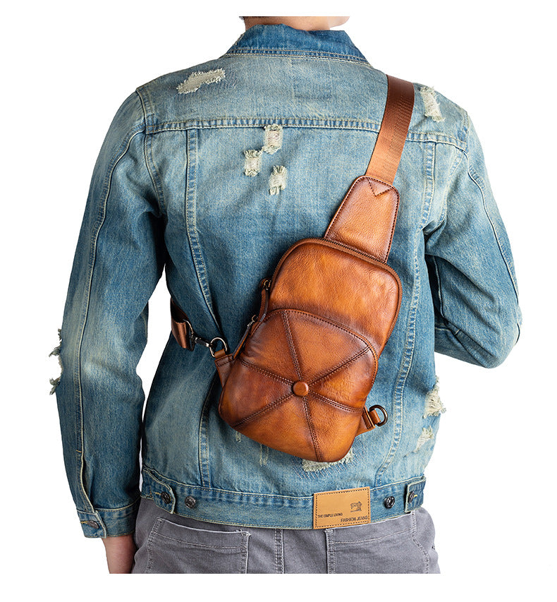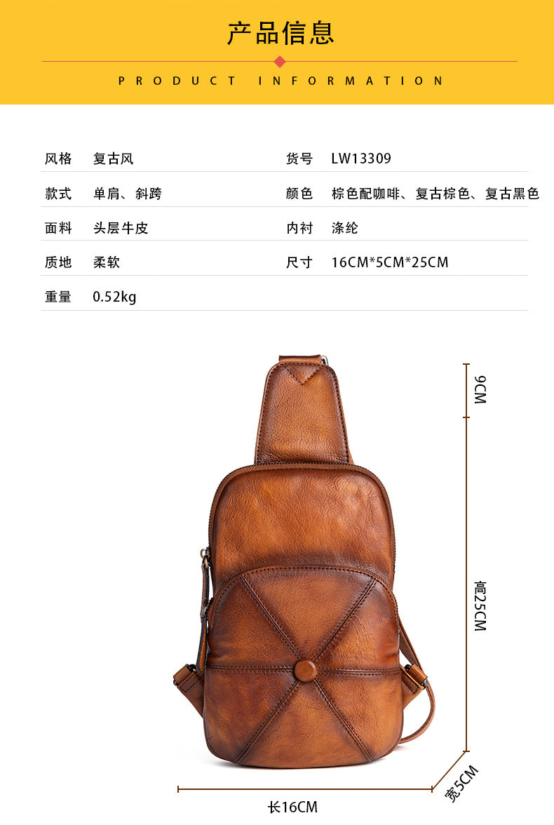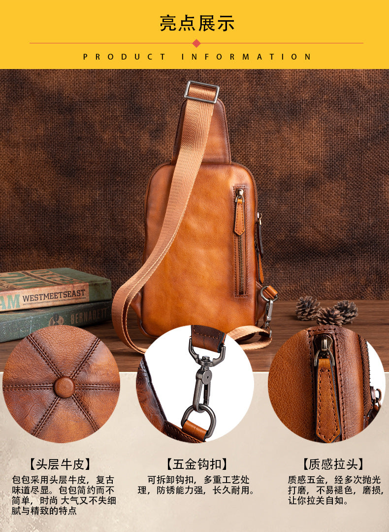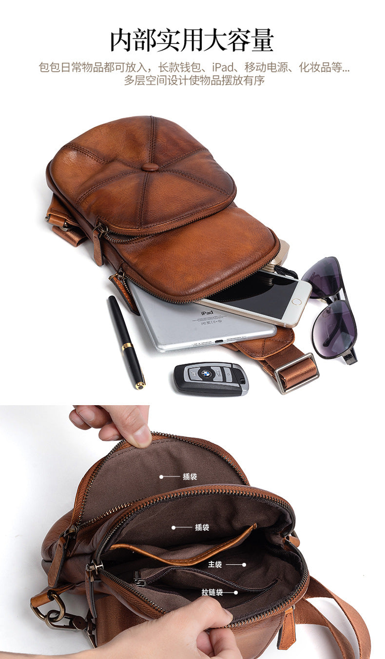 メンズバストバッグ牛革本革製ビジネス男性用斜めがけバッグ