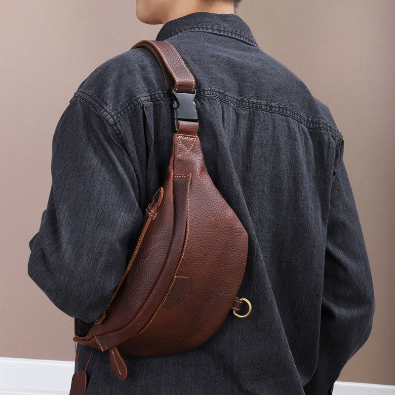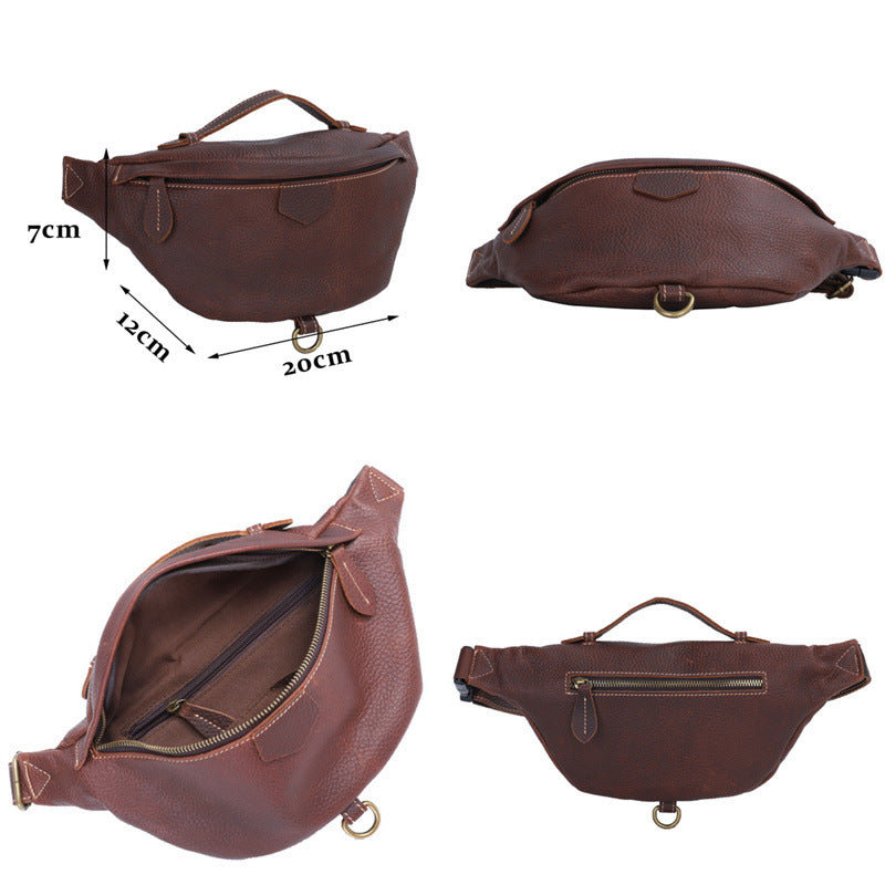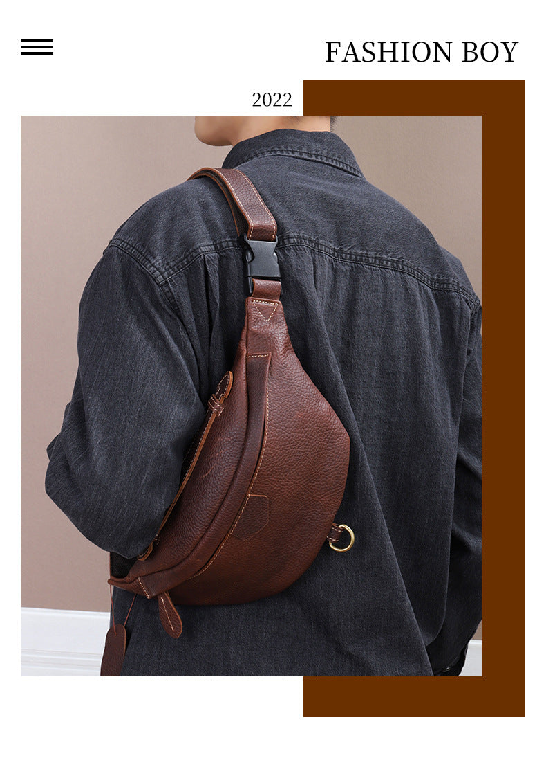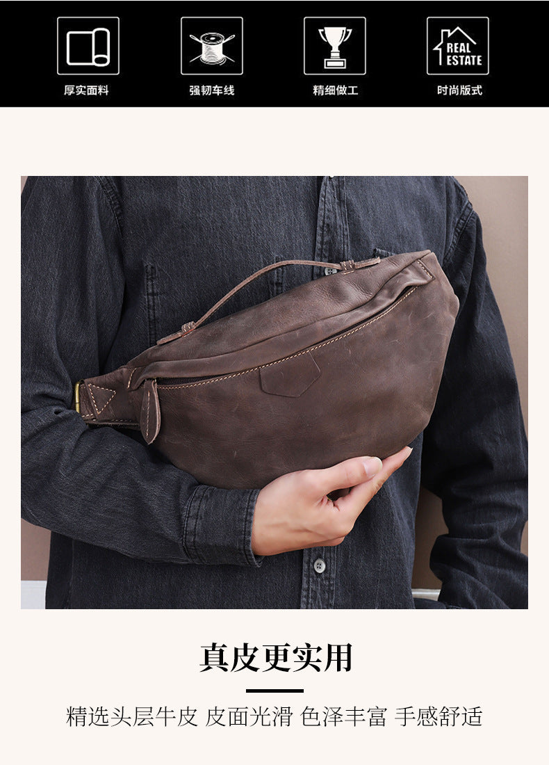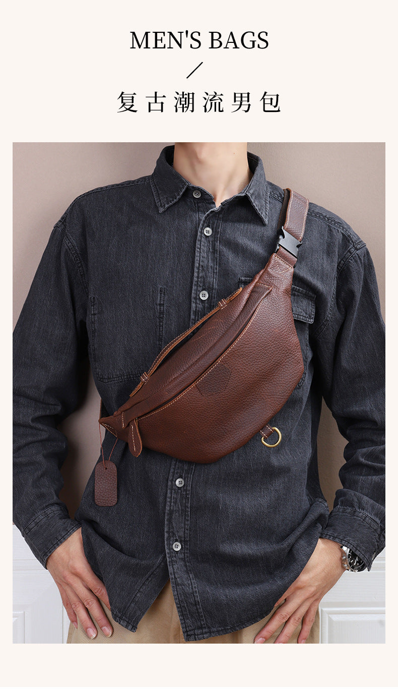 メンズバストバッグ牛革本革製レトロカジュアルファッションウエストポーチショルダーバッグ男性用斜めがけバッグ