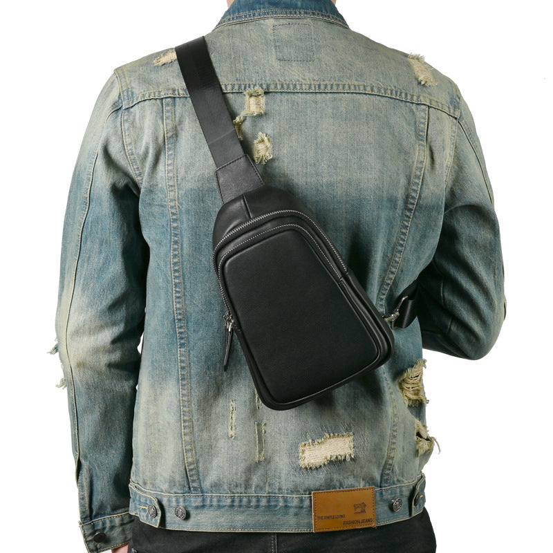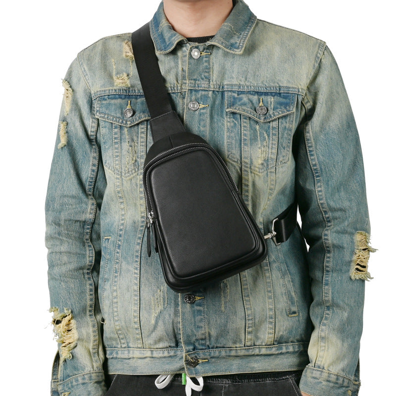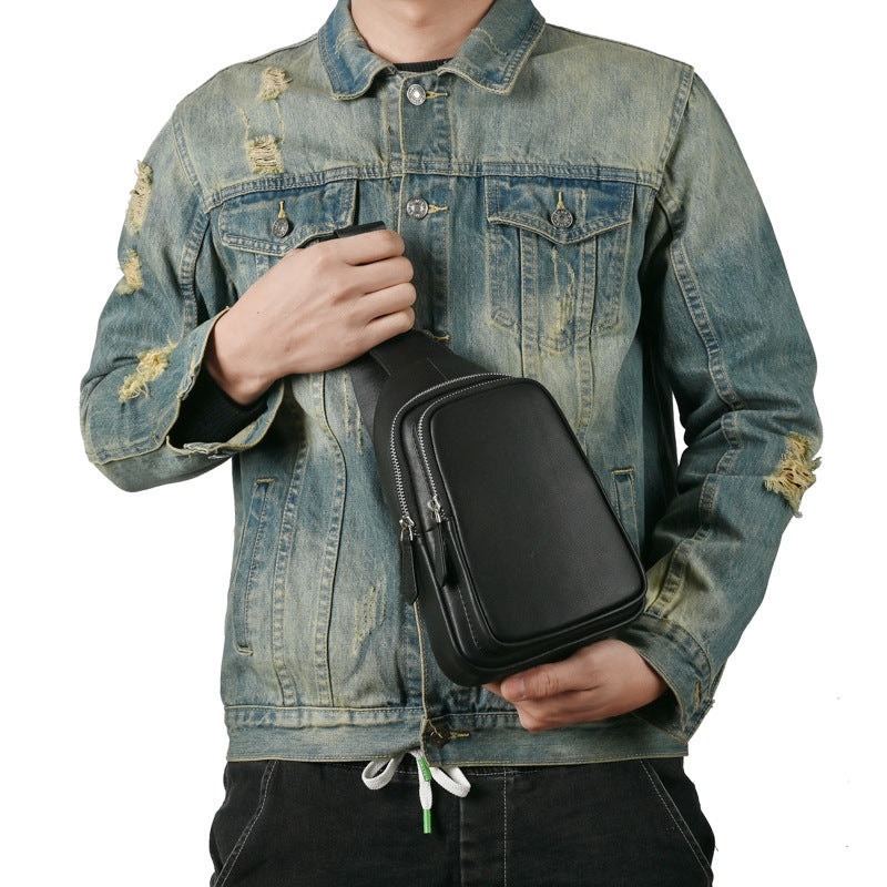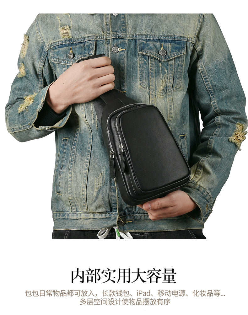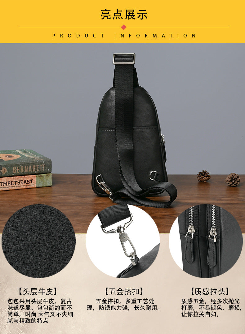 メンズバストバッグ牛革本革製レトロカジュアル男性用斜めがけバッグスマホポーチ
