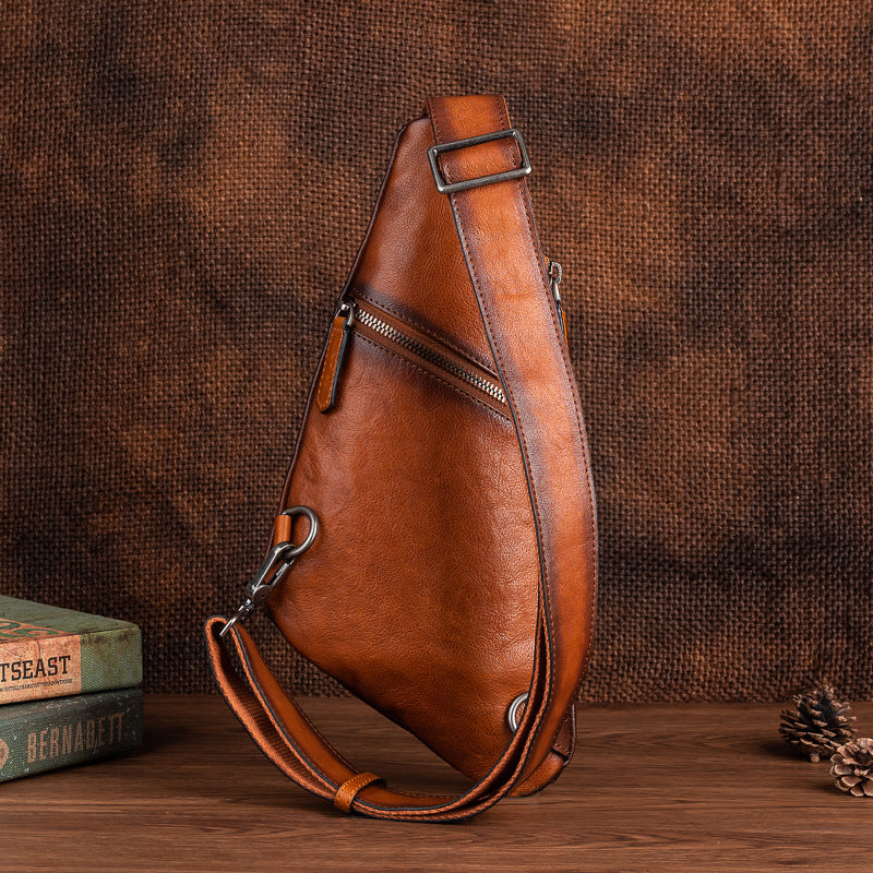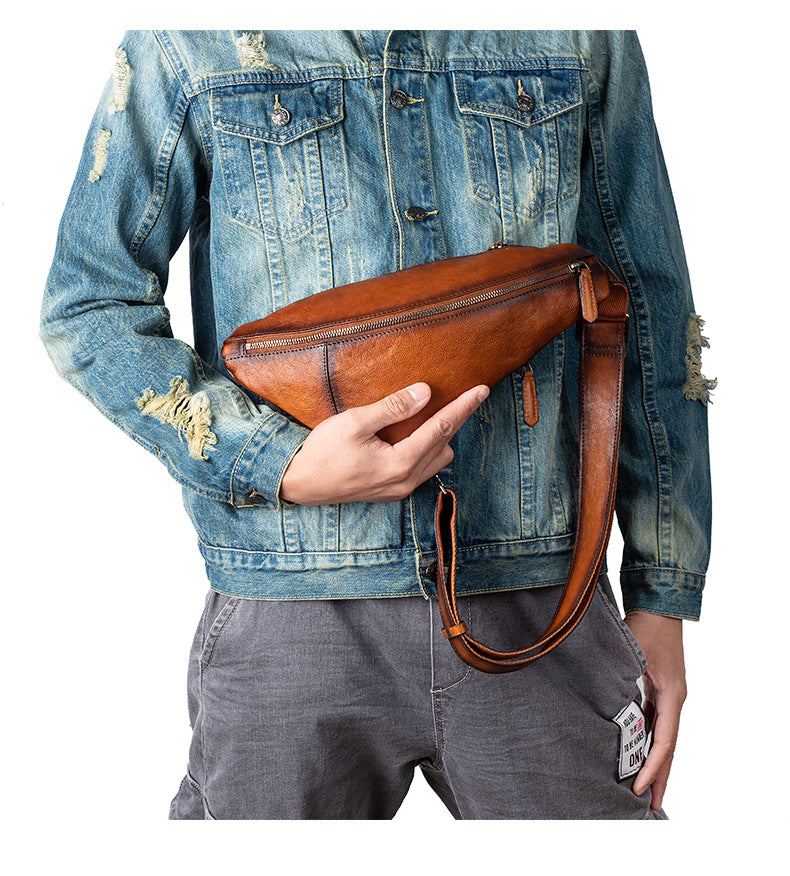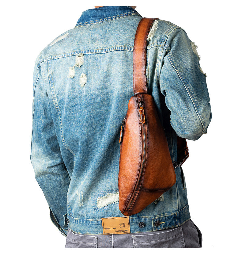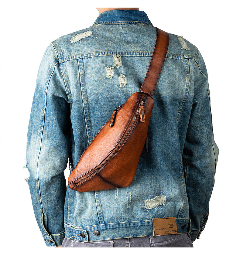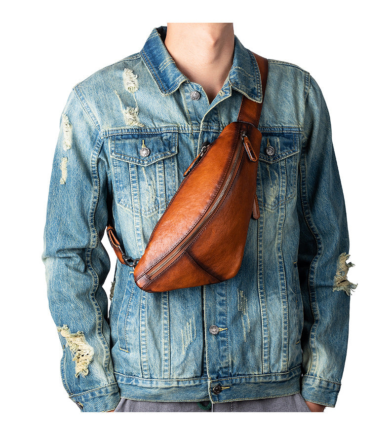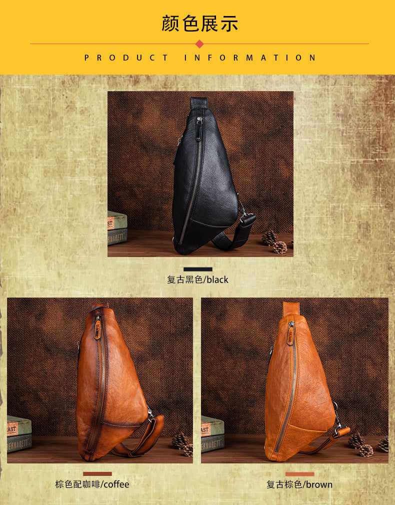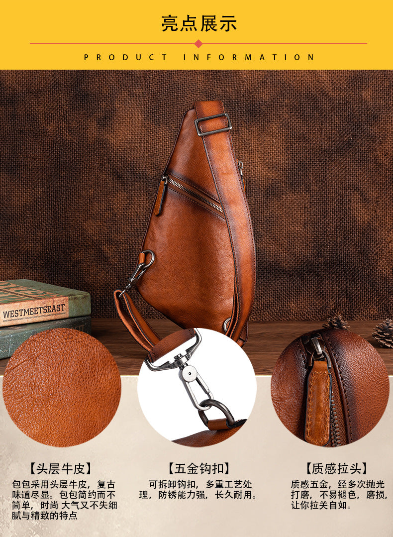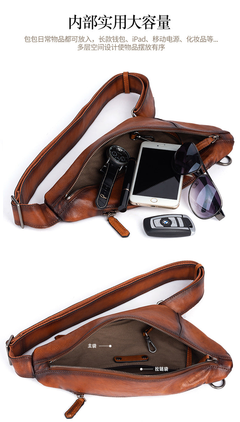メンズバストバッグ牛革本革製個性カジュアル男性用斜めがけバッグ