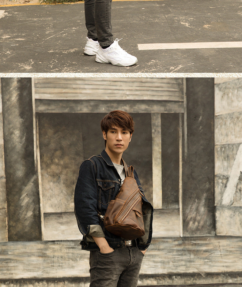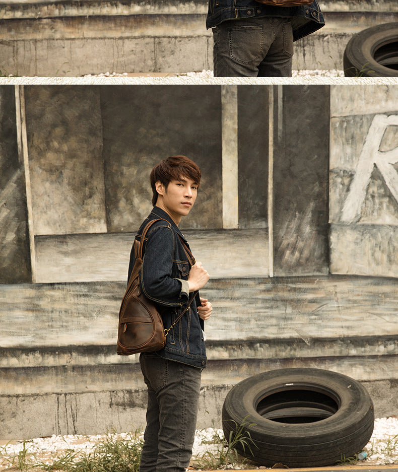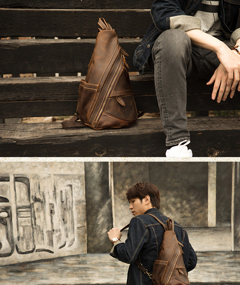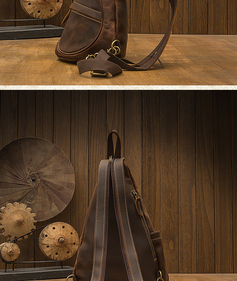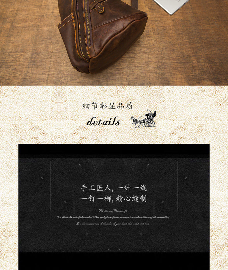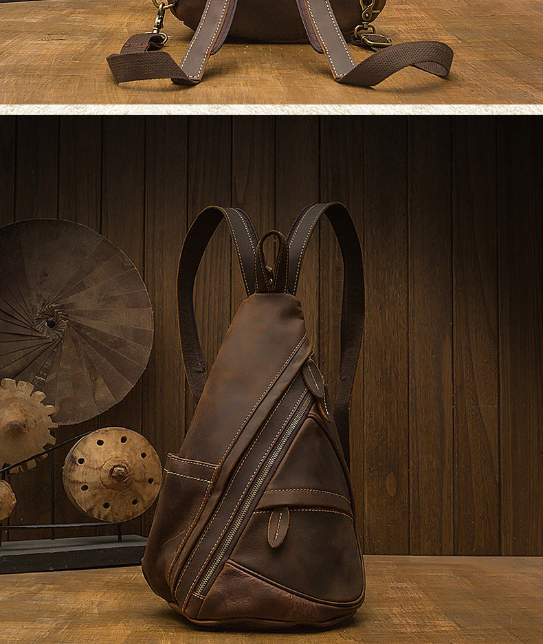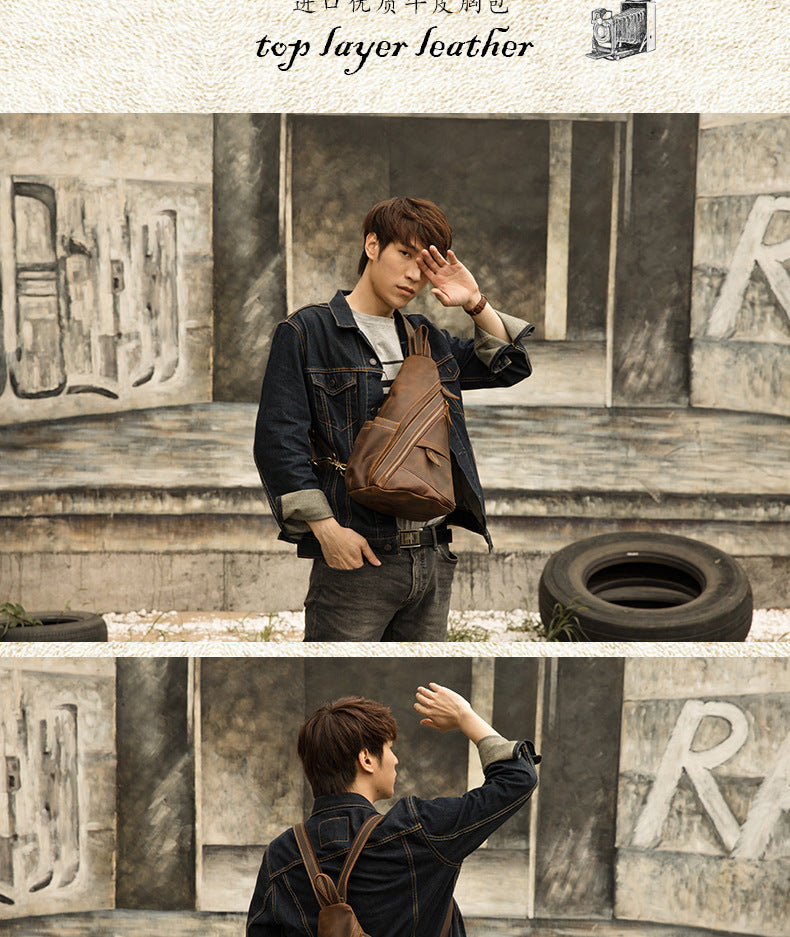 メンズバストバッグ牛革本革製手作りファッション大容量多機能レトロ斜めがけバッグカジュアル両肩バックパックリュックサック