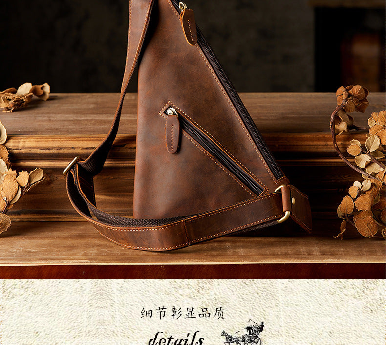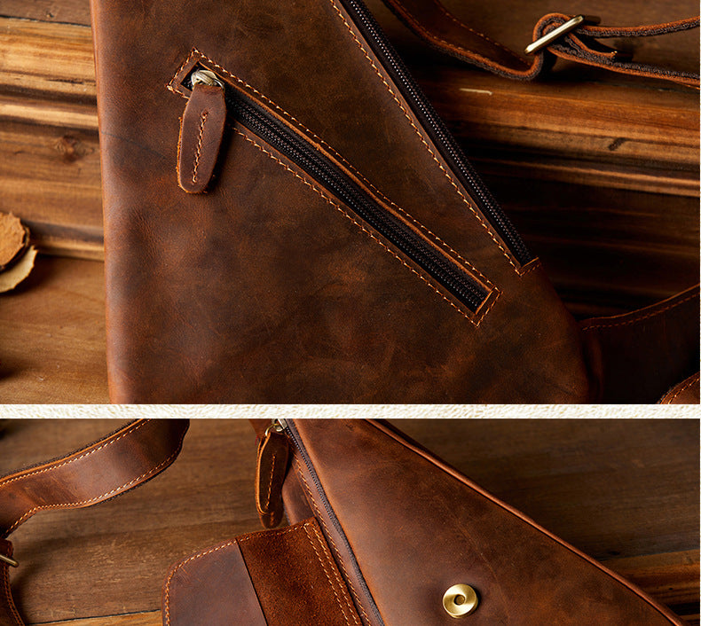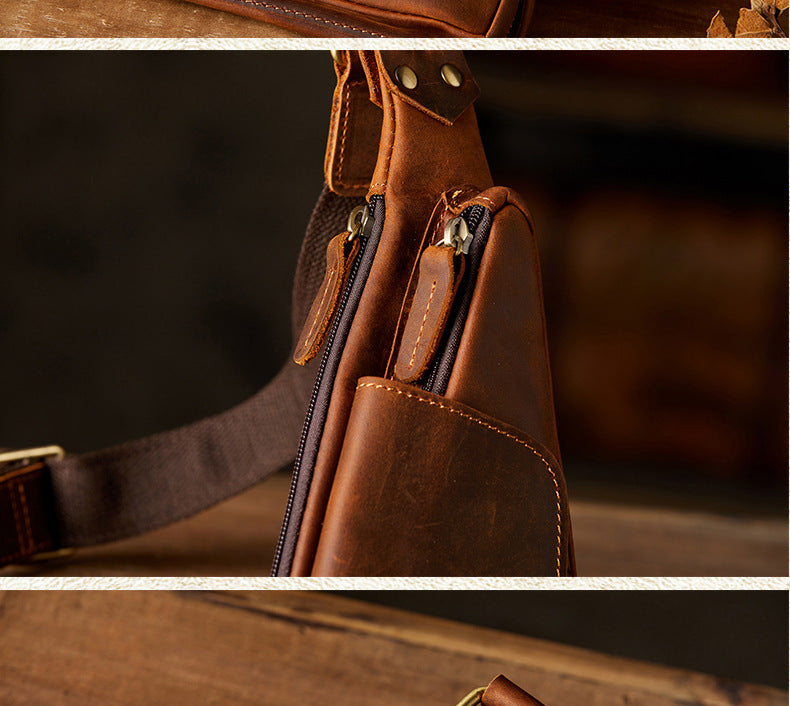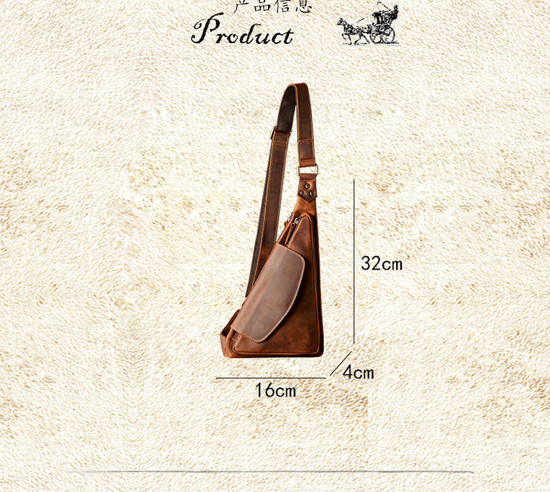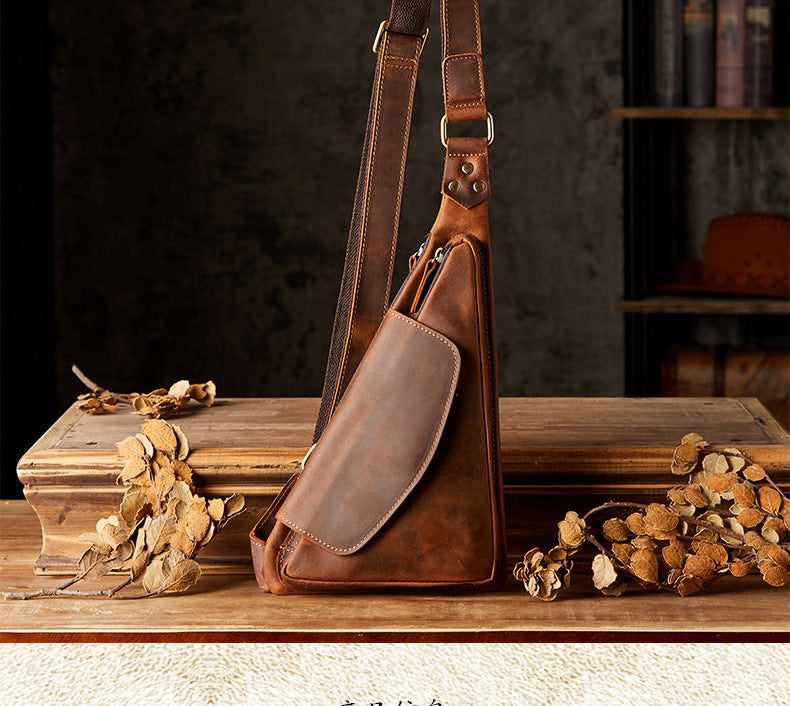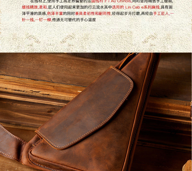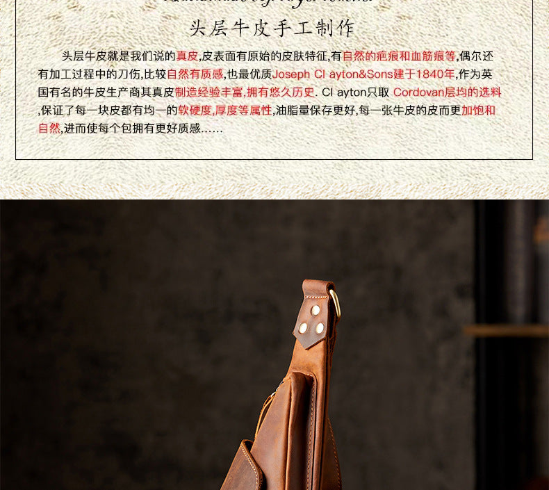 メンズバストバッグ 手作りオリジナル 牛革本革製 クレイジー・ホース 個性レトロカジュアル男性斜めがけバッグショルダーバッグ