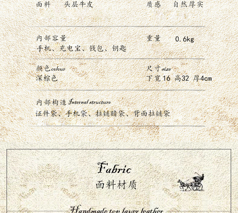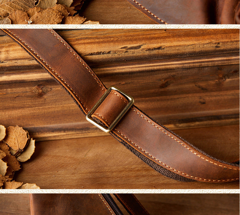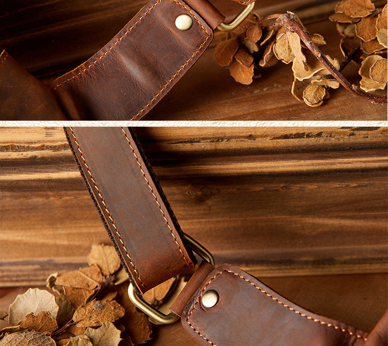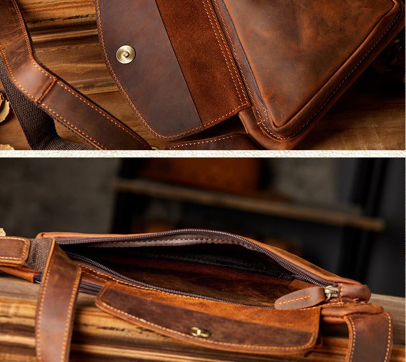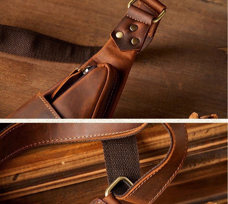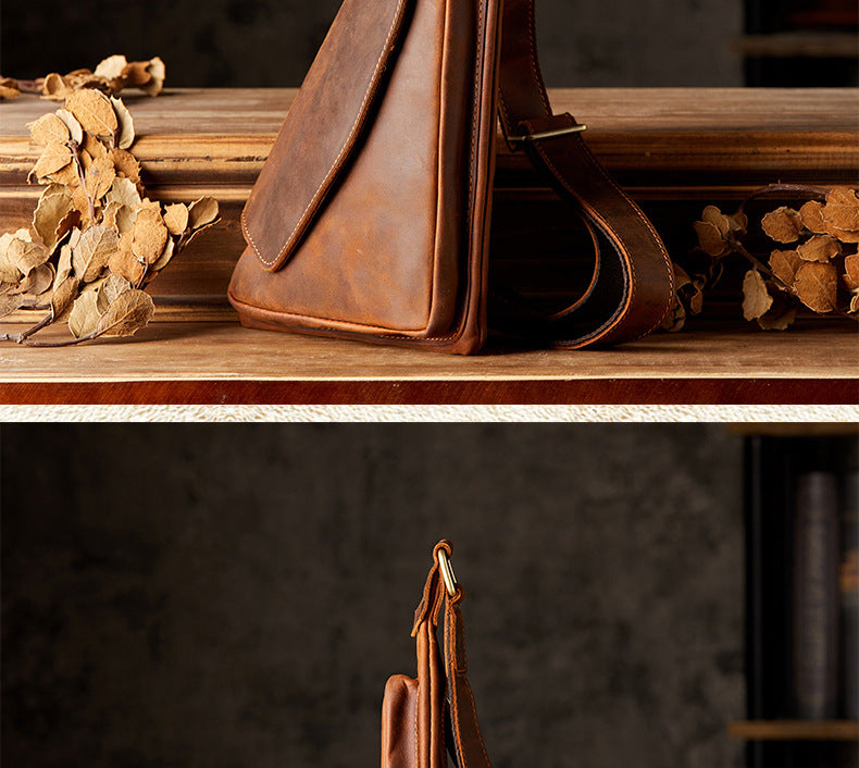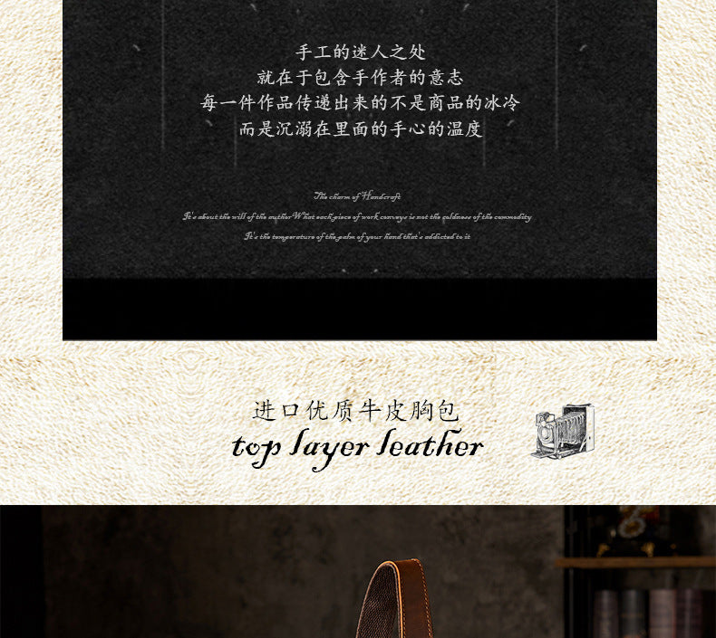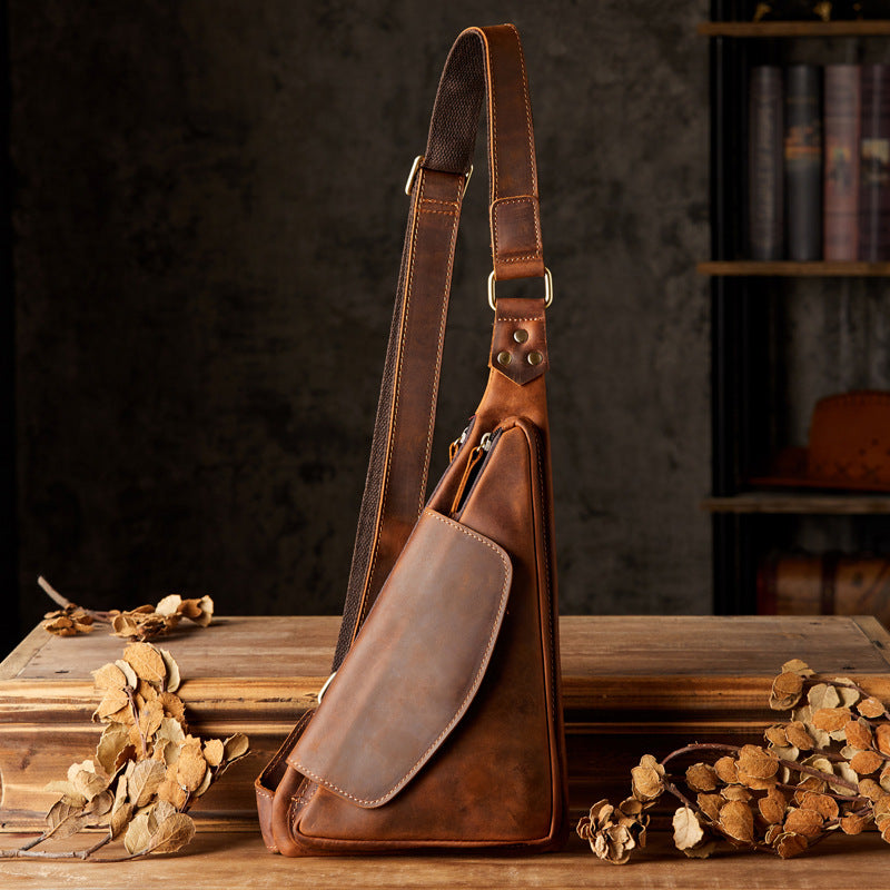メンズバストバッグ 手作りオリジナル 牛革本革製 クレイジー・ホース 個性レトロカジュアル男性斜めがけバッグショルダーバッグ