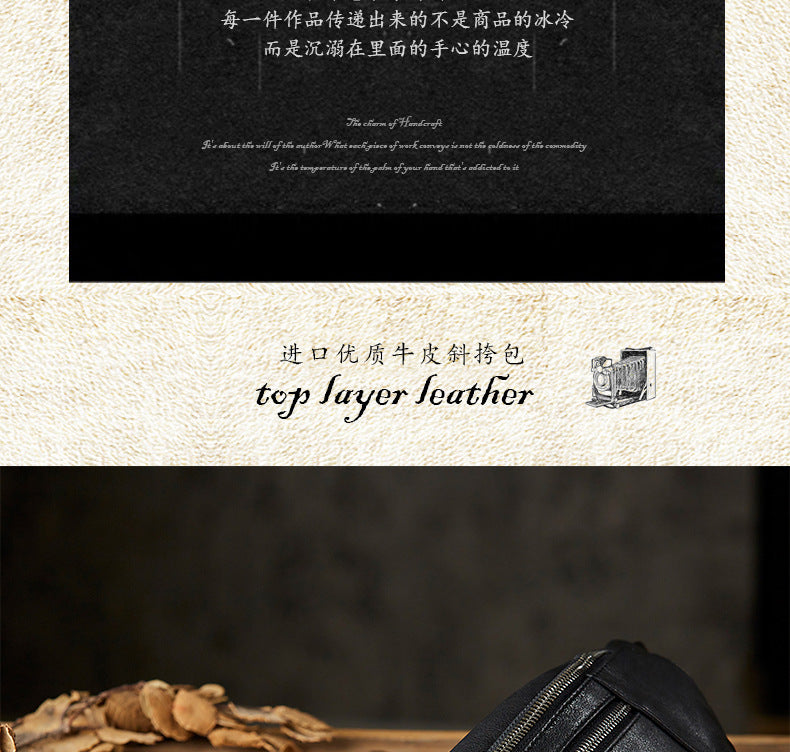 メンズバストバッグ 手作り牛革本革製 多機能 アウトドアスポーツ 携帯電話バッグ ウエストポーチ ファッション男性用斜めがけバッグ
