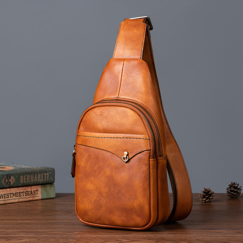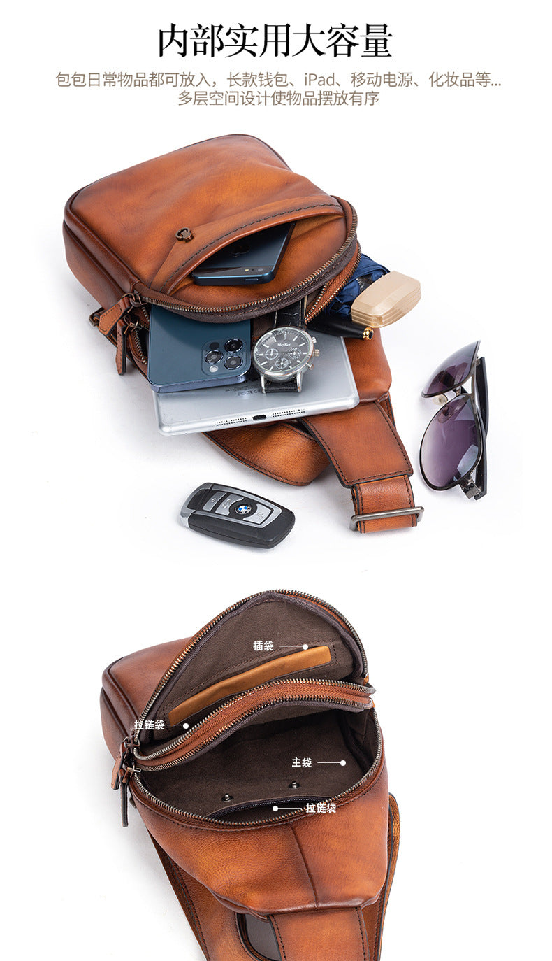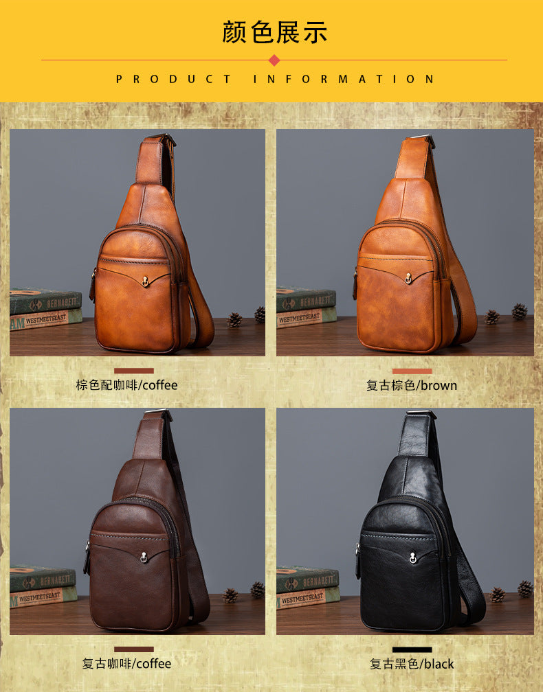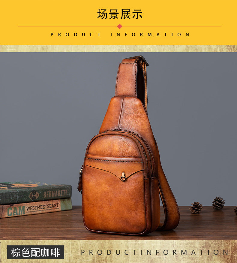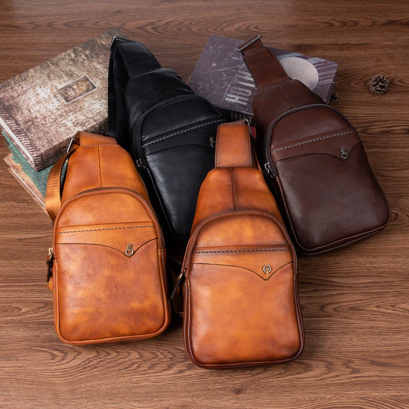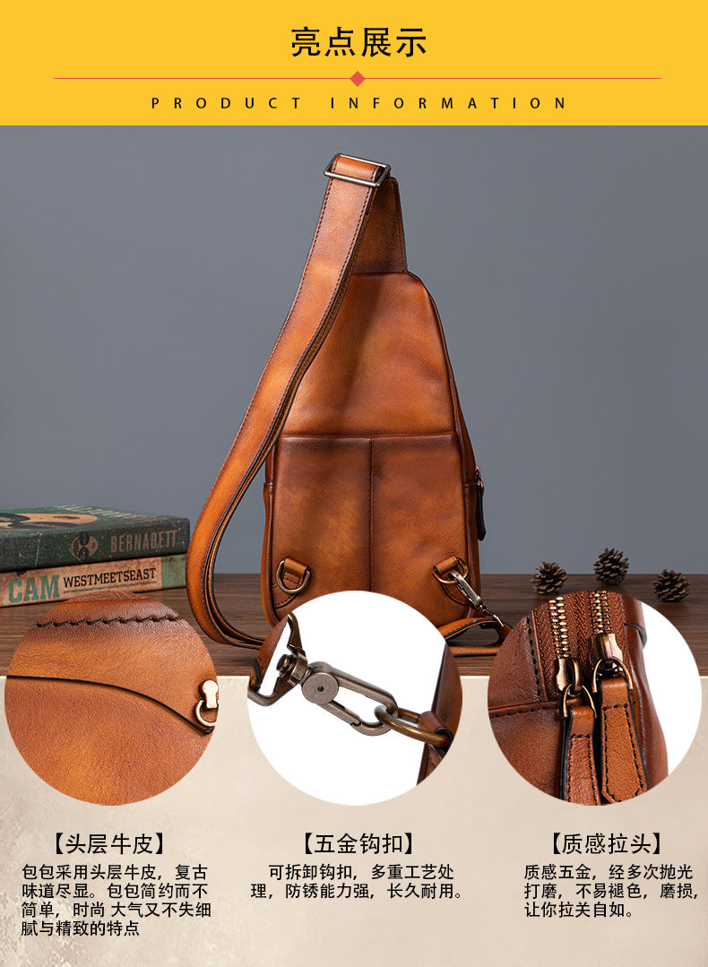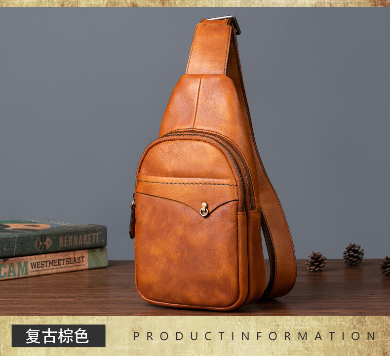 メンズバストバッグ 牛革本革製 レトロカジュアル男性用斜めがけバッグ