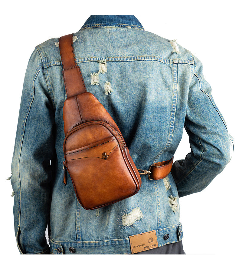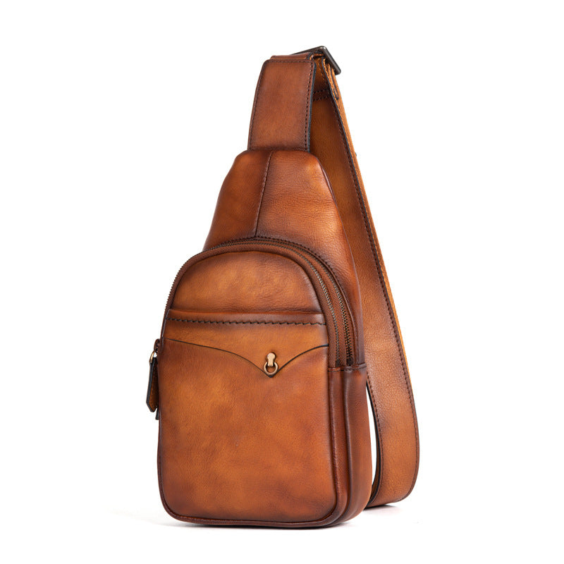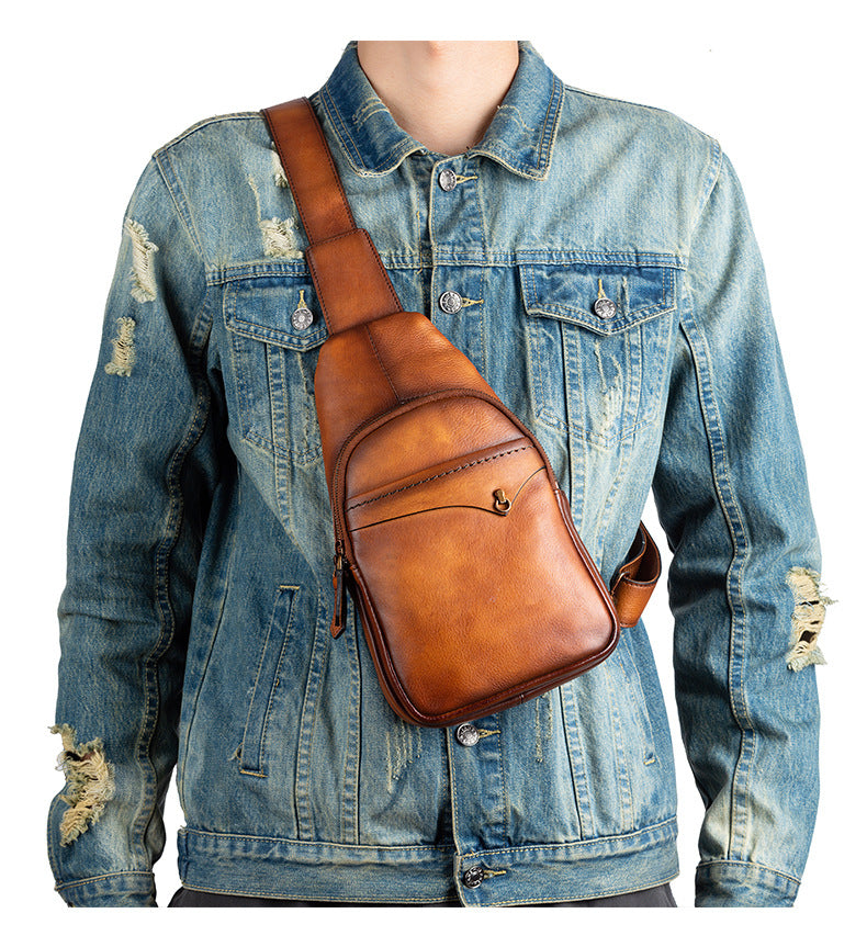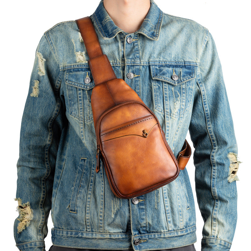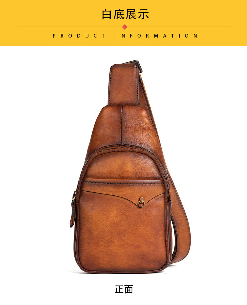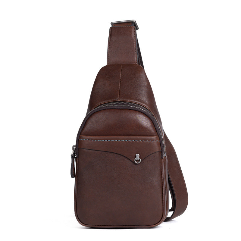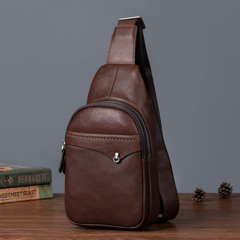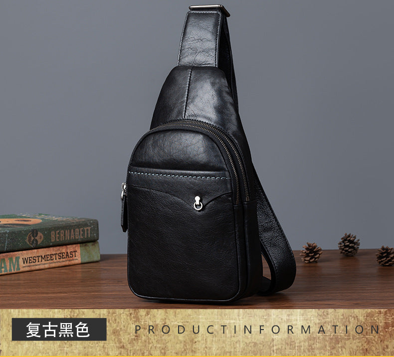メンズバストバッグ 牛革本革製 レトロカジュアル男性用斜めがけバッグ