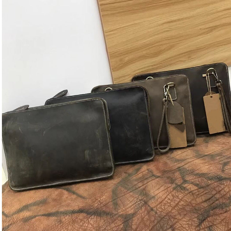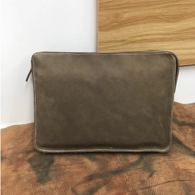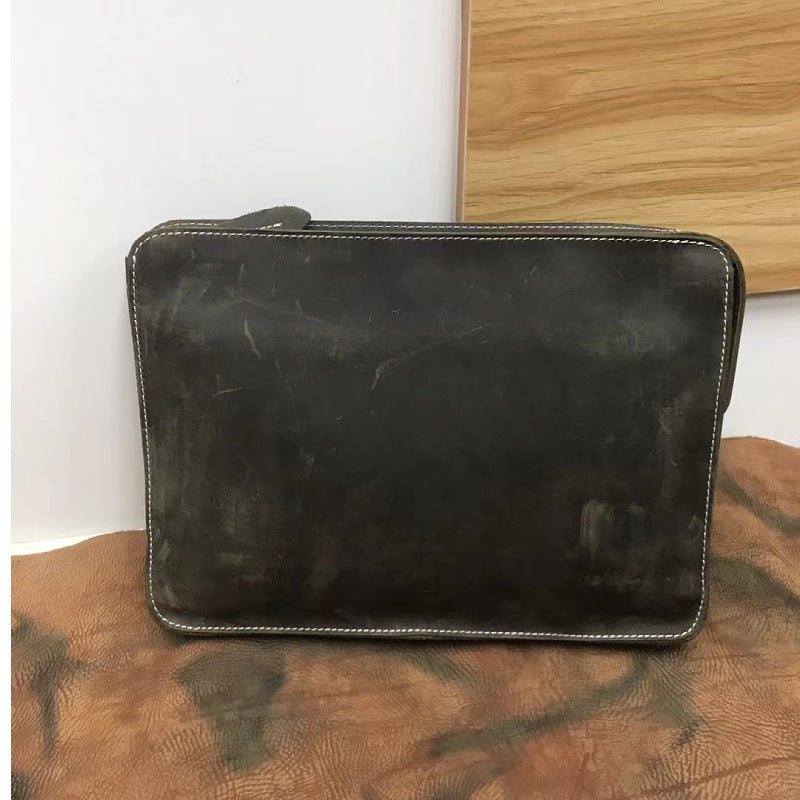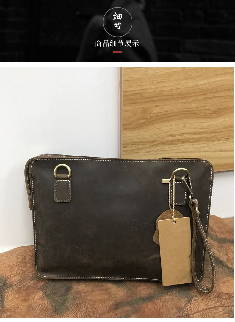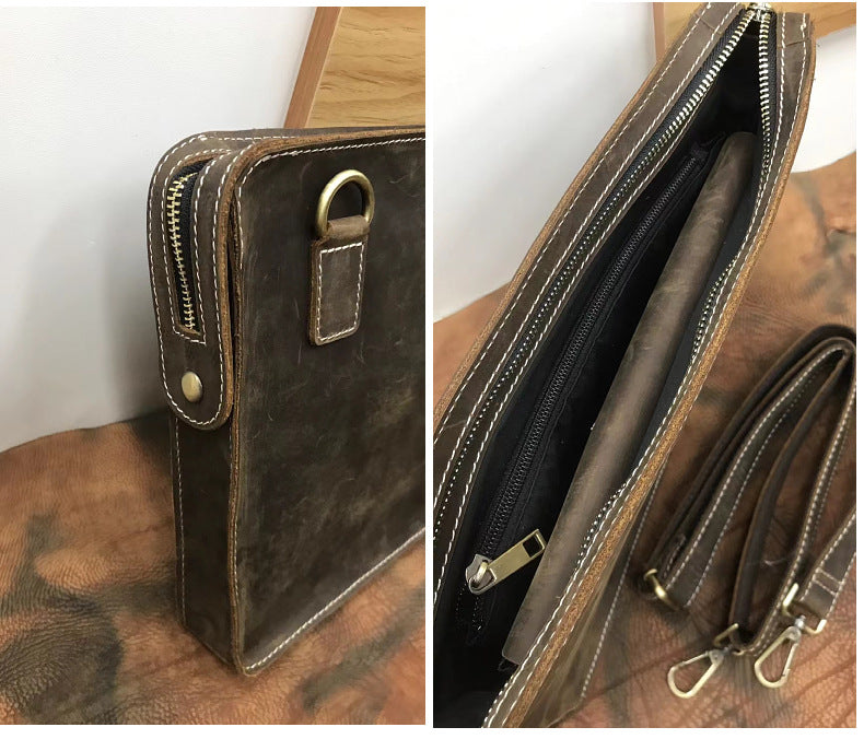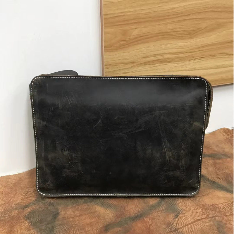 メンズブリーフケースレトロ牛革本革製クレイジー・ホース 通勤シンプル男性用斜めがけバッグ